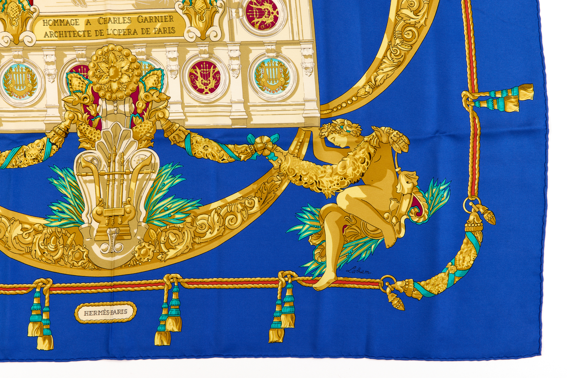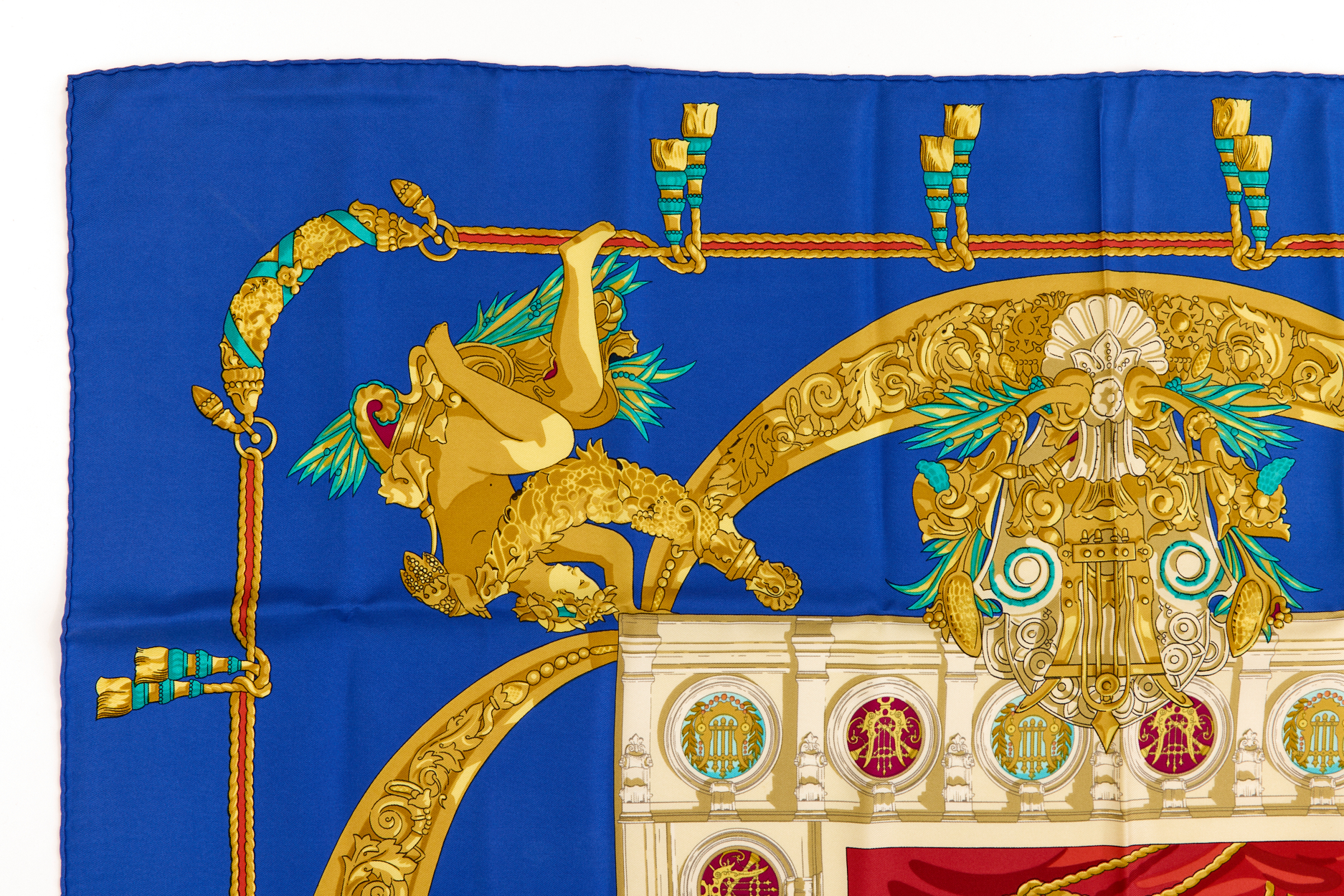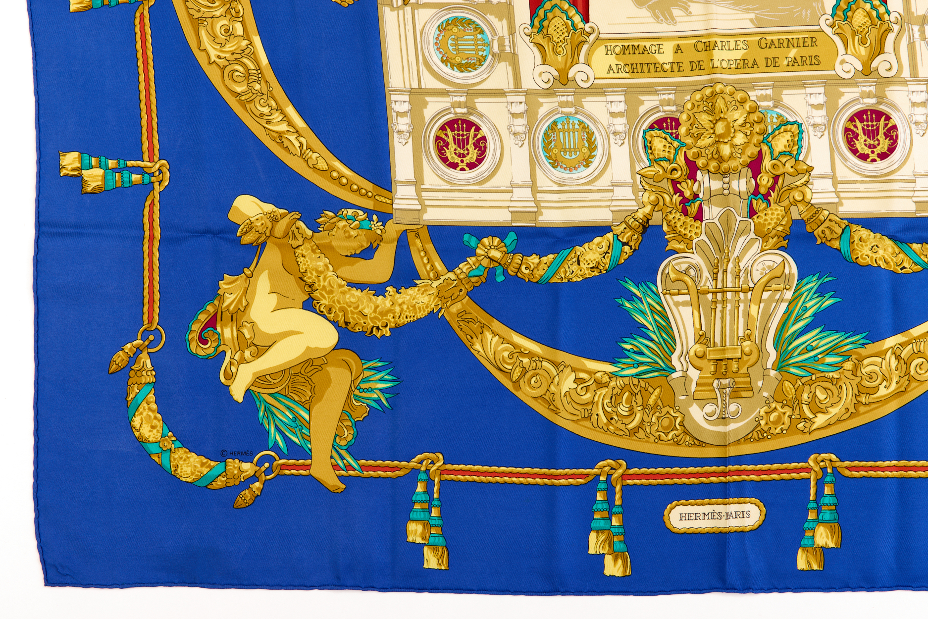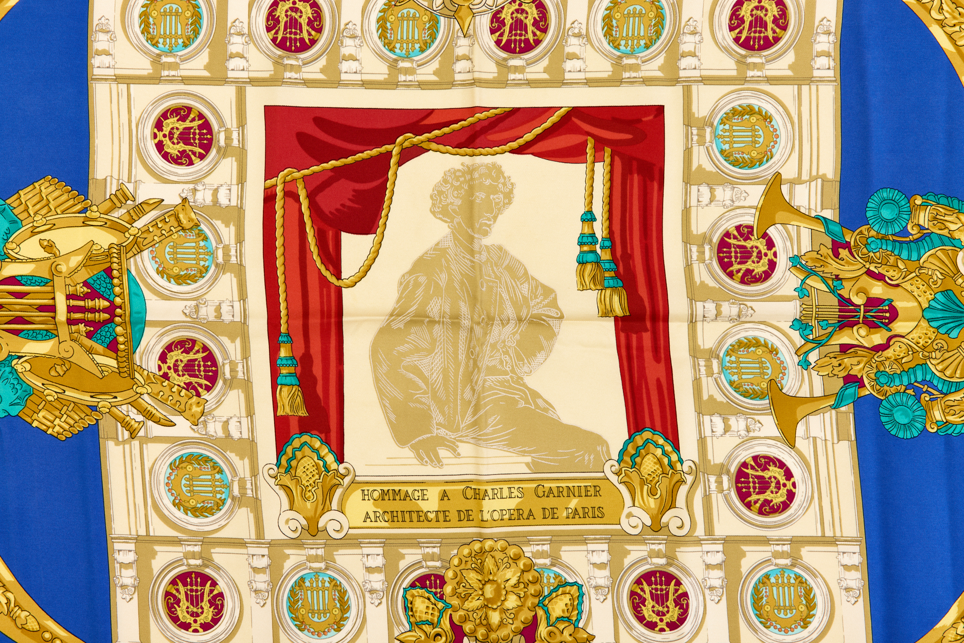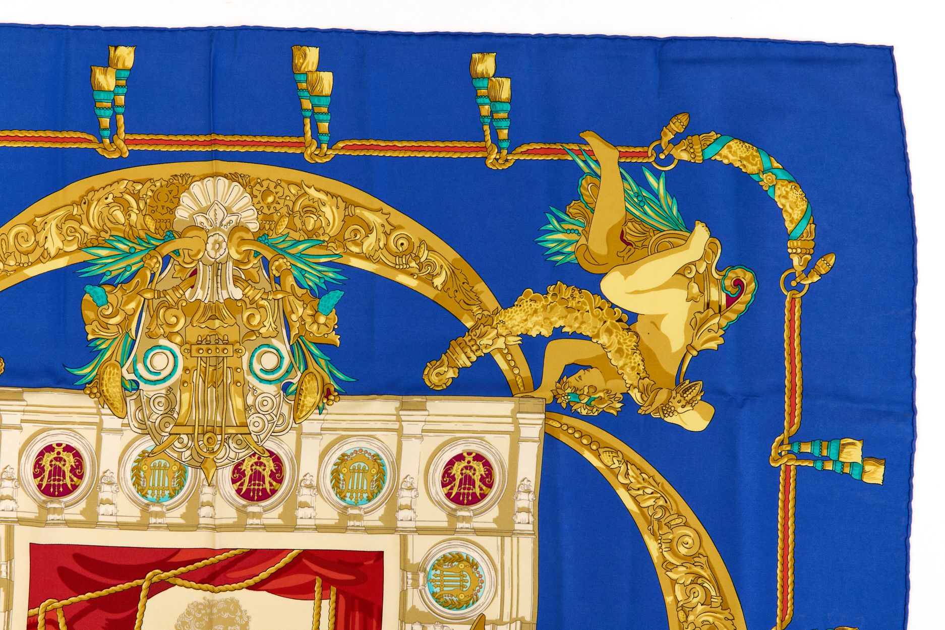 Hermes Silk Scarf Carre 90 “HOMMAGE A CHARLES GARNIER” Blue Silk Scarf