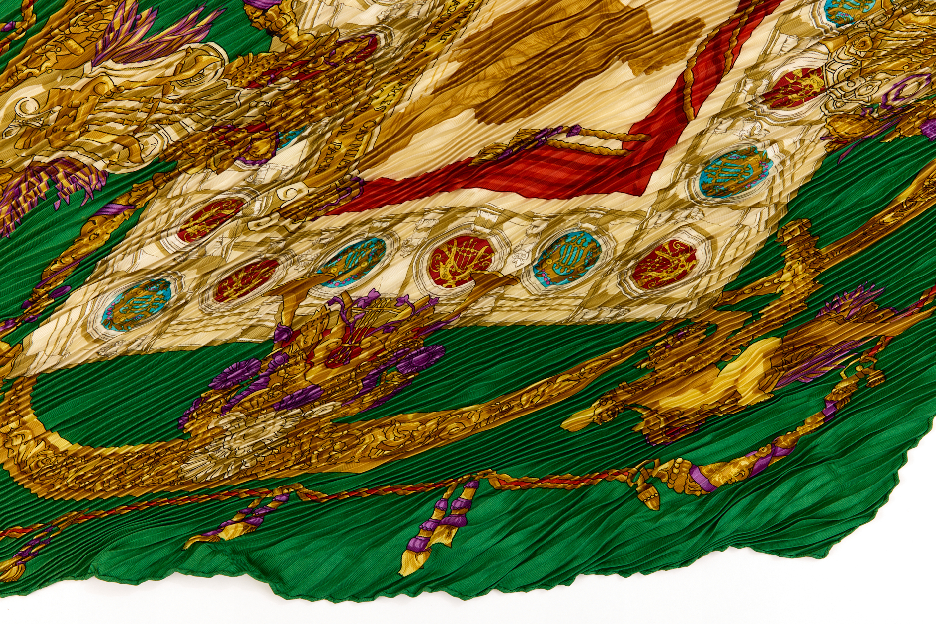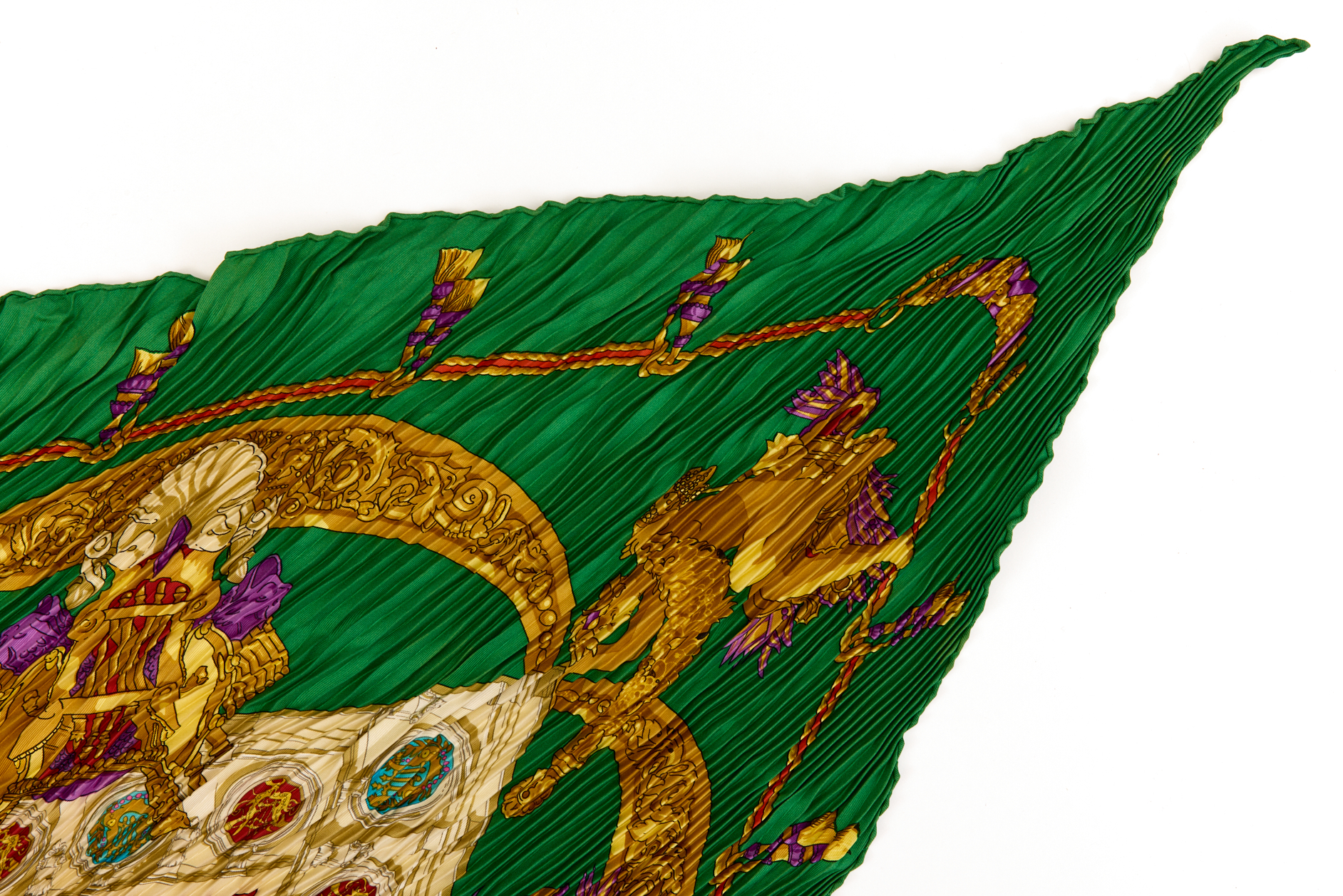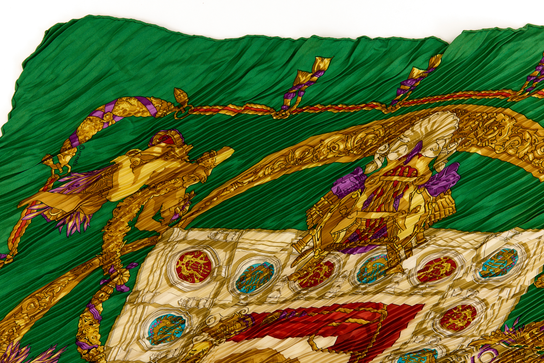 Hermes Silk Scarf Carre 90 “HOMMAGE A CHARLES GARNIER” Green Silk Pleats Scarf with Box