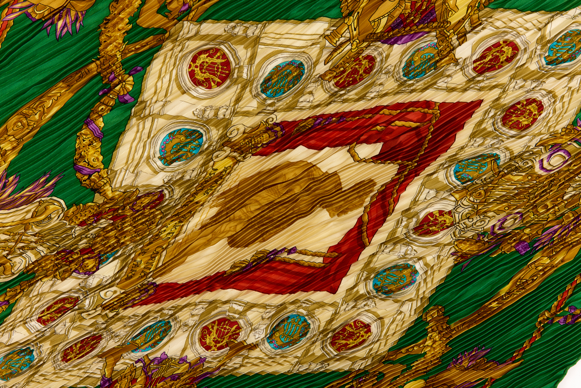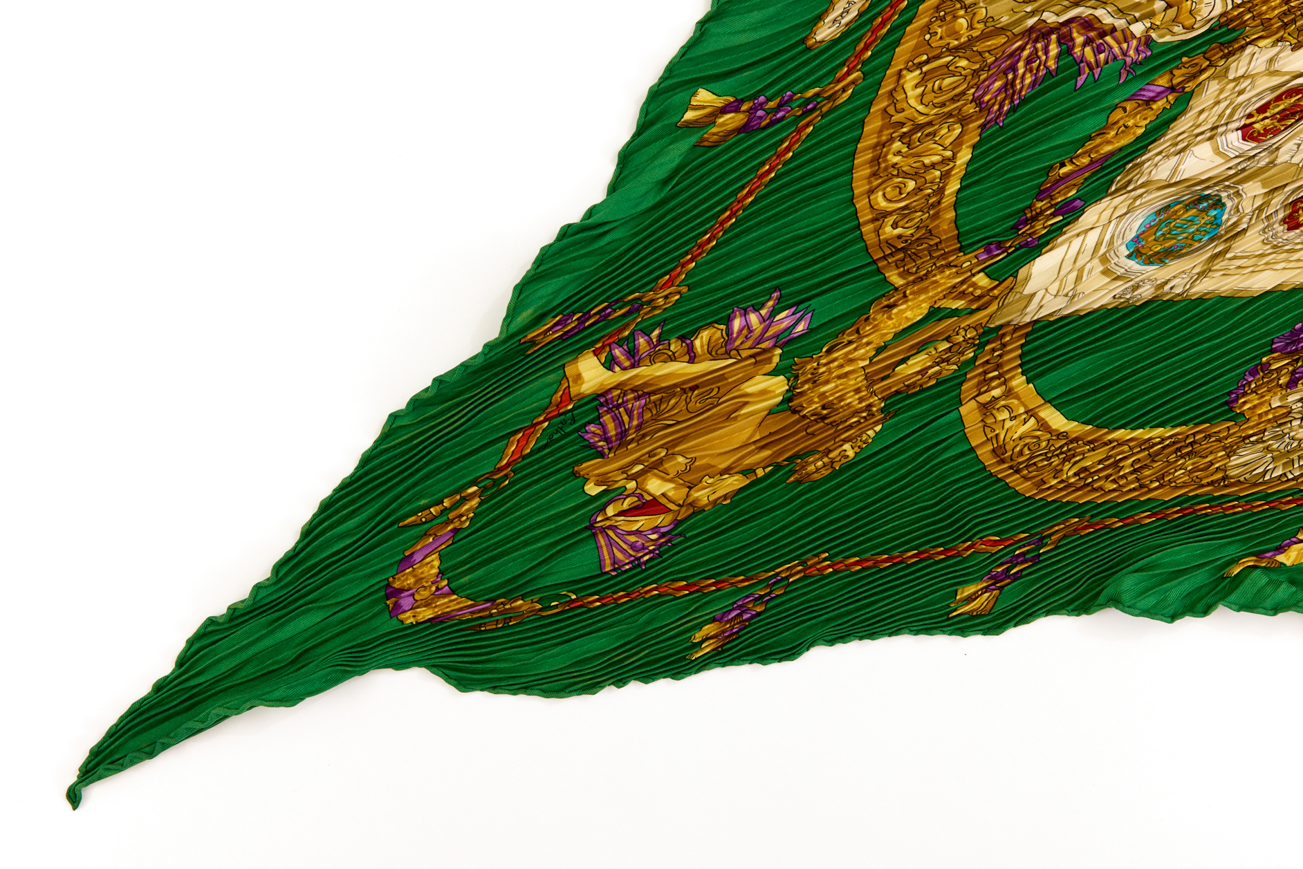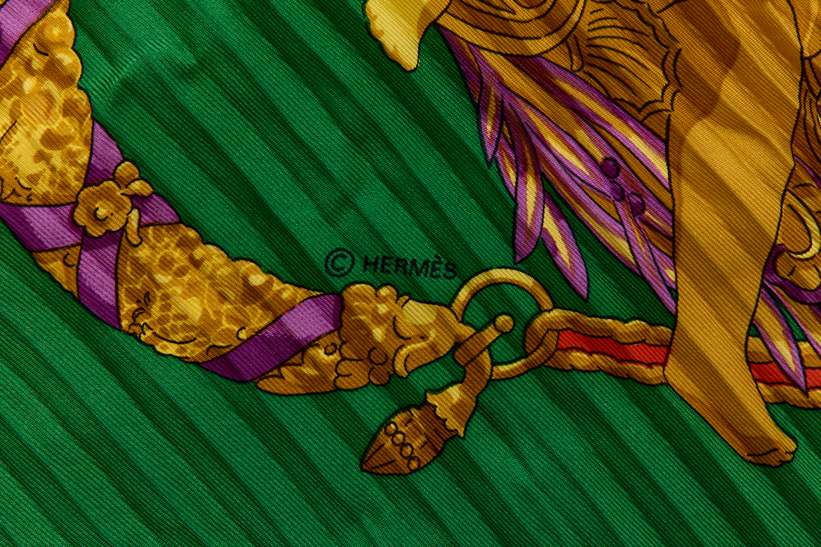 Hermes Silk Scarf Carre 90 “HOMMAGE A CHARLES GARNIER” Green Silk Pleats Scarf with Box