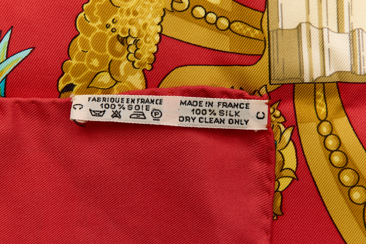 Hermes Silk Scarf Carre 90 “HOMMAGE A CHARLES GARNIER” Red Silk Scarf Brand : HERMESDesign by Caty Latham Issued 1986Item : ScarfSize : 88.5cm * 88.5cmMaterial : 100% SilkCondition Score: B+*For reference. The condition shown in the image takes precedence.*Please see the last two photos to see if the tag is still attached