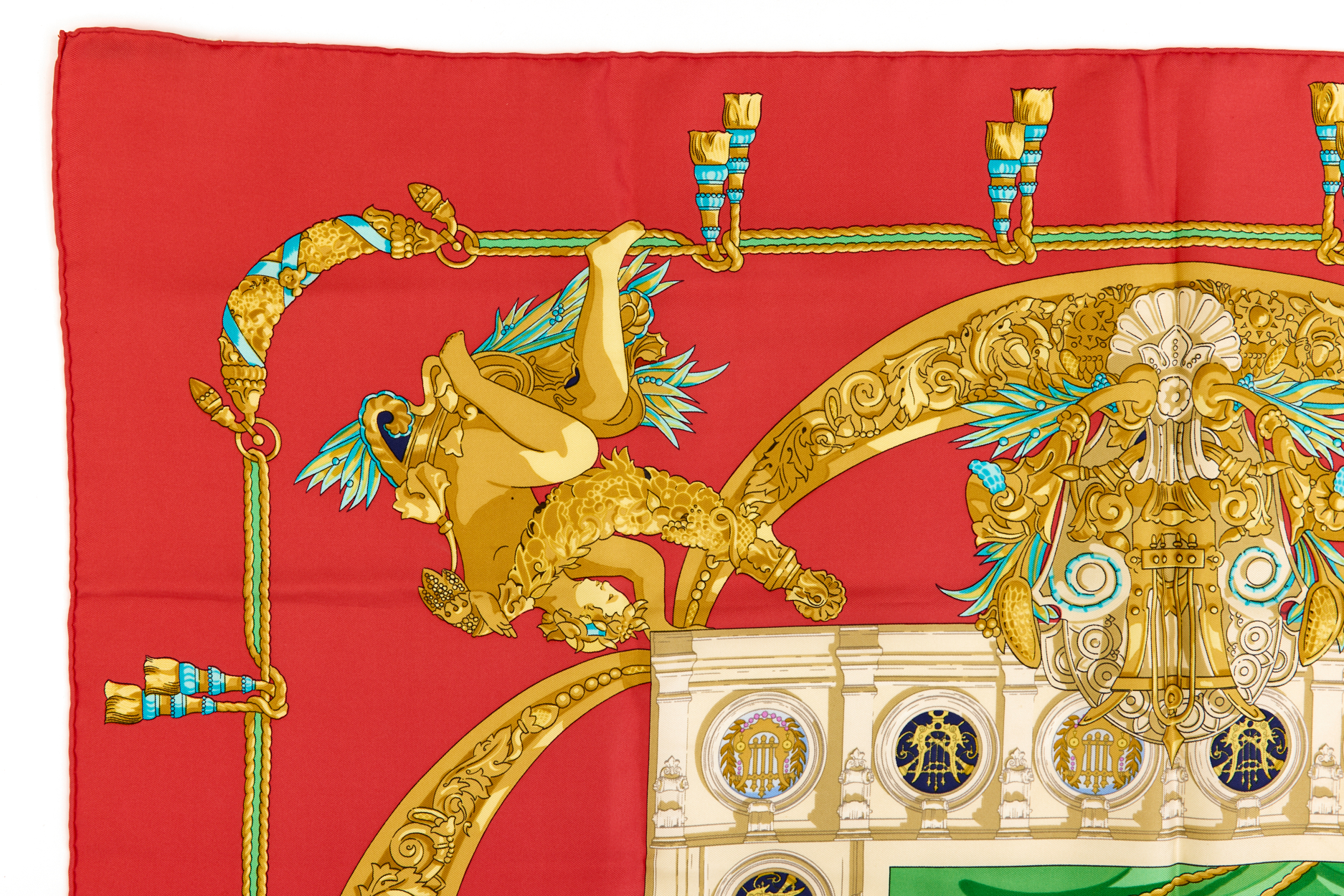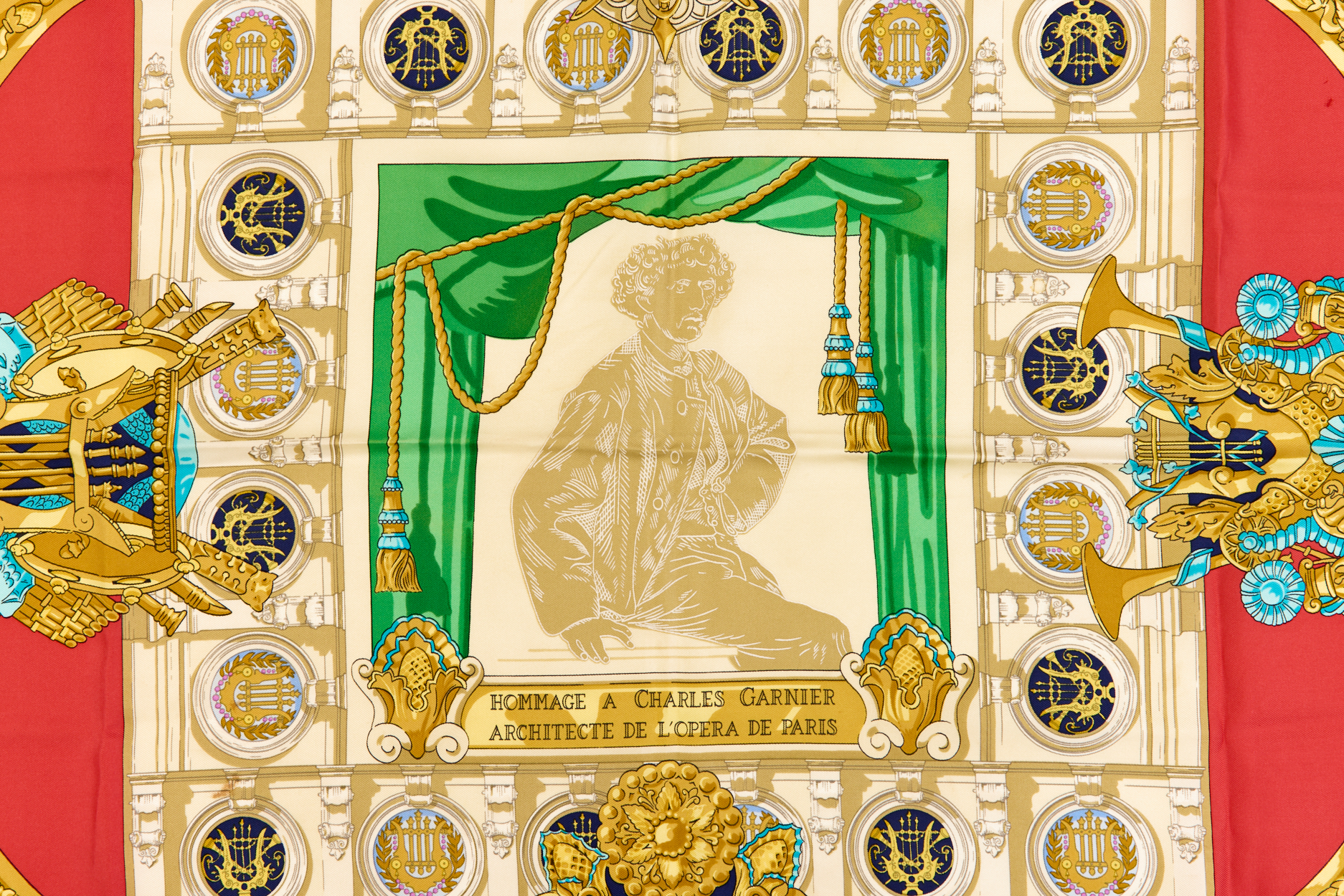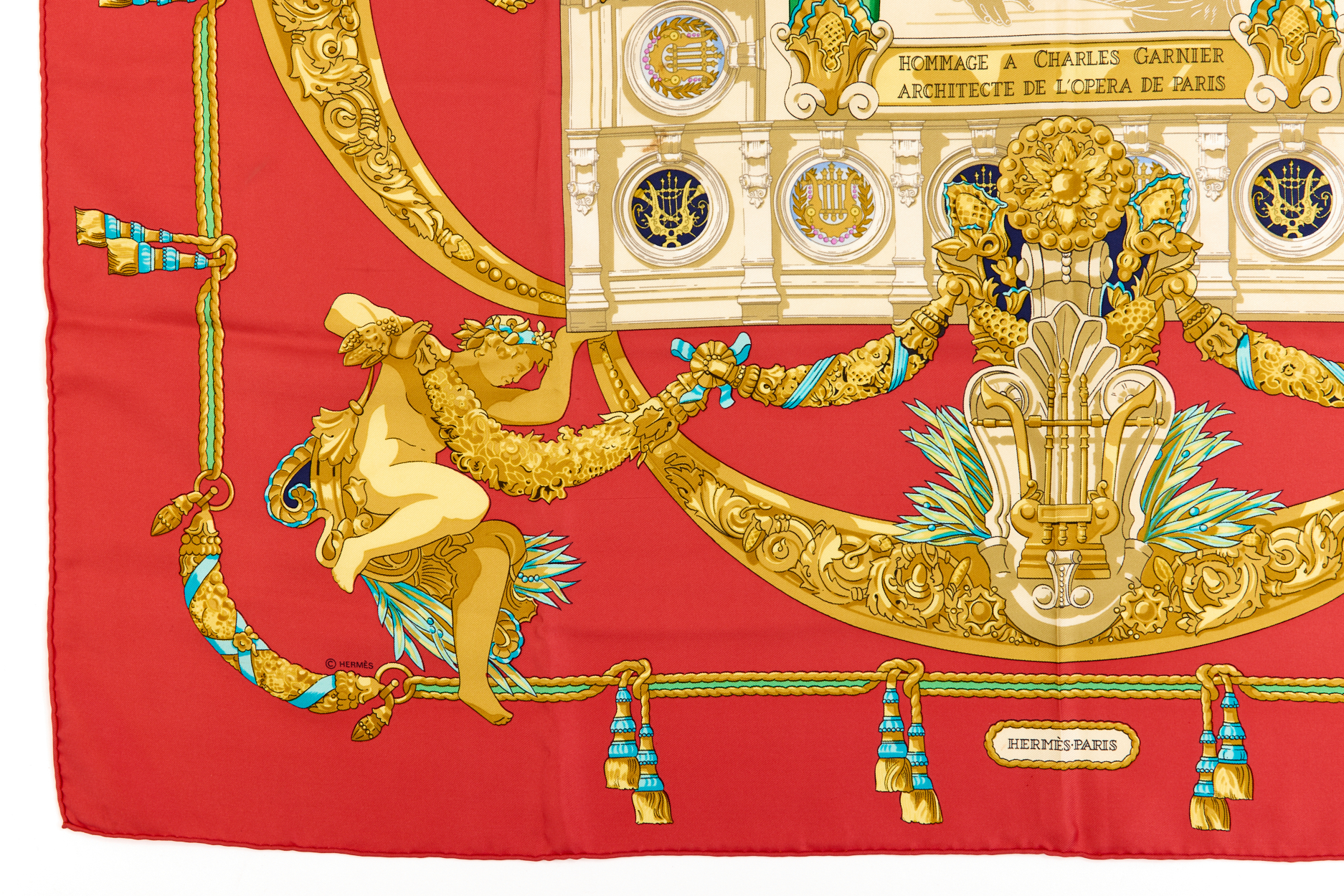 Hermes Silk Scarf Carre 90 “HOMMAGE A CHARLES GARNIER” Red Silk Scarf