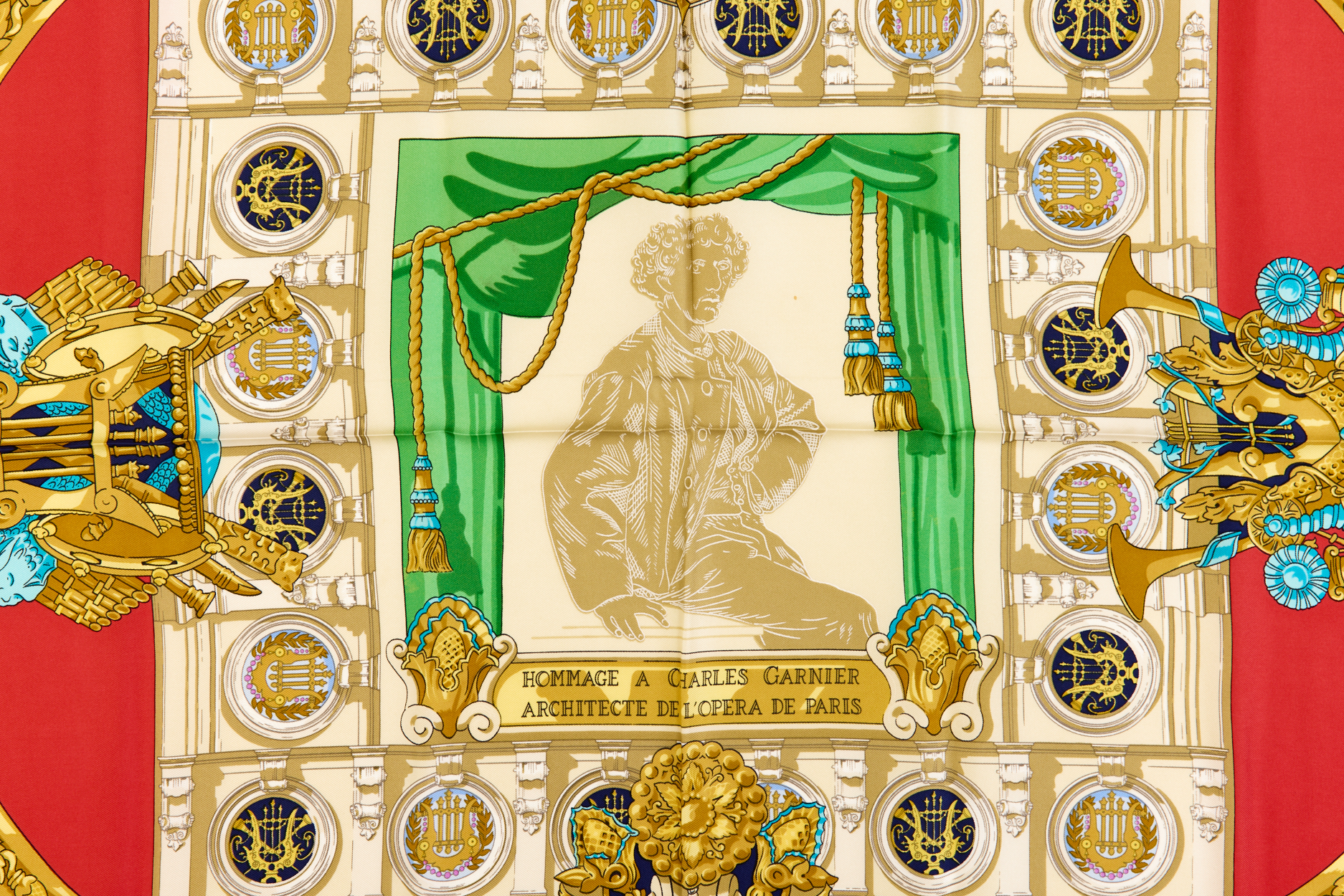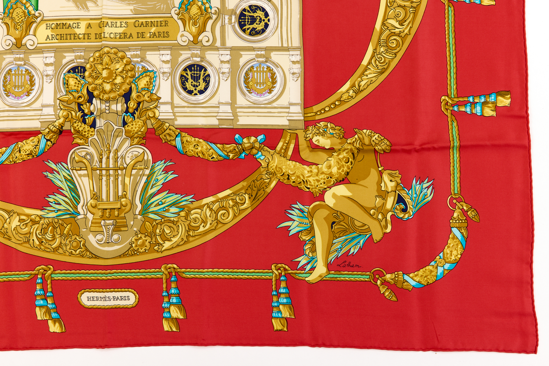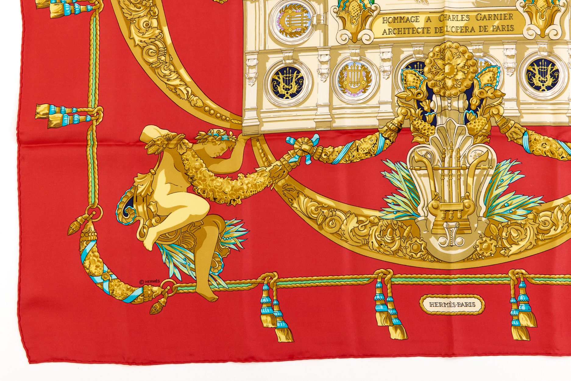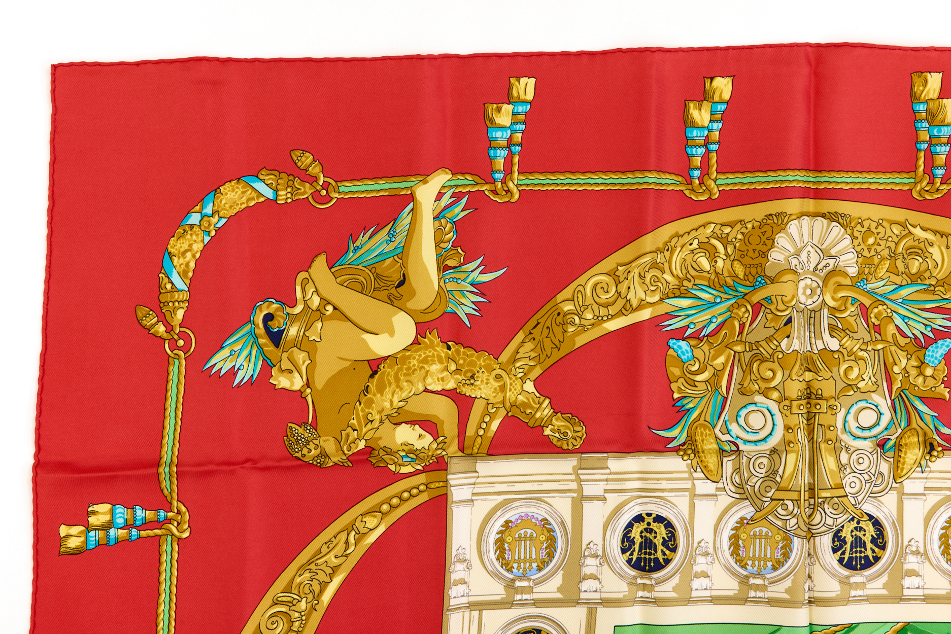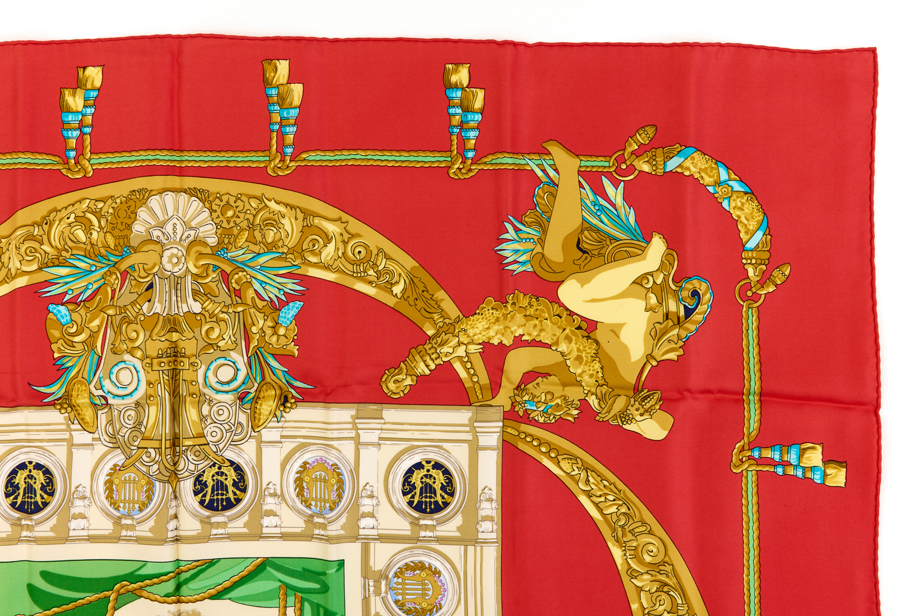 Hermes Silk Scarf Carre 90 “HOMMAGE A CHARLES GARNIER” Red Silk Scarf