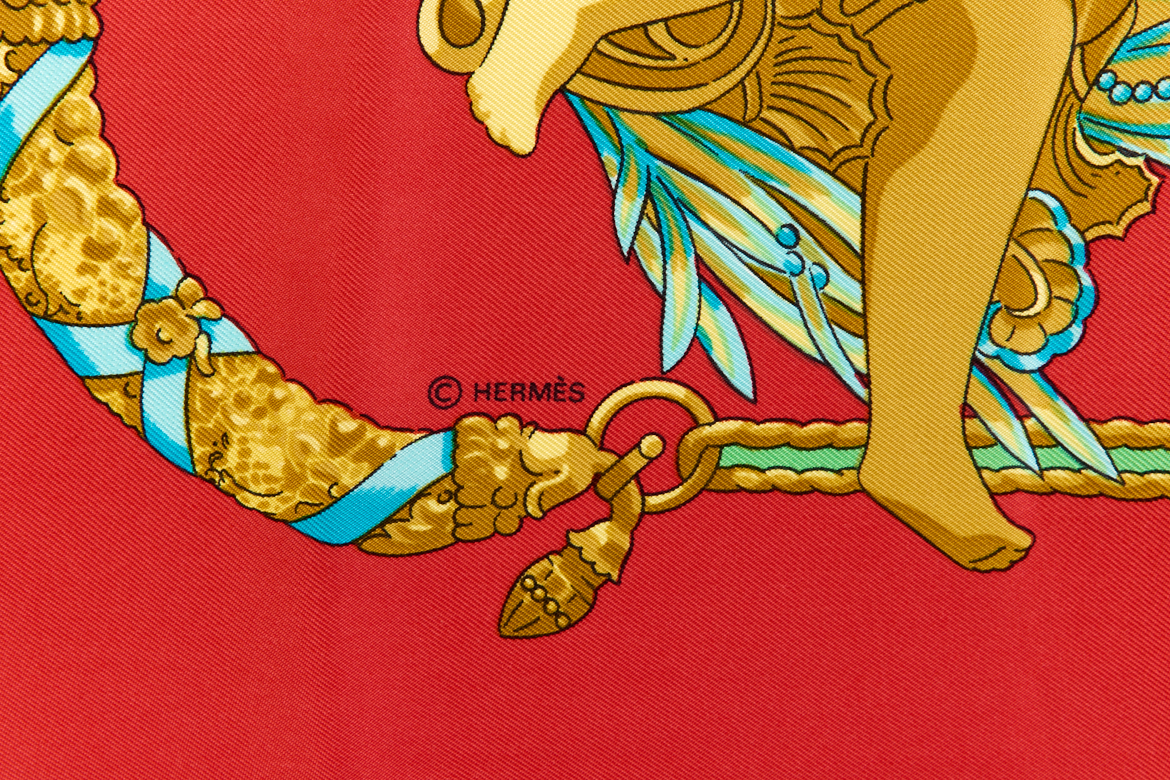 Hermes Silk Scarf Carre 90 “HOMMAGE A CHARLES GARNIER” Red Silk Scarf Brand : HERMESDesign by Caty Latham Issued 1986Item : ScarfSize : 88.5cm * 88.5cmMaterial : 100% SilkCondition Score: B+*For reference. The condition shown in the image takes precedence.*Please see the last two photos to see if the tag is still attached