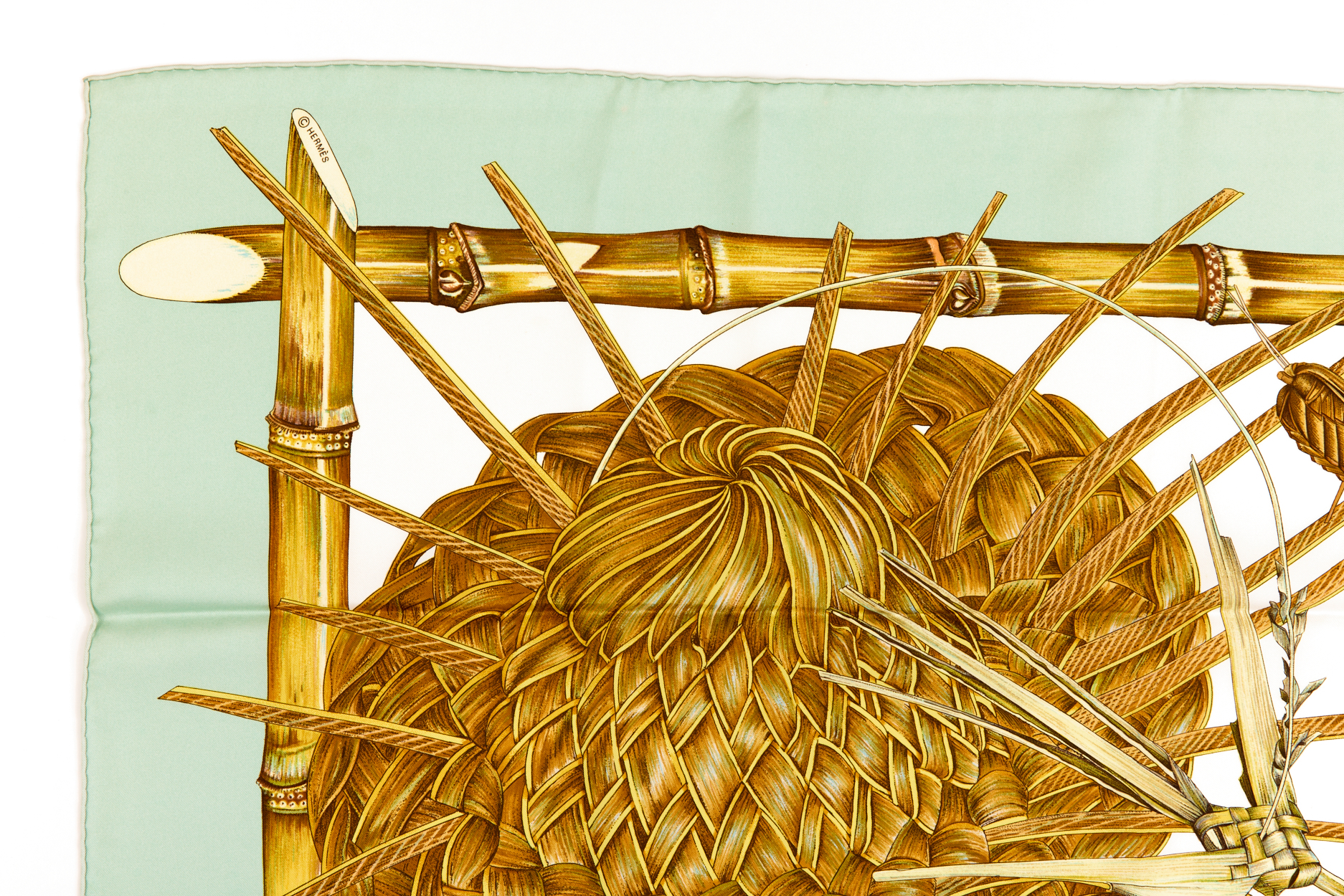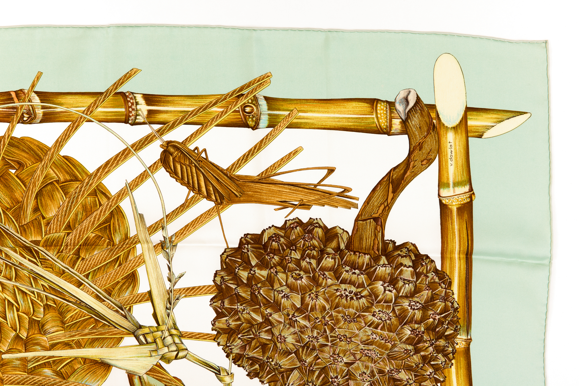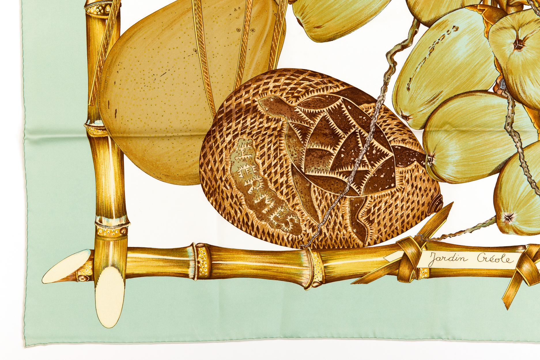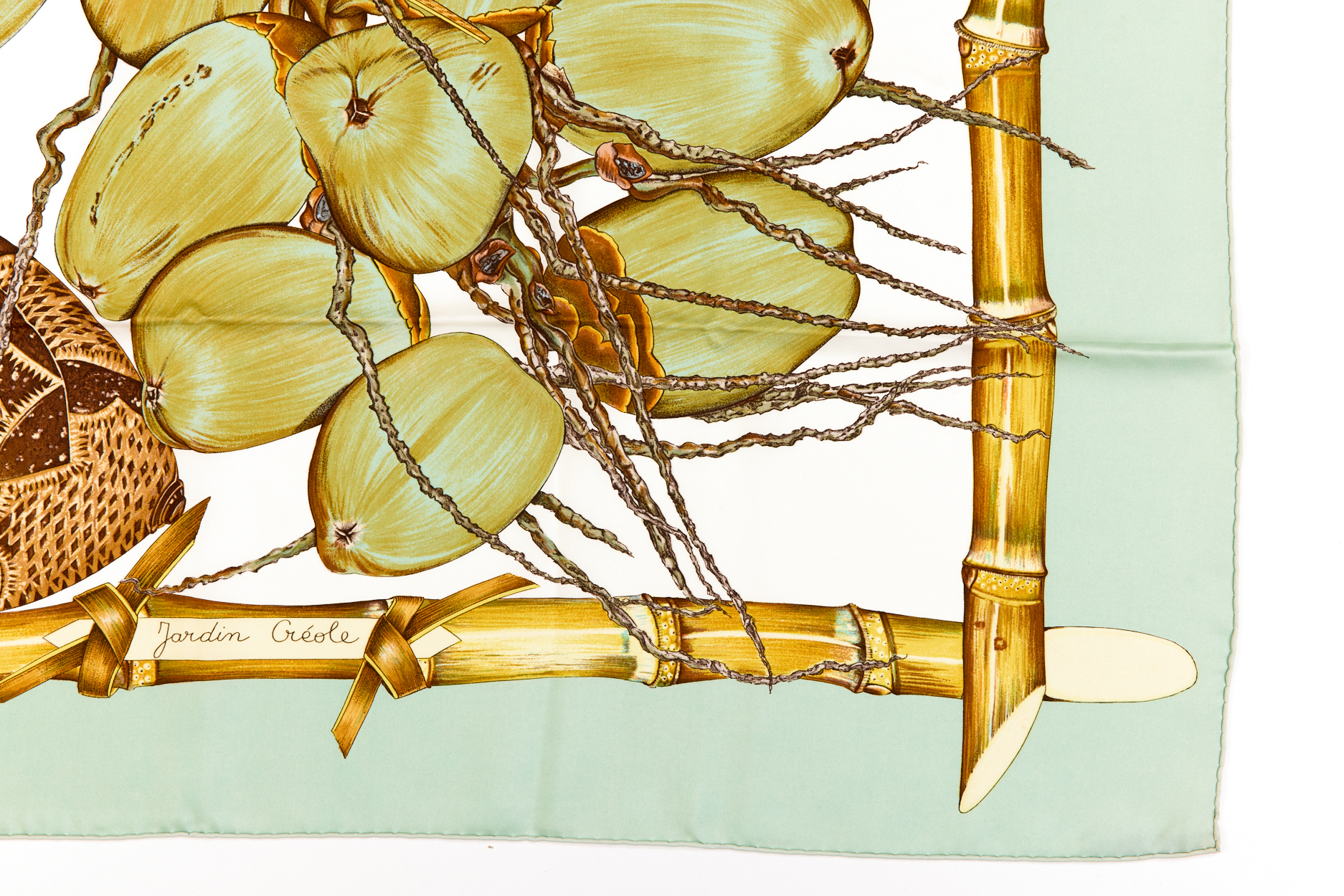 Hermes Silk Scarf Carre 90 “Jardin Creole” Green Silk Scarf