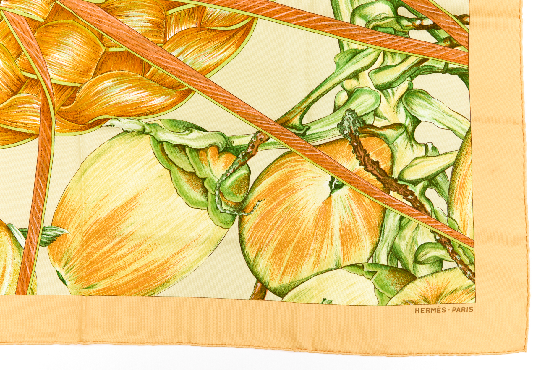 Hermes Silk Scarf Carre 90 “Jardin Creole” Orange Silk Scarf