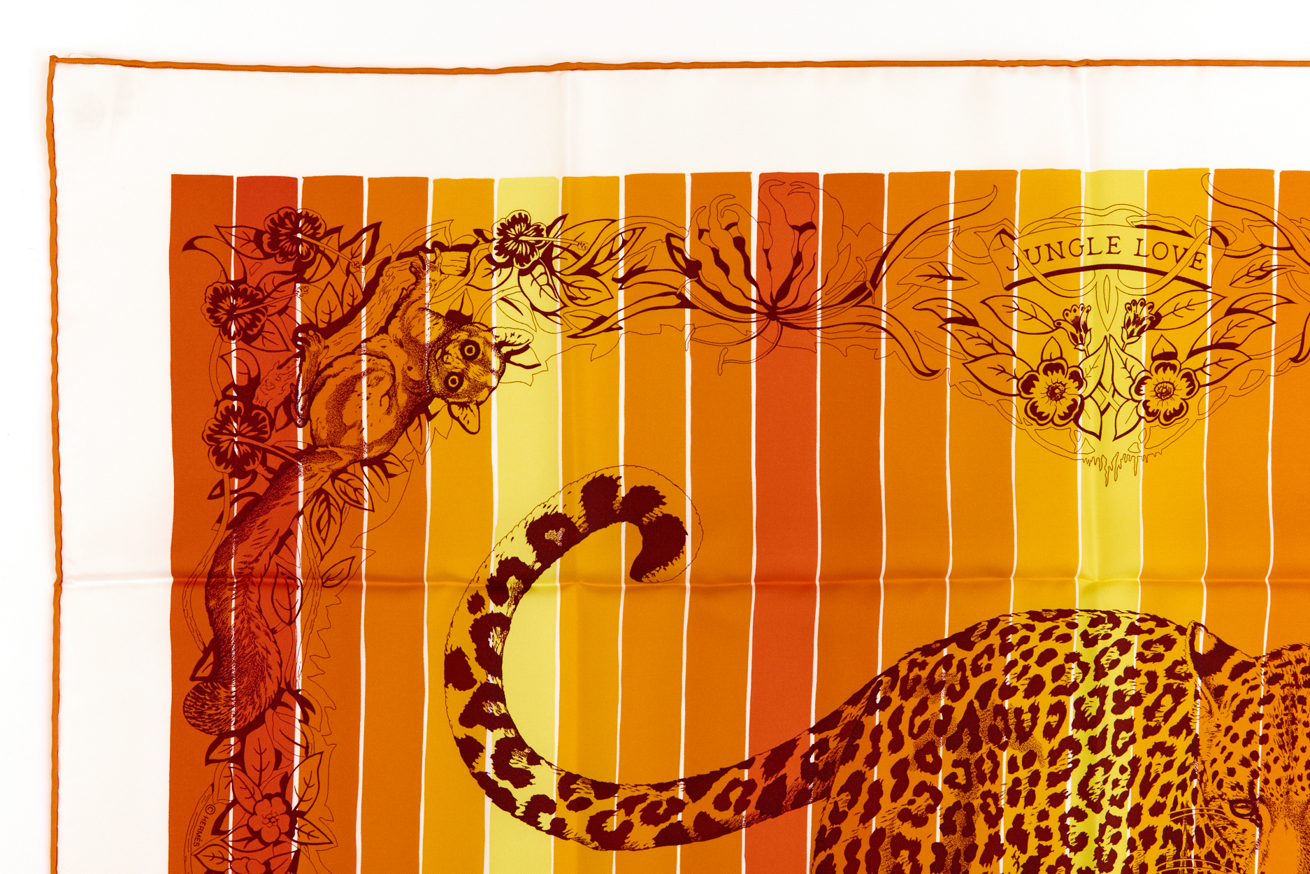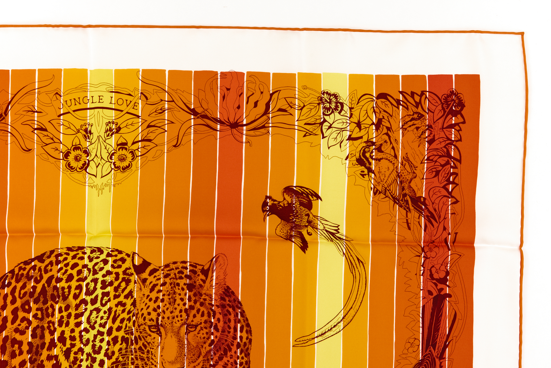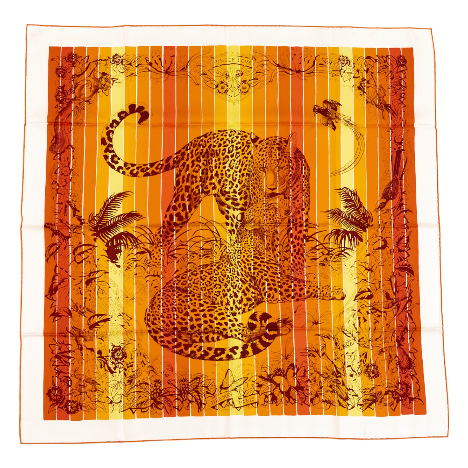 Hermes Silk Scarf Carre 90 “JUNGLE LOVE” Orange Silk Scarf