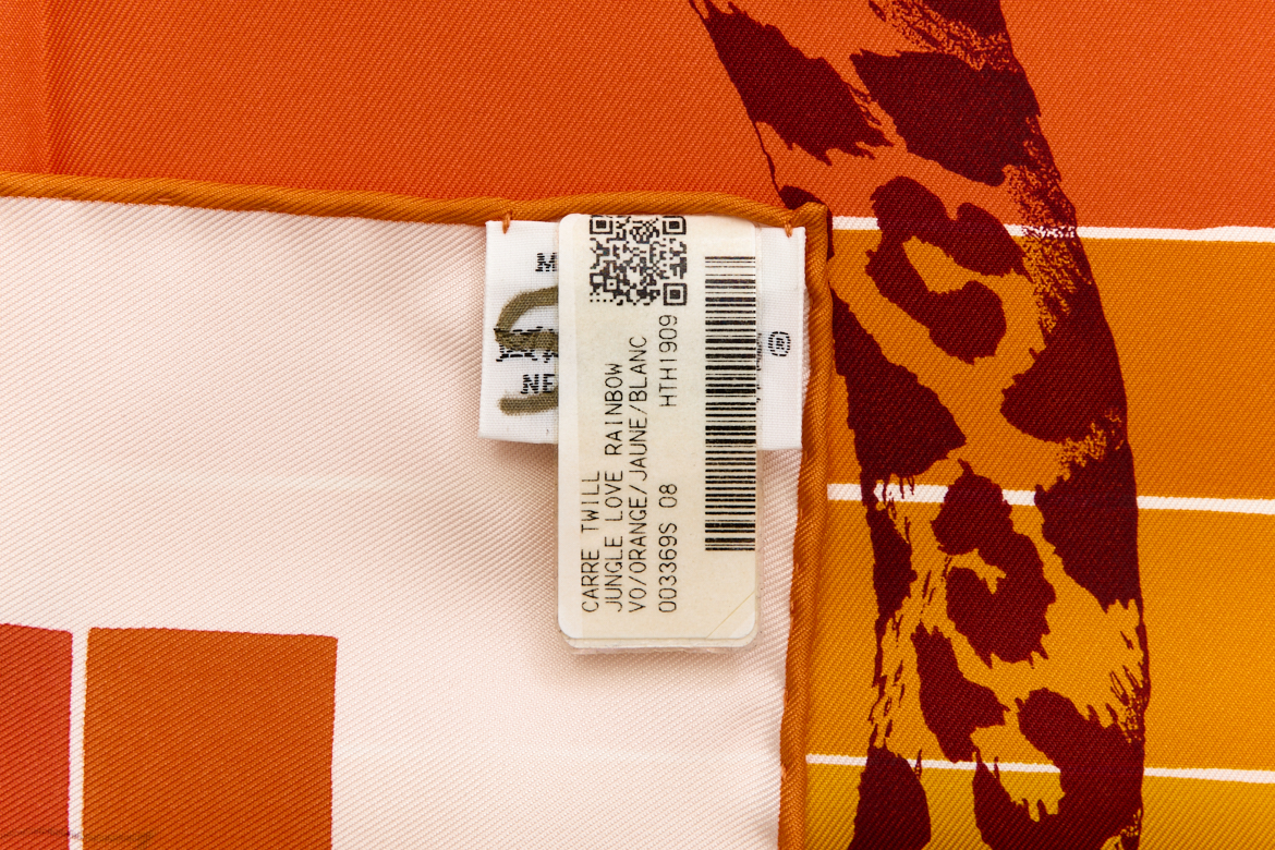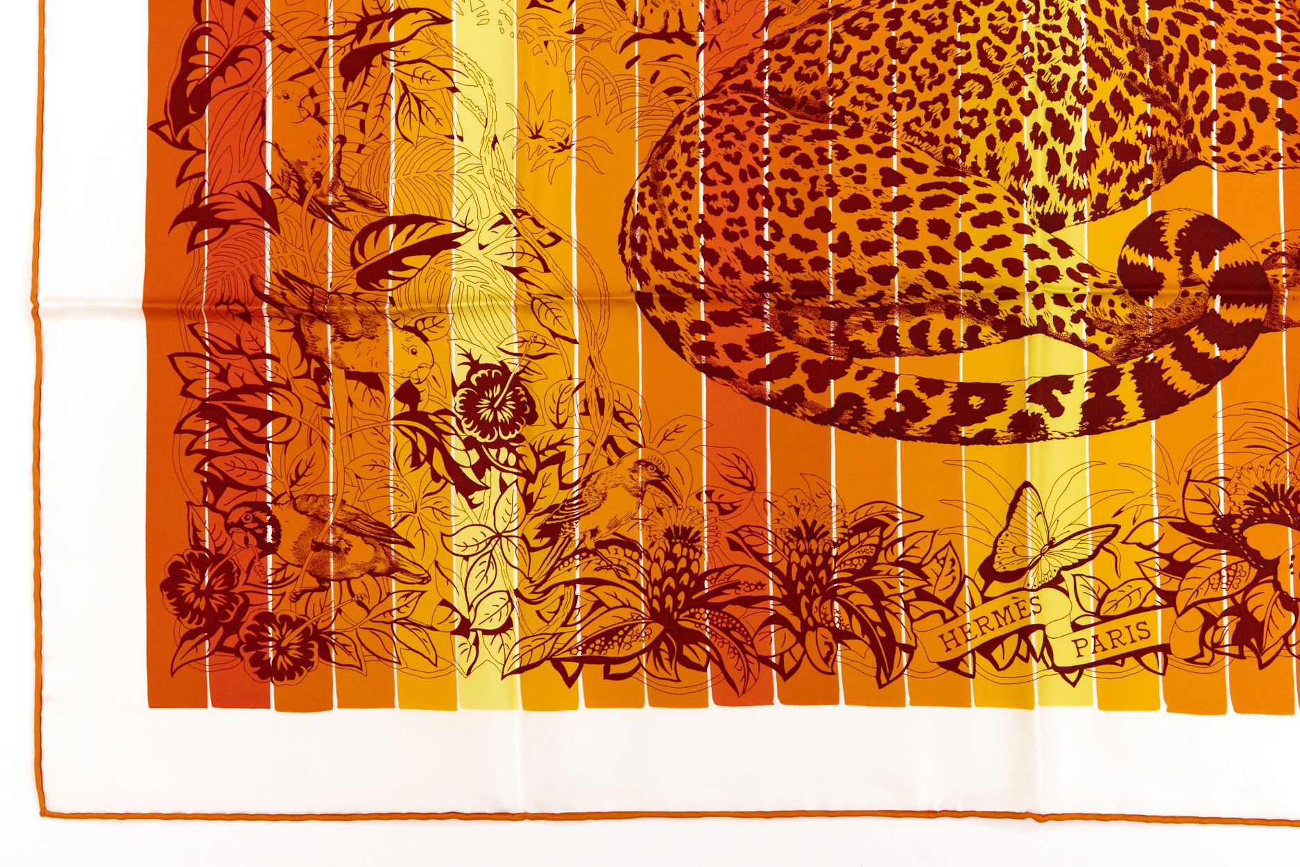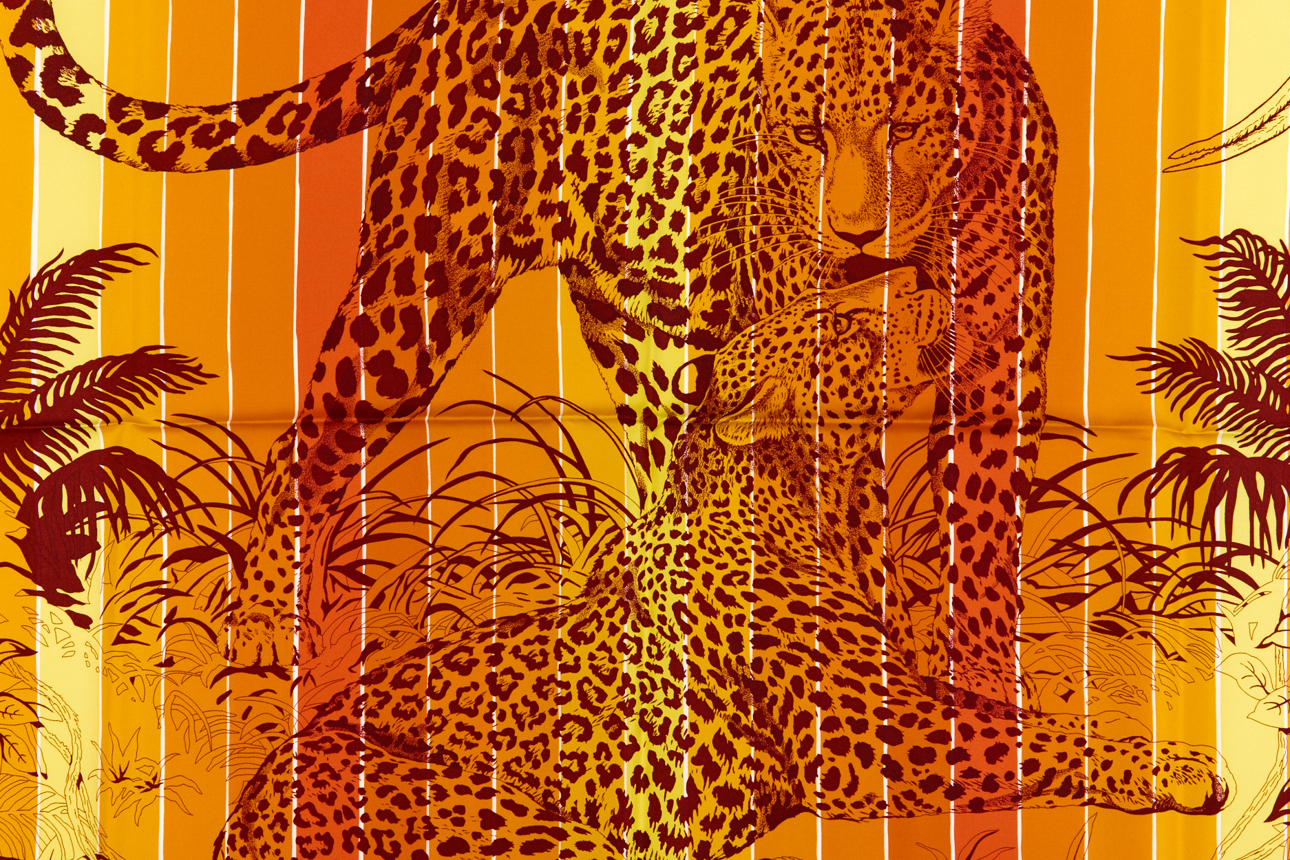 Hermes Silk Scarf Carre 90 “JUNGLE LOVE” Orange Silk Scarf