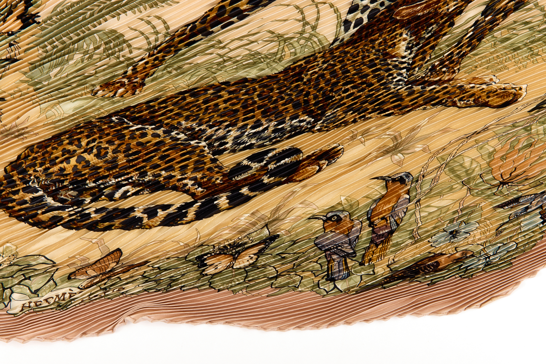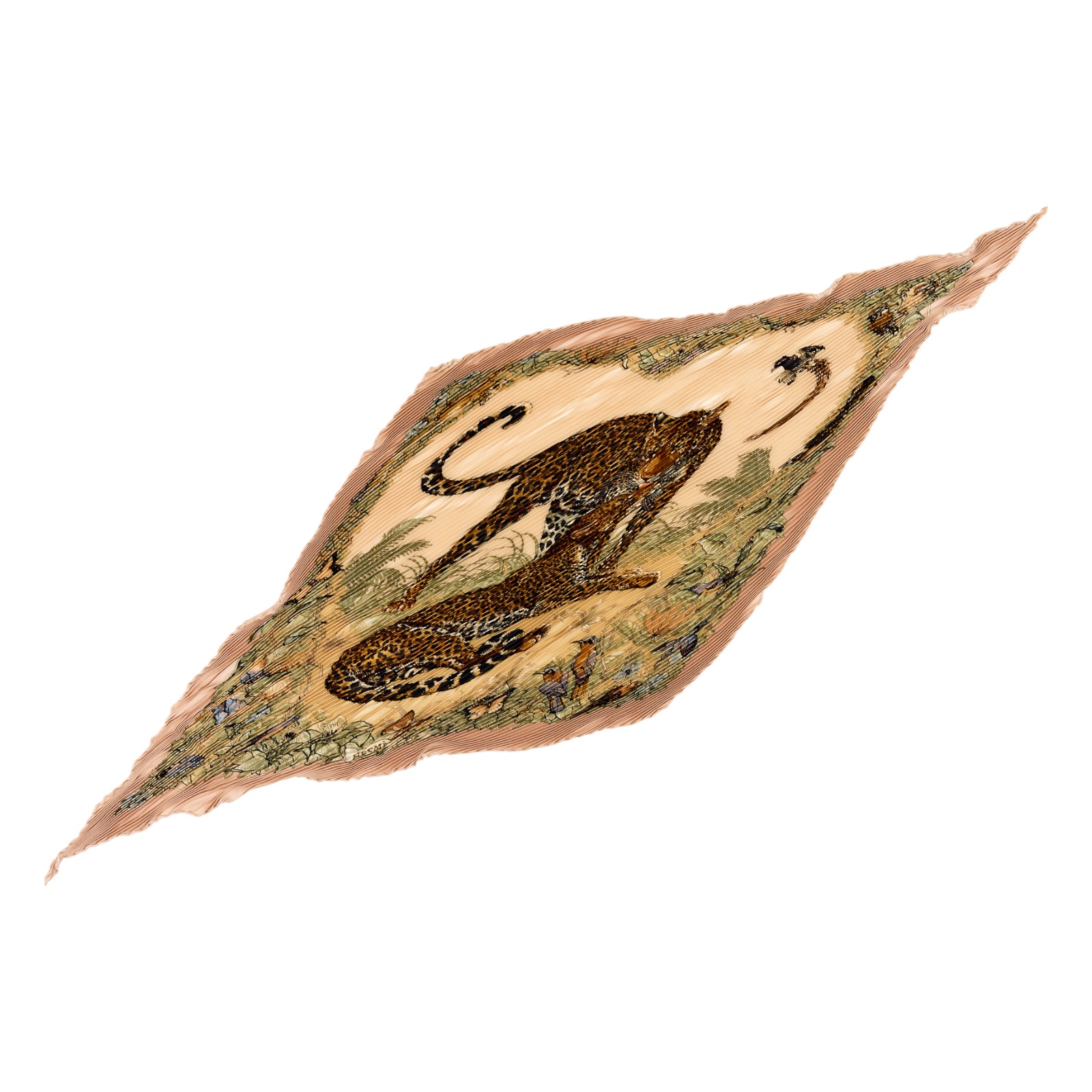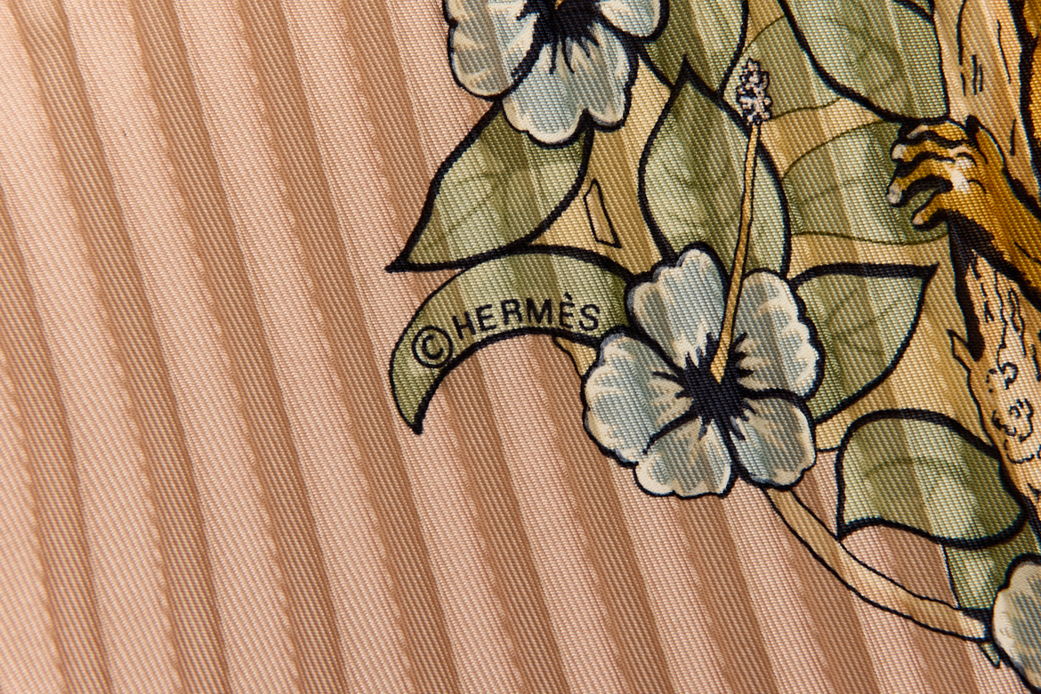 Hermes Silk Scarf Carre 90 “JUNGLE LOVE” Pink Silk Pleats Scarf
