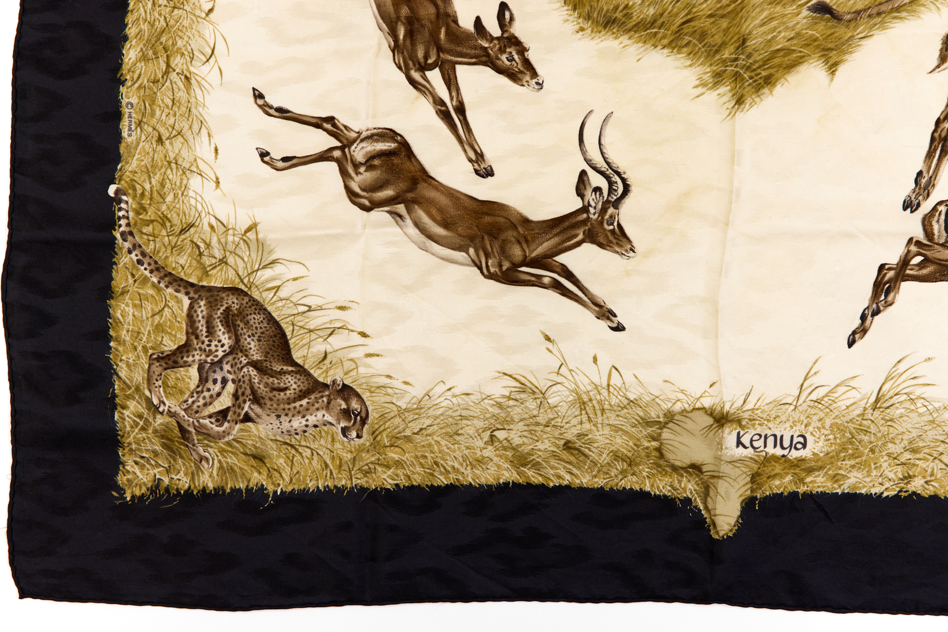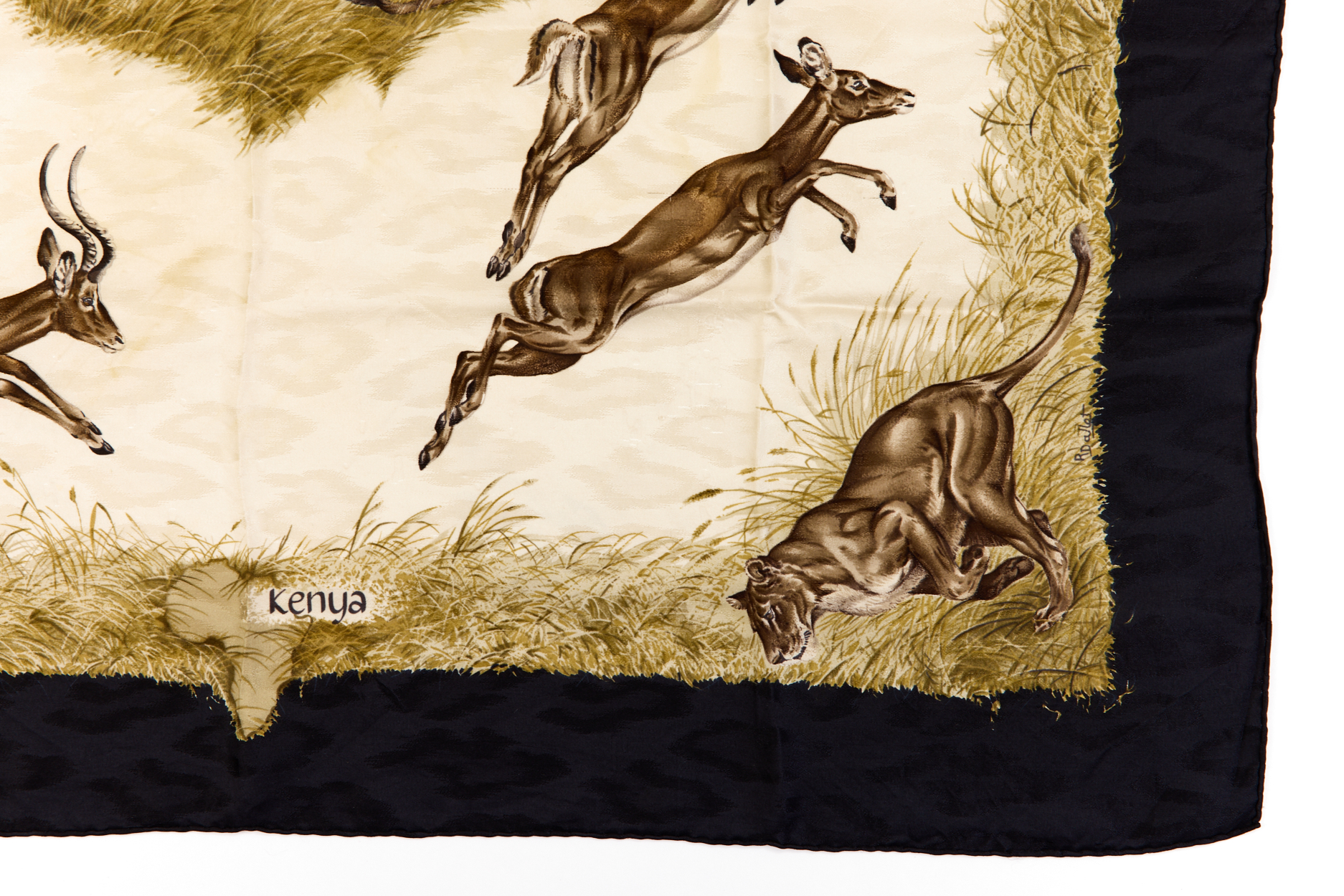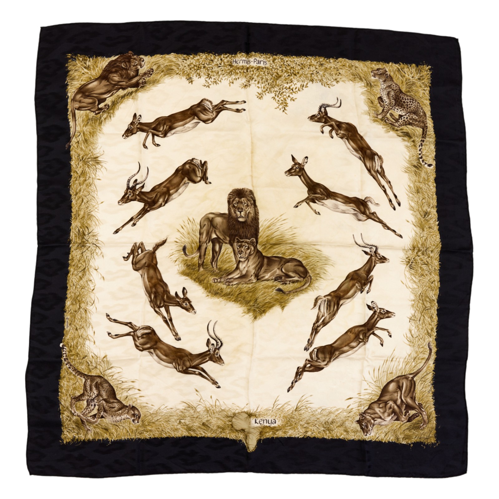 Hermes Silk Scarf Carre 90 “Kenya” Black Silk Scarf