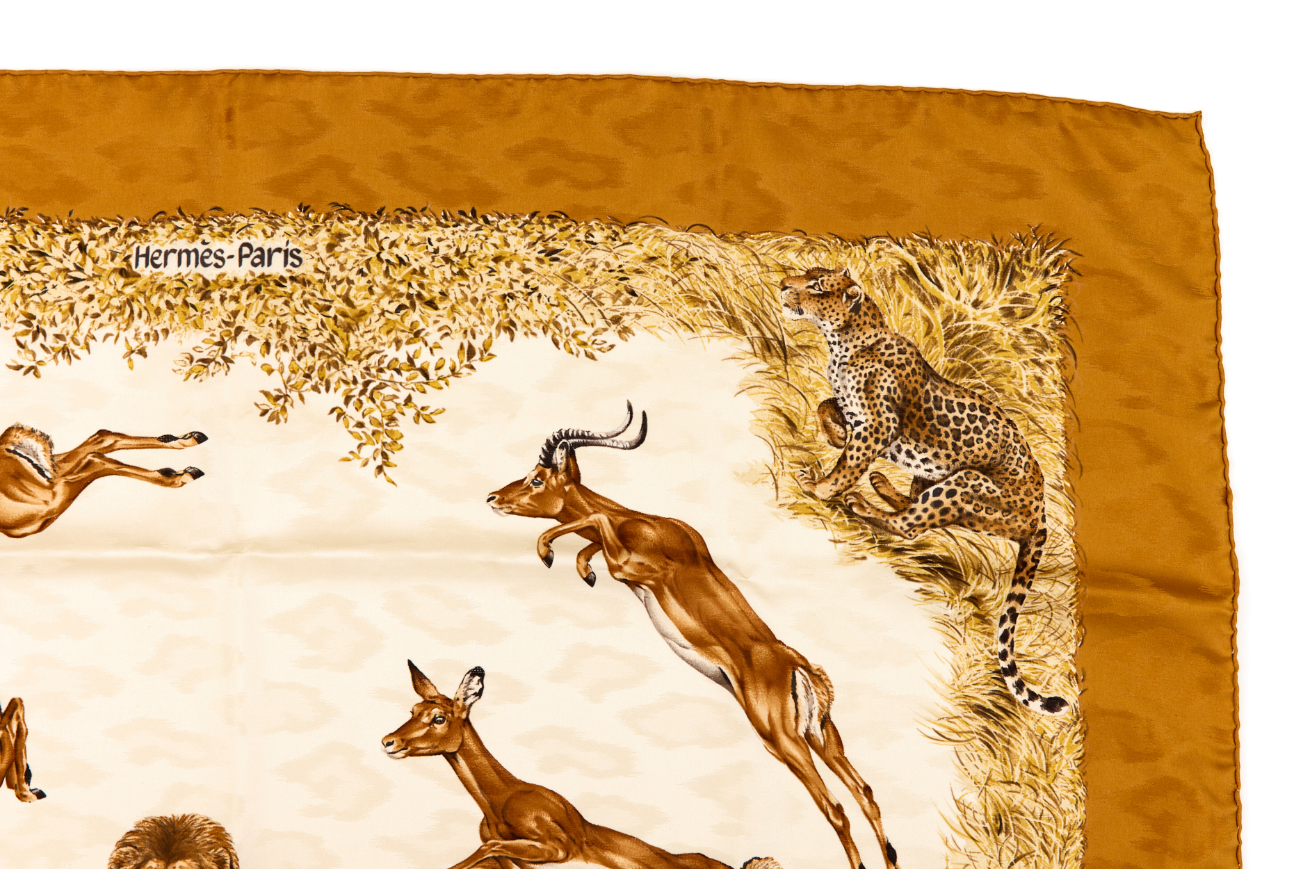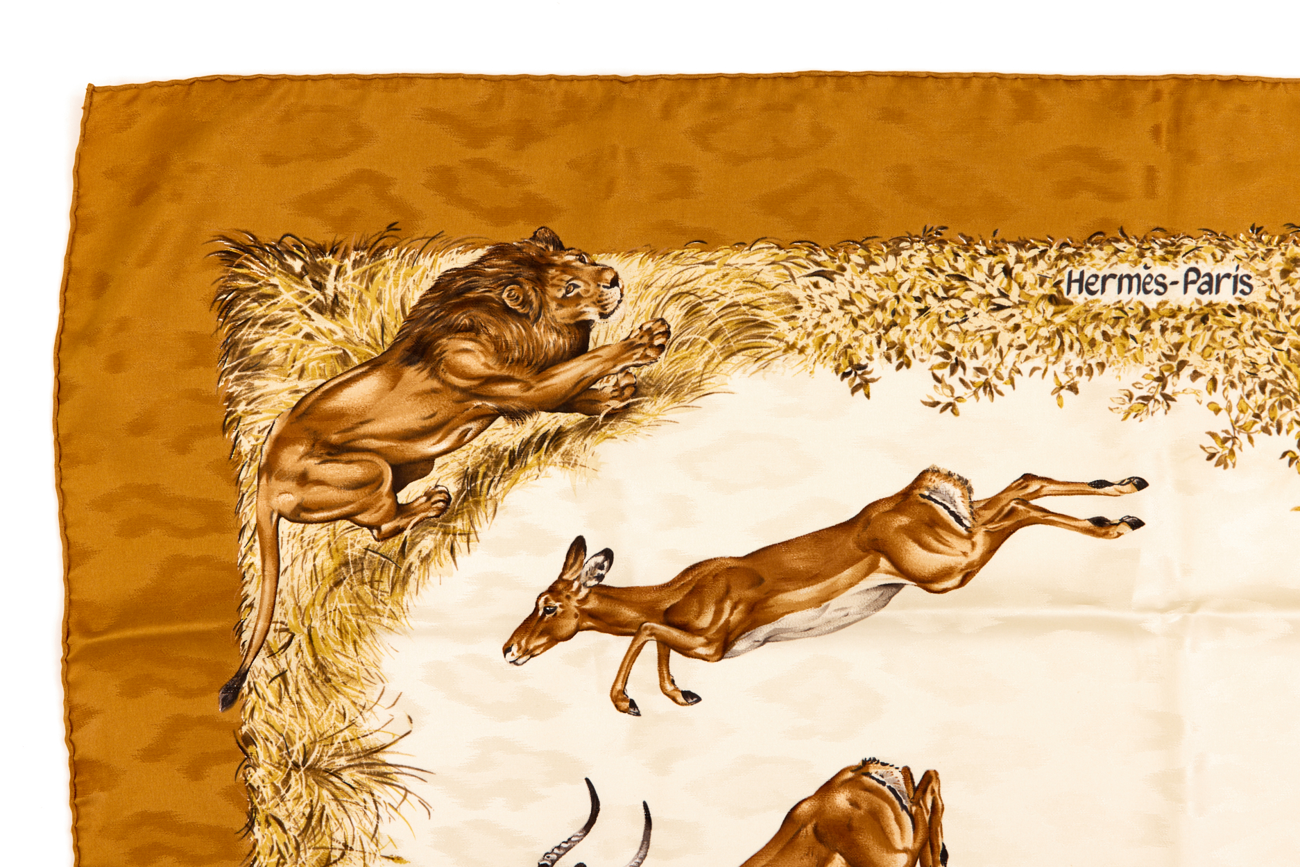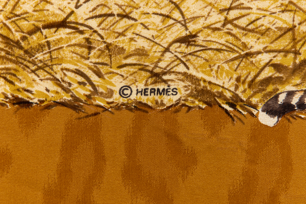 Hermes Silk Scarf Carre 90 “Kenya” Brown,Yellow Silk Scarf