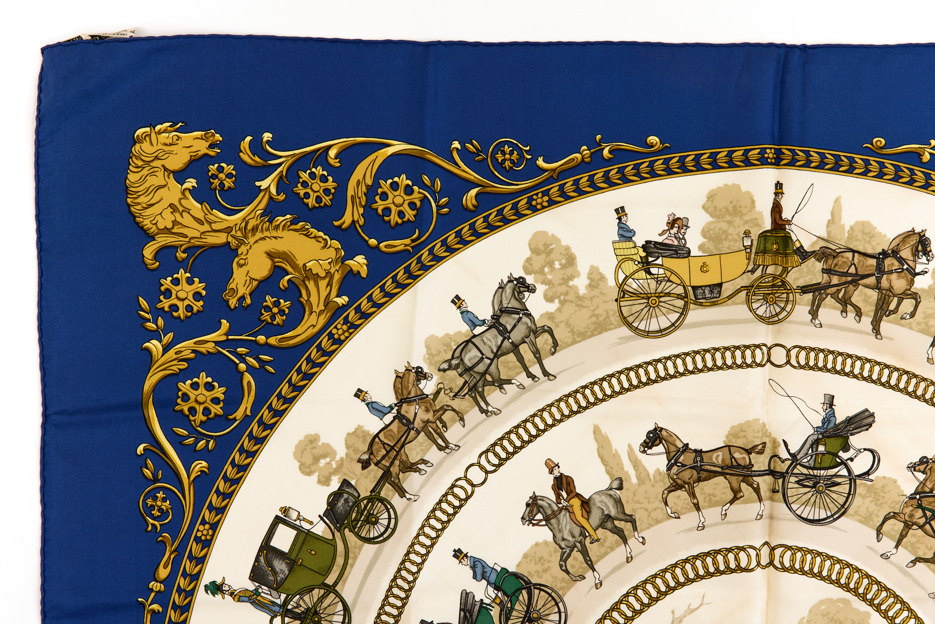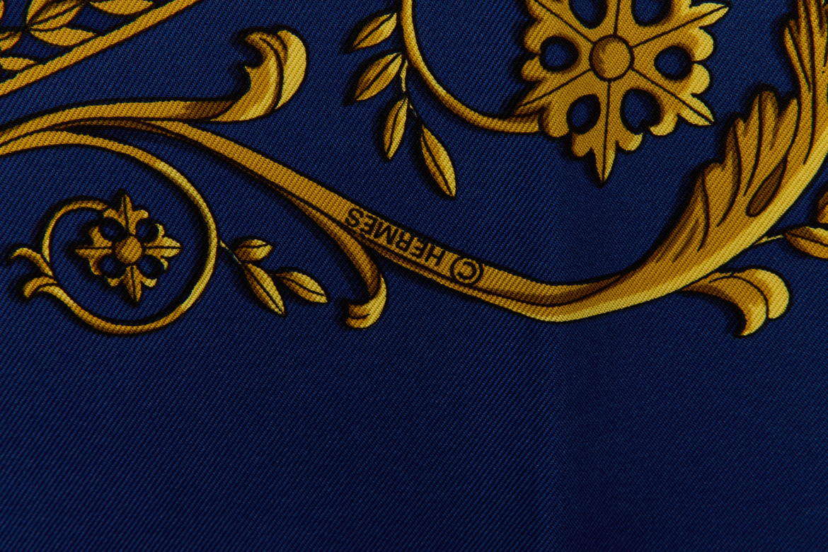 Hermes Silk Scarf Carre 90 “LA PROMENADE DE LONGCHAMPS” Blue Silk Scarf