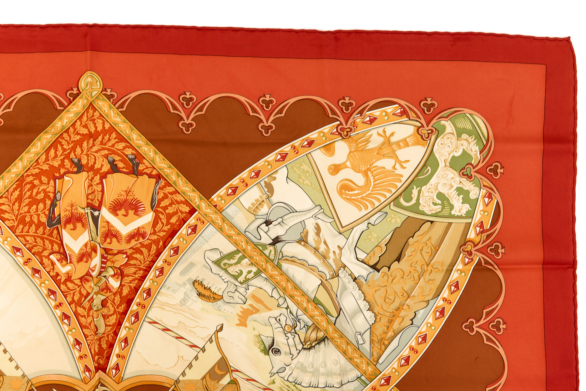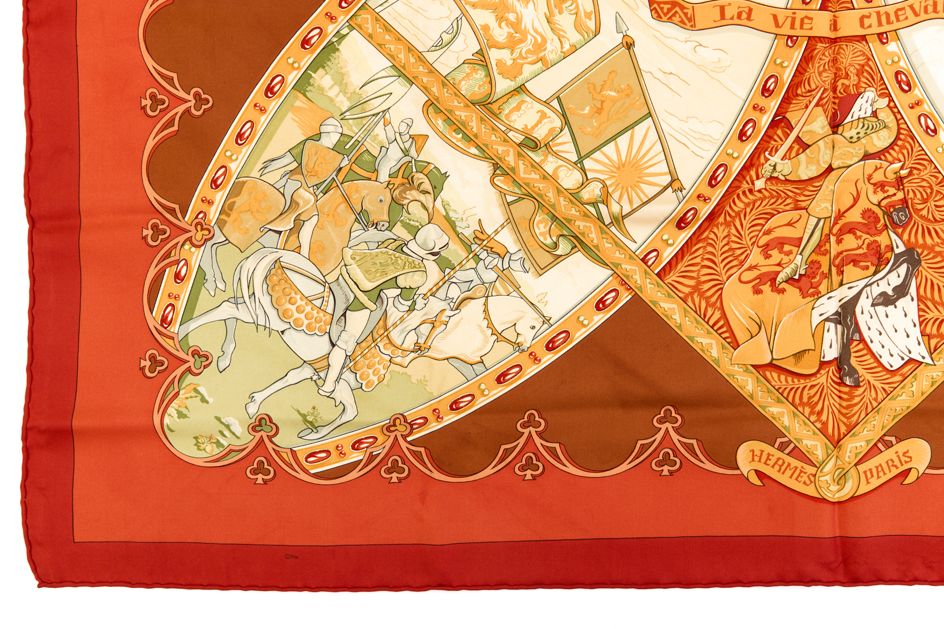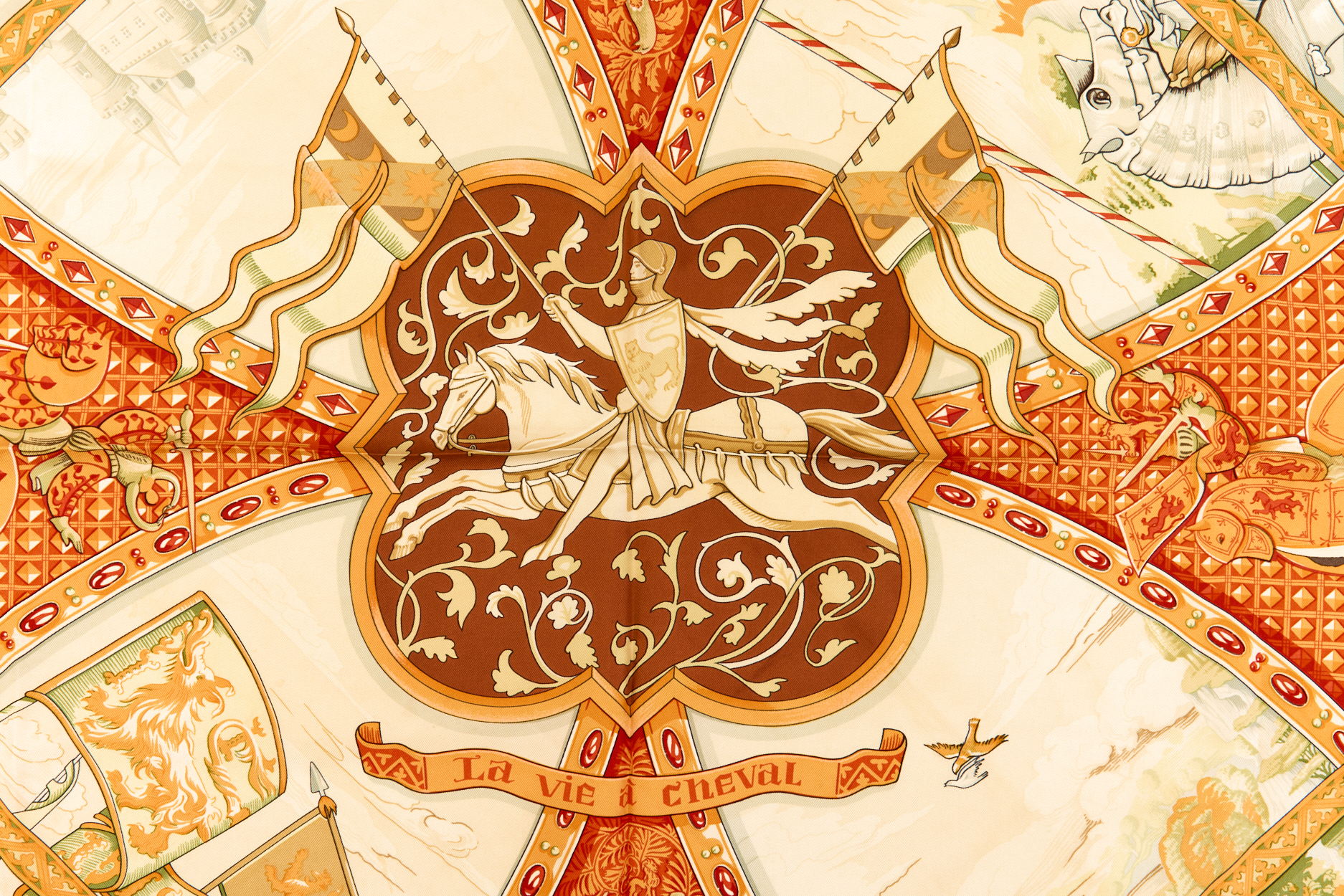 Hermes Silk Scarf Carre 90 “LA VIE A CHEVAL” Orange Silk Scarf