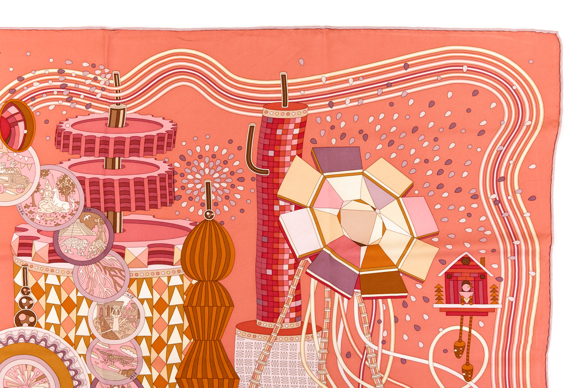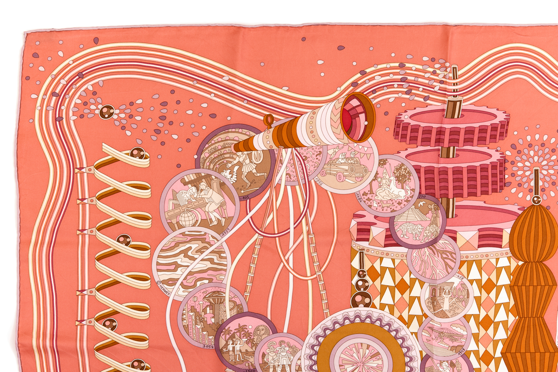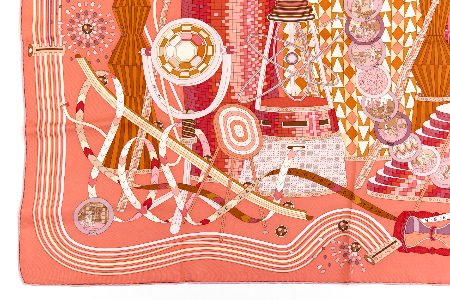 Hermes Silk Scarf Carre 90 “LE LABORATOIRE DU TEMPS” Pink Silk Scarf