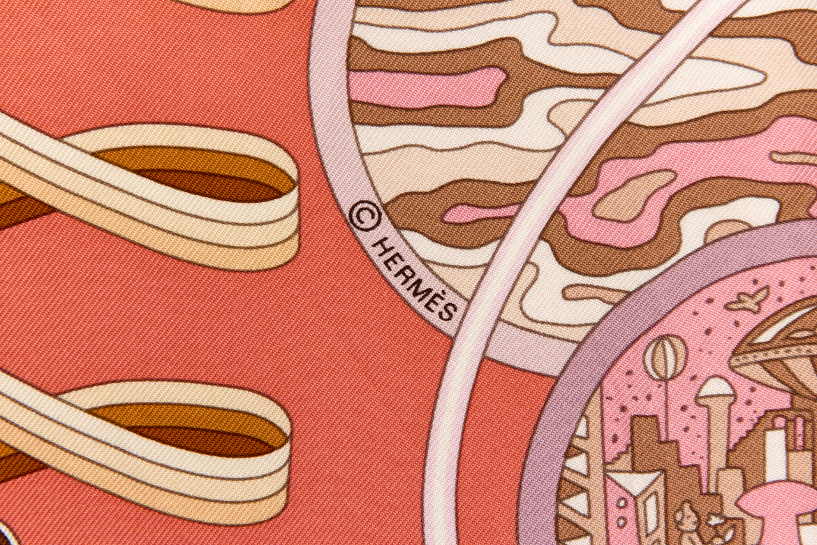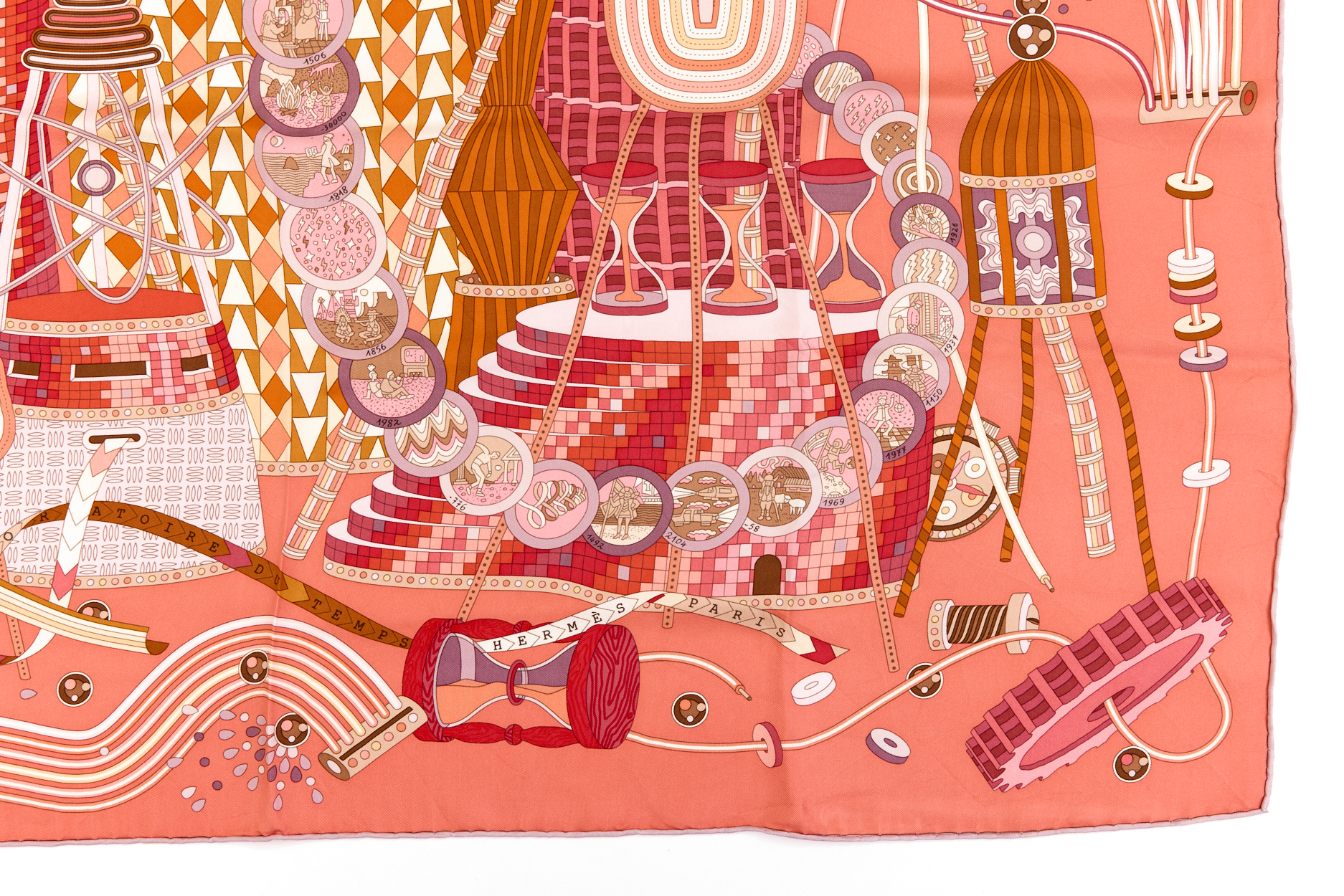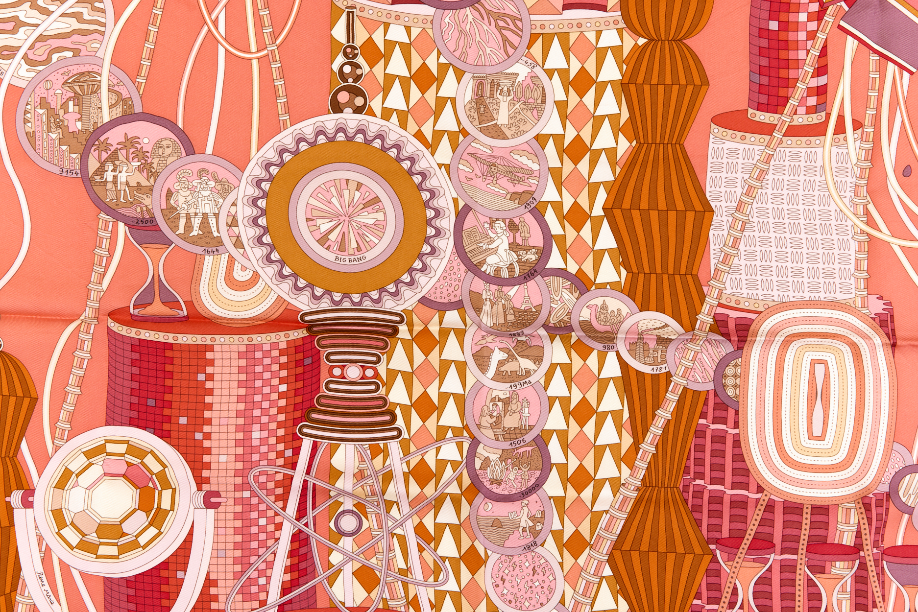 Hermes Silk Scarf Carre 90 “LE LABORATOIRE DU TEMPS” Pink Silk Scarf