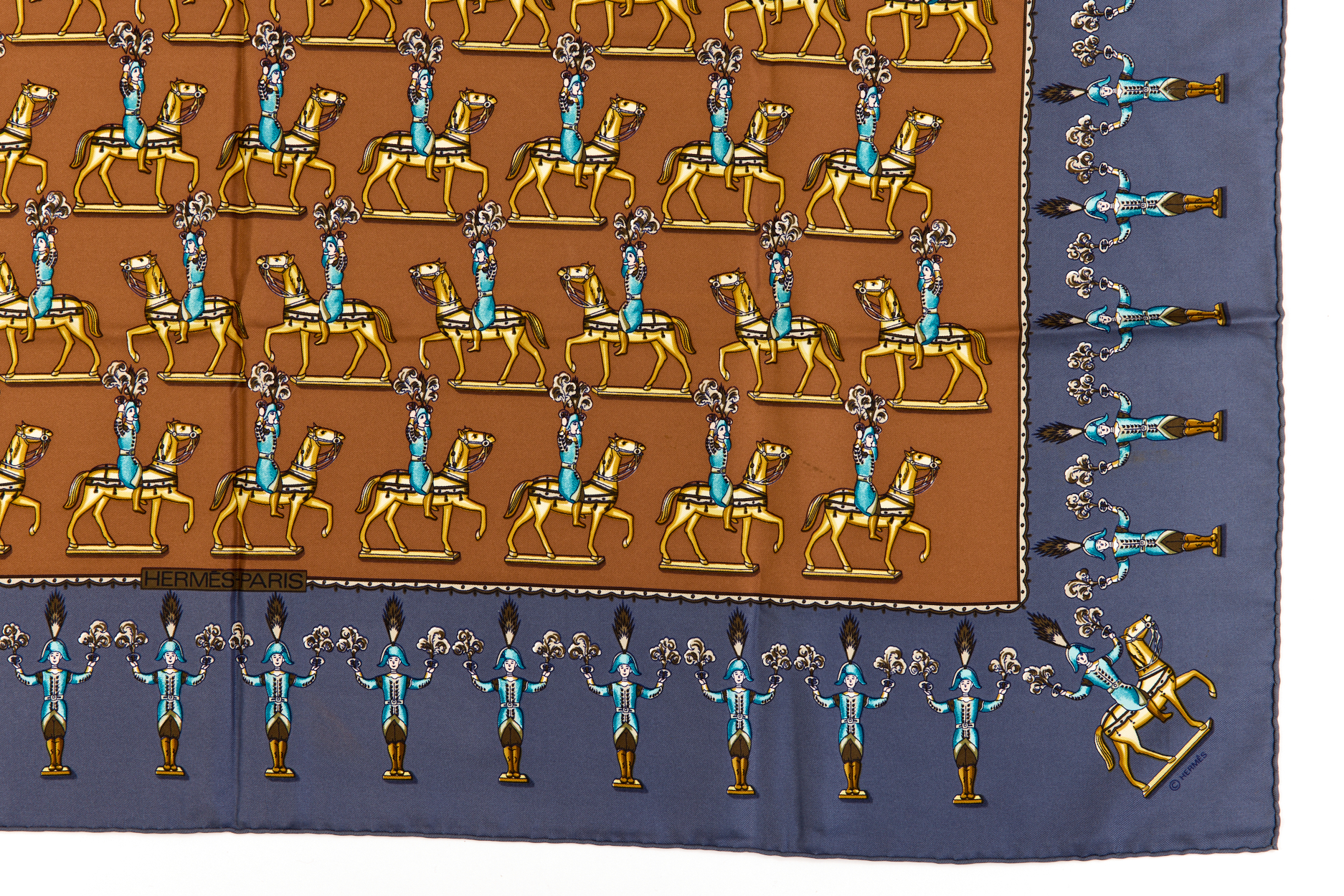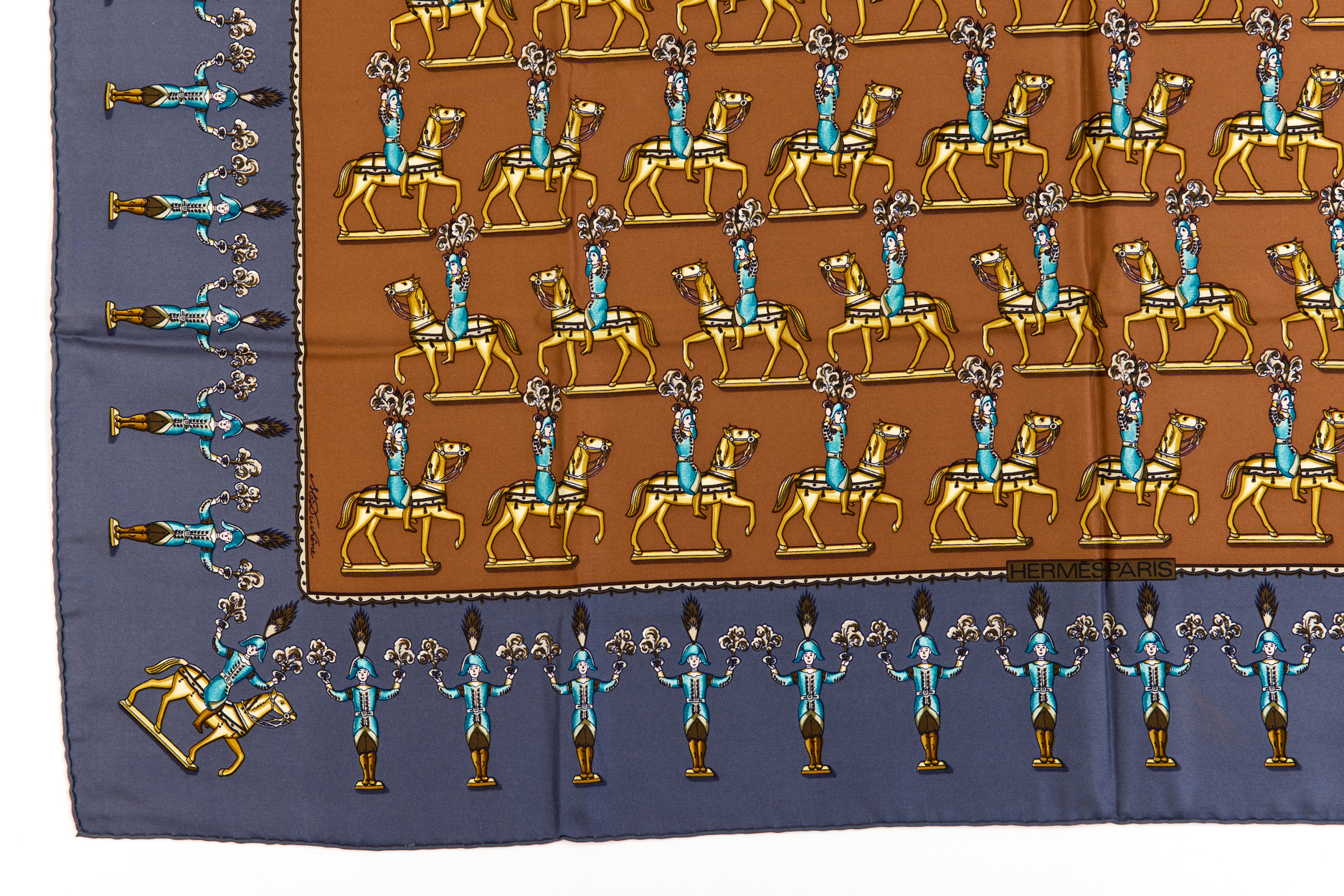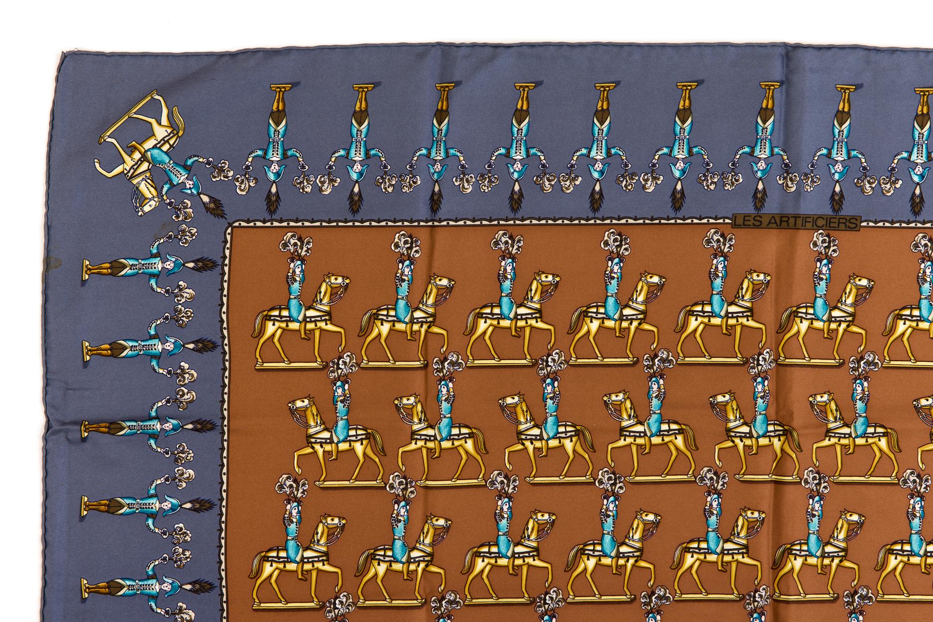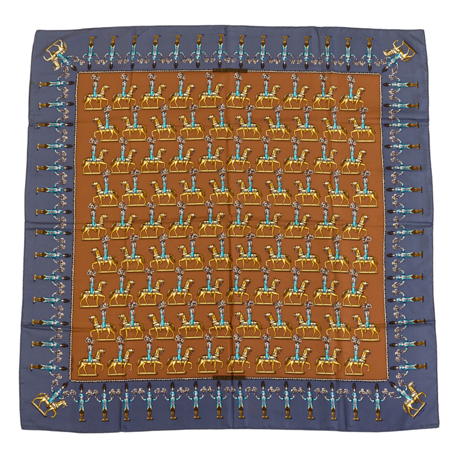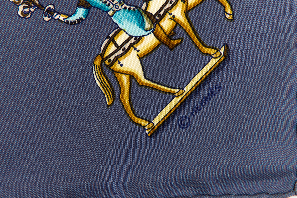 Hermes Silk Scarf Carre 90 “LES ARTIFICIERS” Blue Silk Scarf
