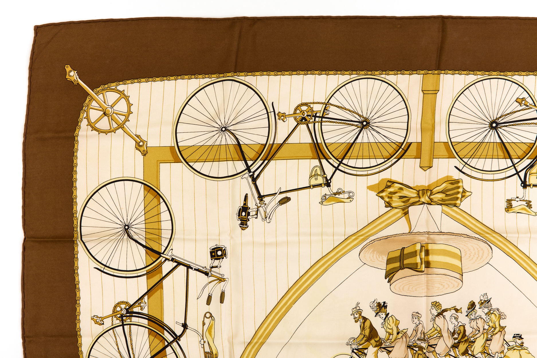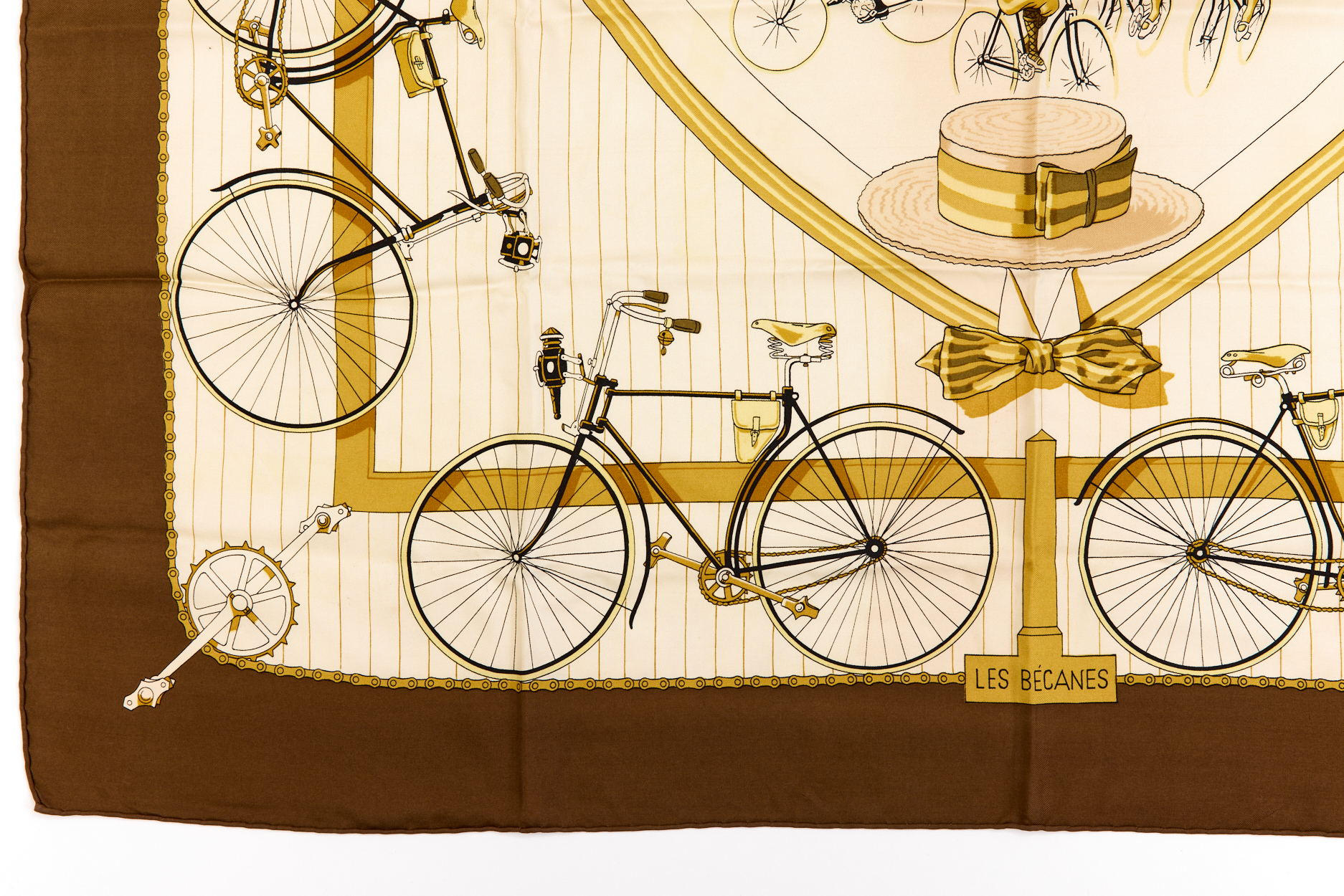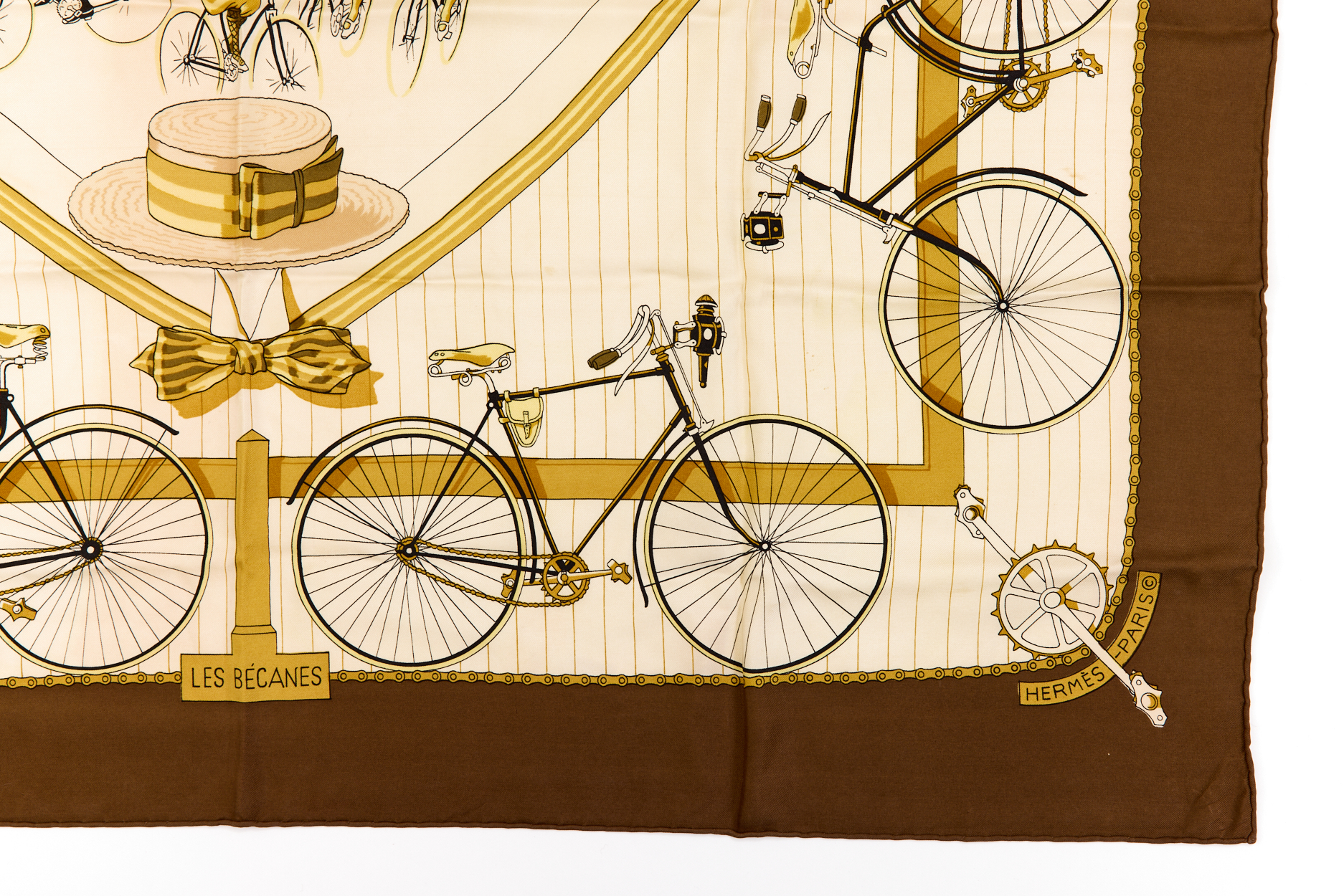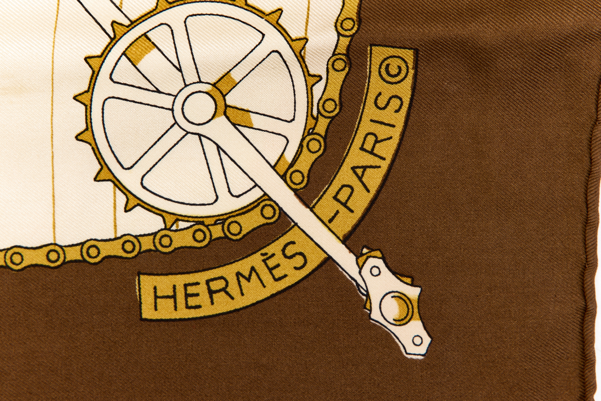 Hermes Silk Scarf Carre 90 “LES BECANES” Brown Silk Scarf