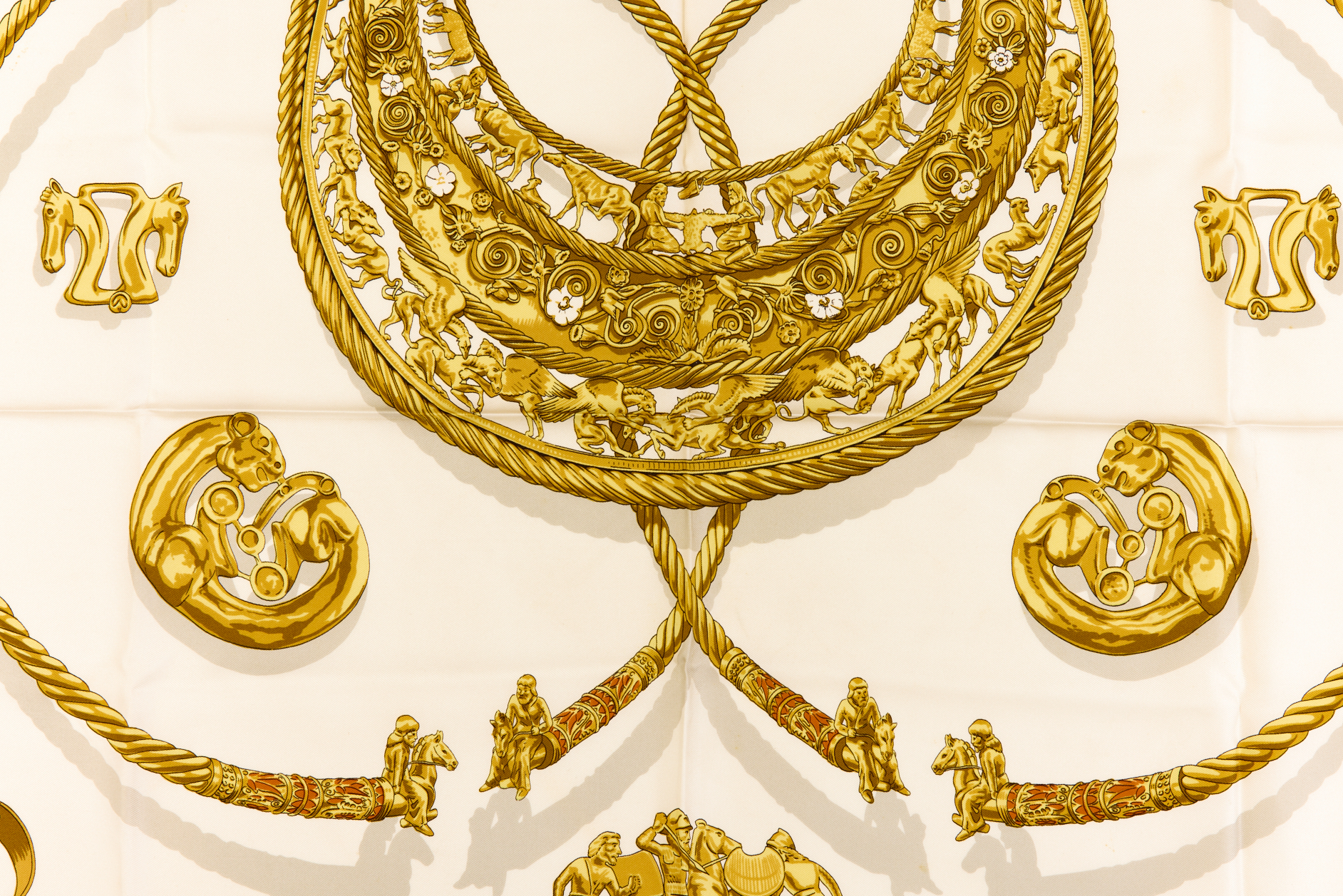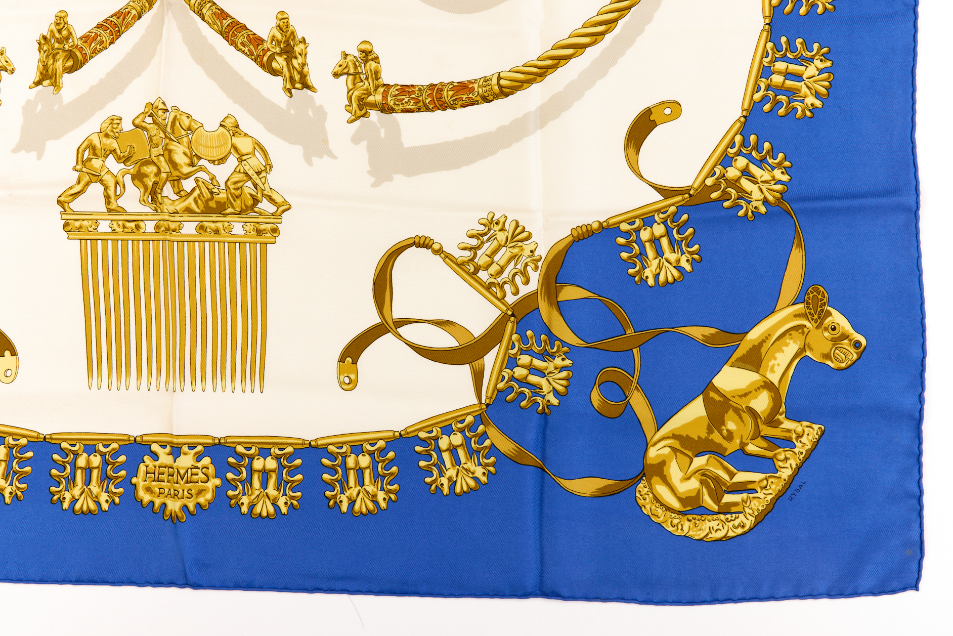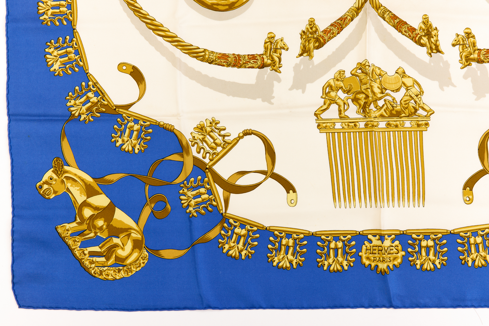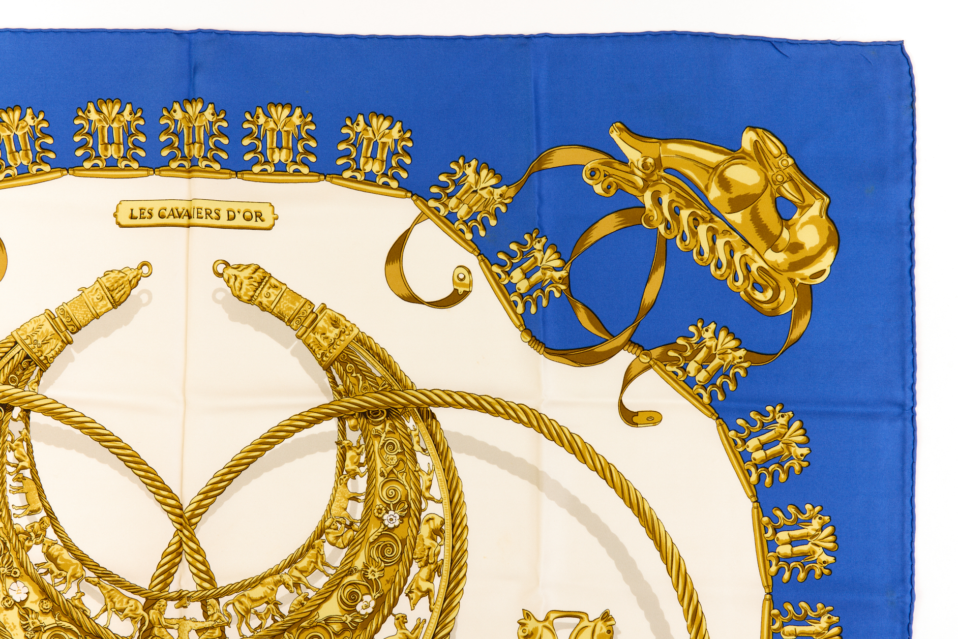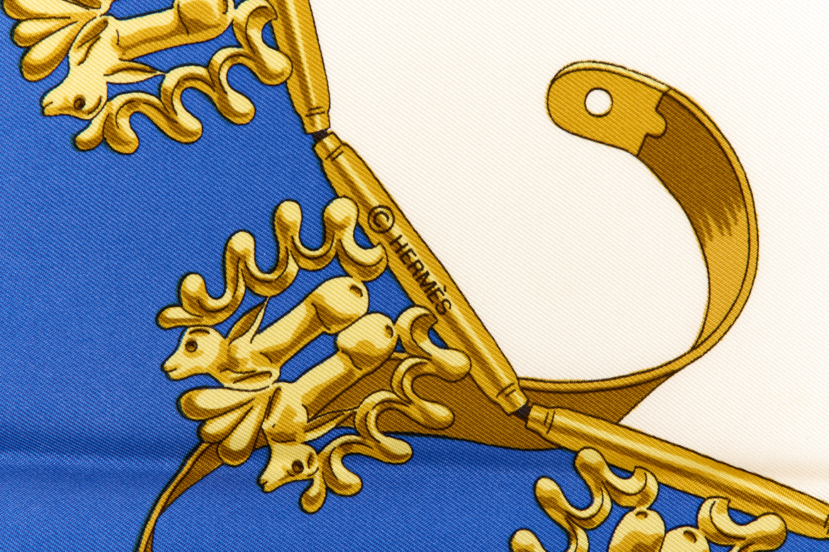 Hermes Silk Scarf Carre 90 “LES CAVALIERS DÕOR” Blue Silk Scarf