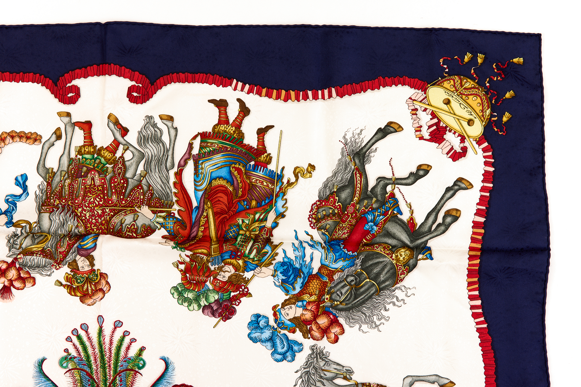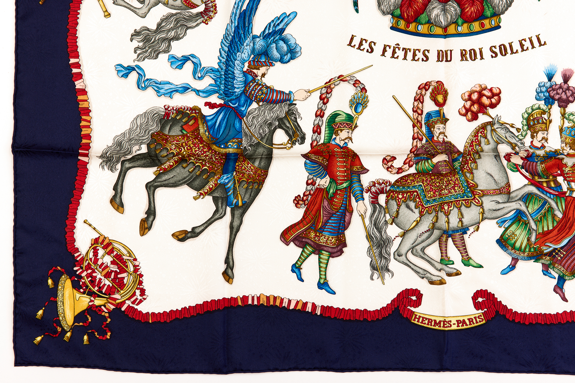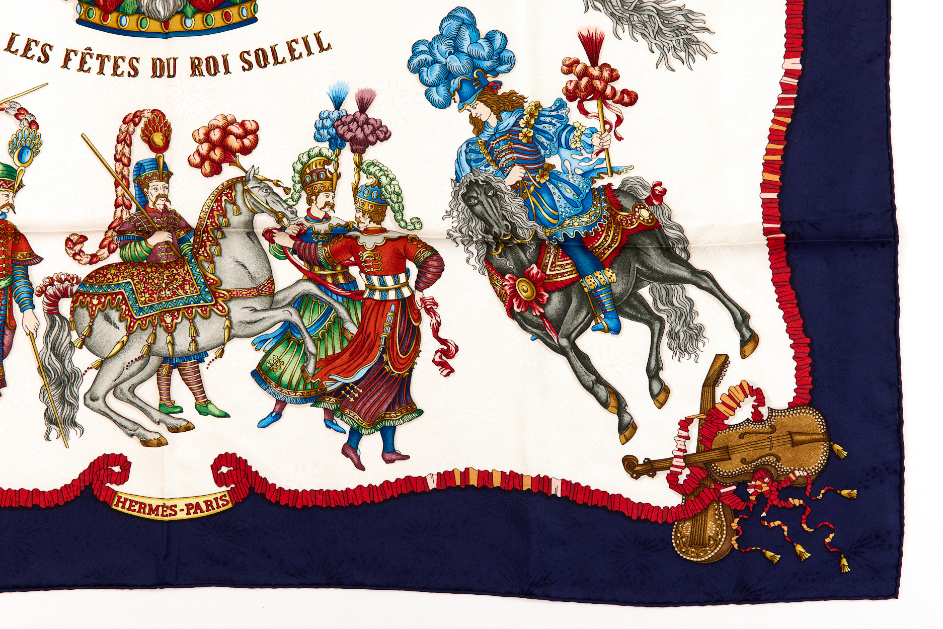 Hermes Silk Scarf Carre 90 “Les Fetes du Roi Soleil” Blue Silk Scarf
