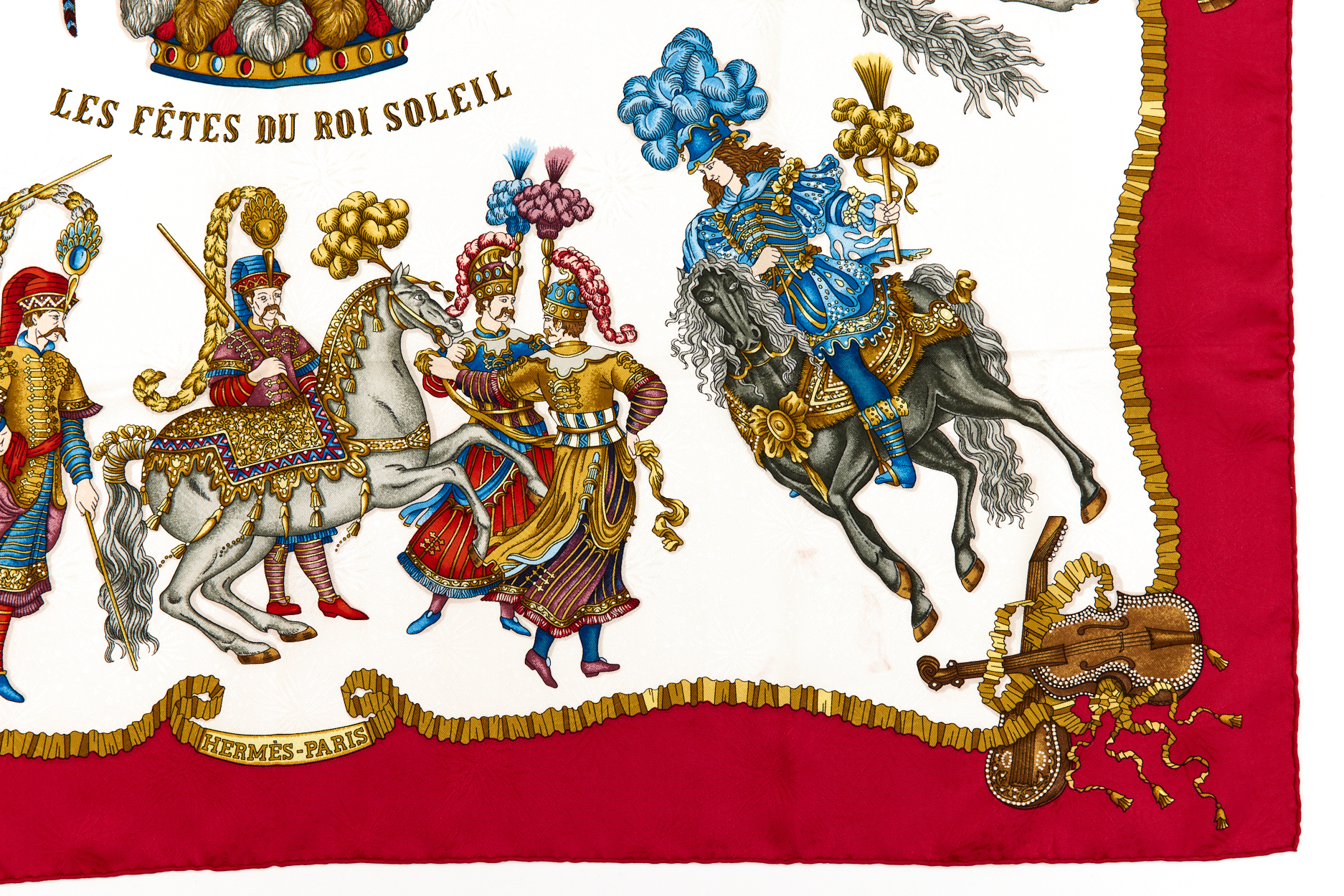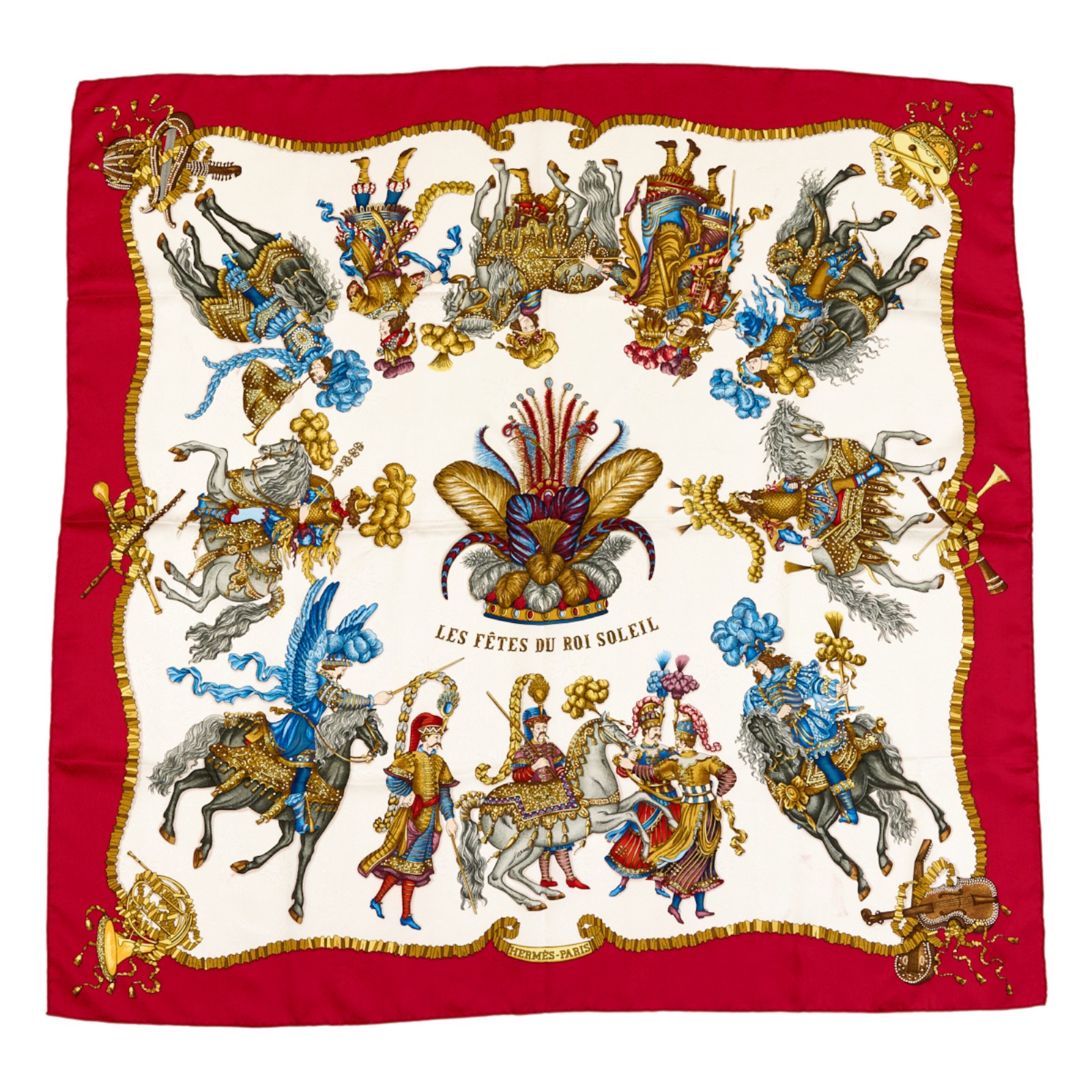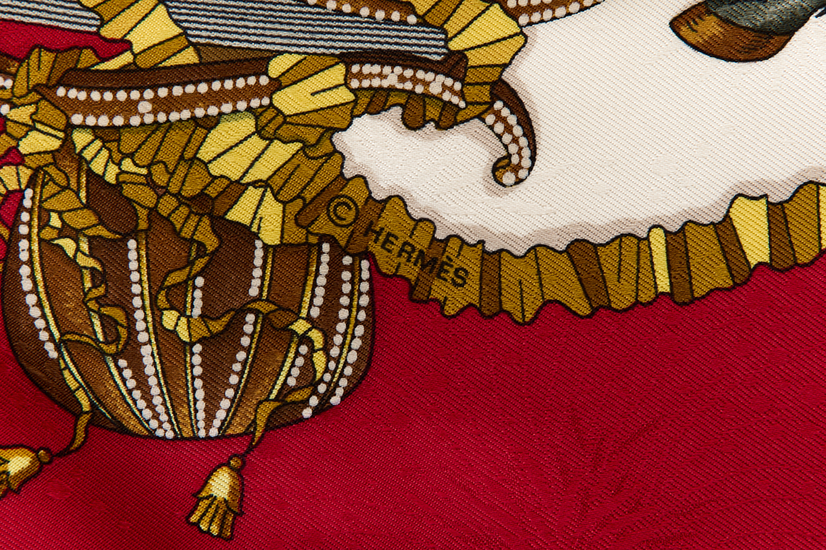 Hermes Silk Scarf Carre 90 “Les Fetes du Roi Soleil” Red Silk Scarf