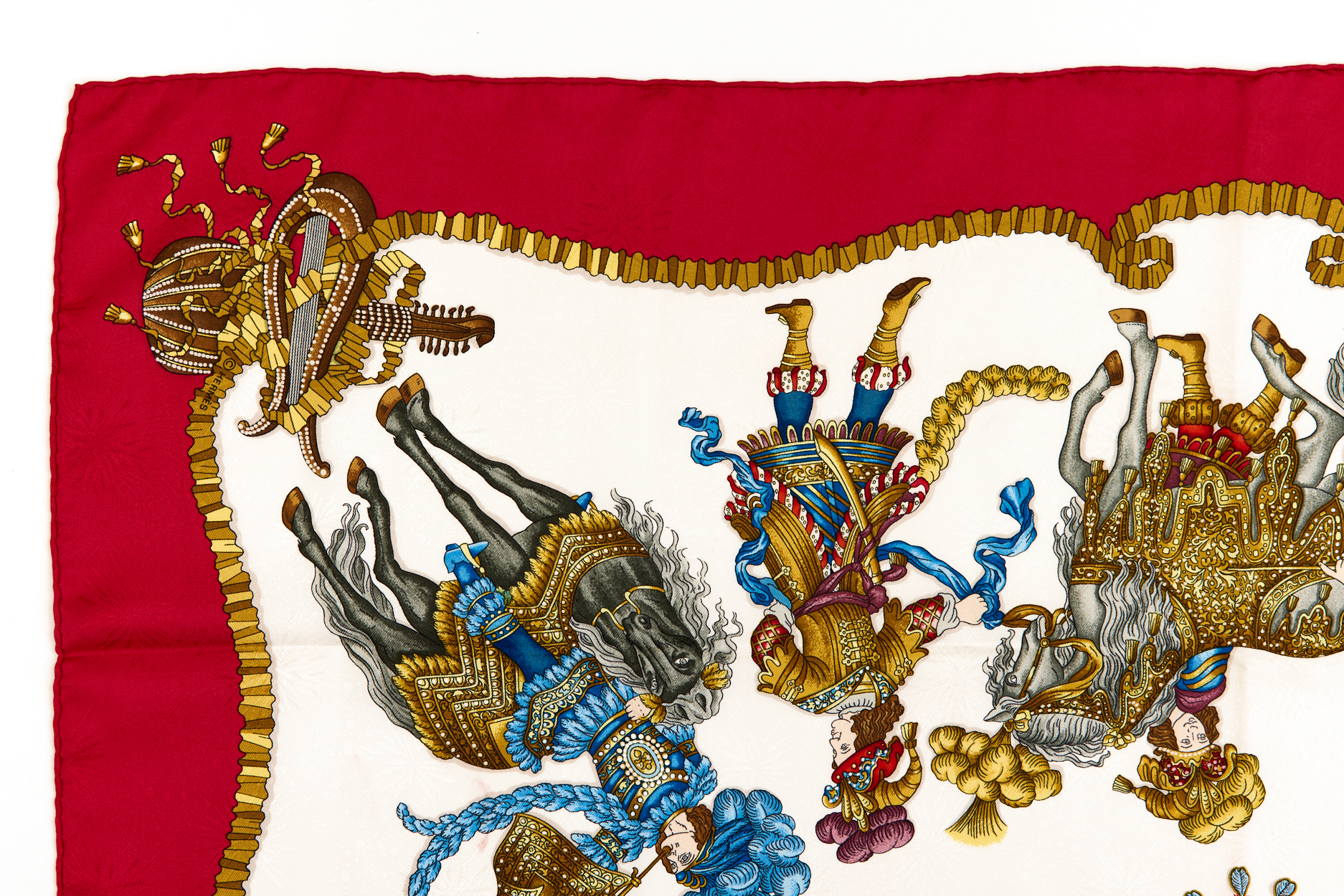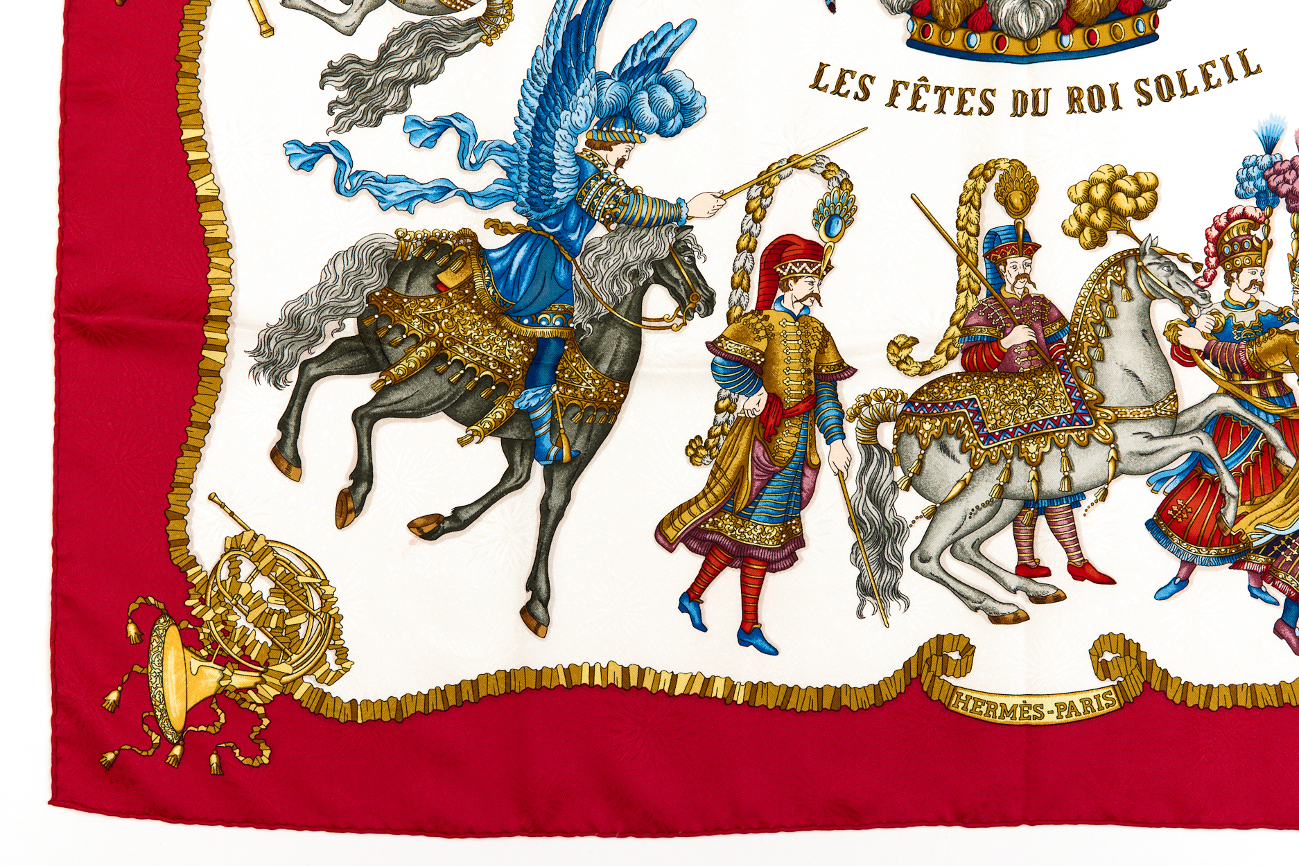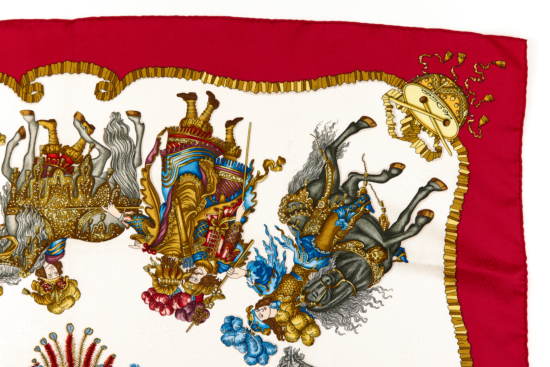 Hermes Silk Scarf Carre 90 “Les Fetes du Roi Soleil” Red Silk Scarf