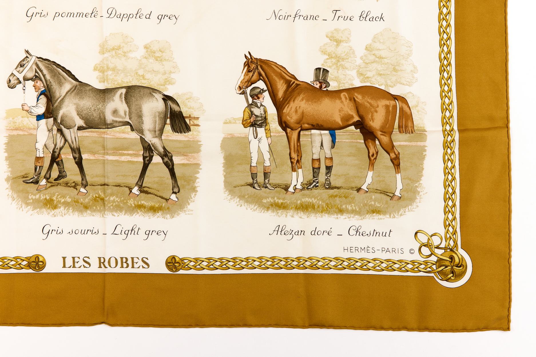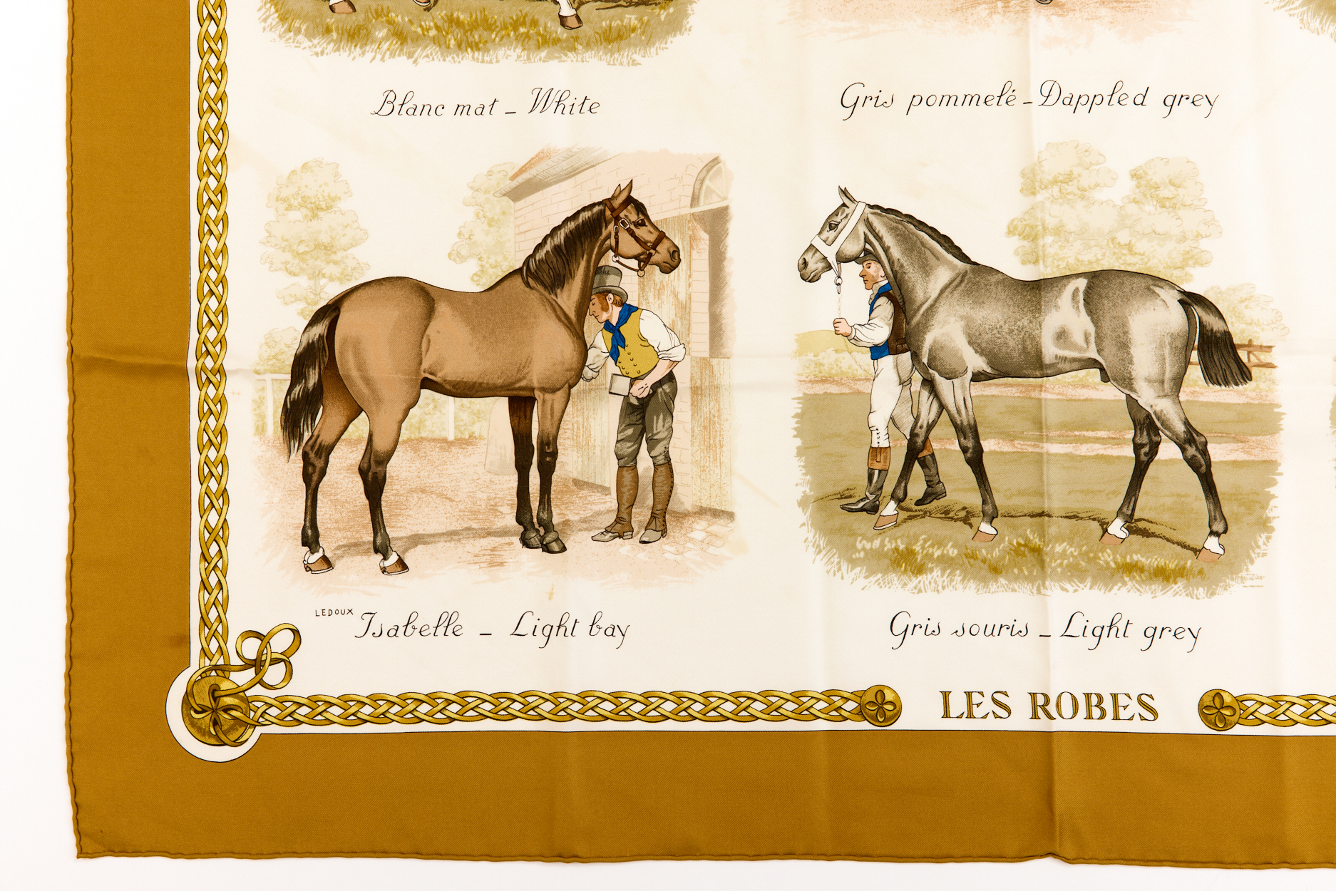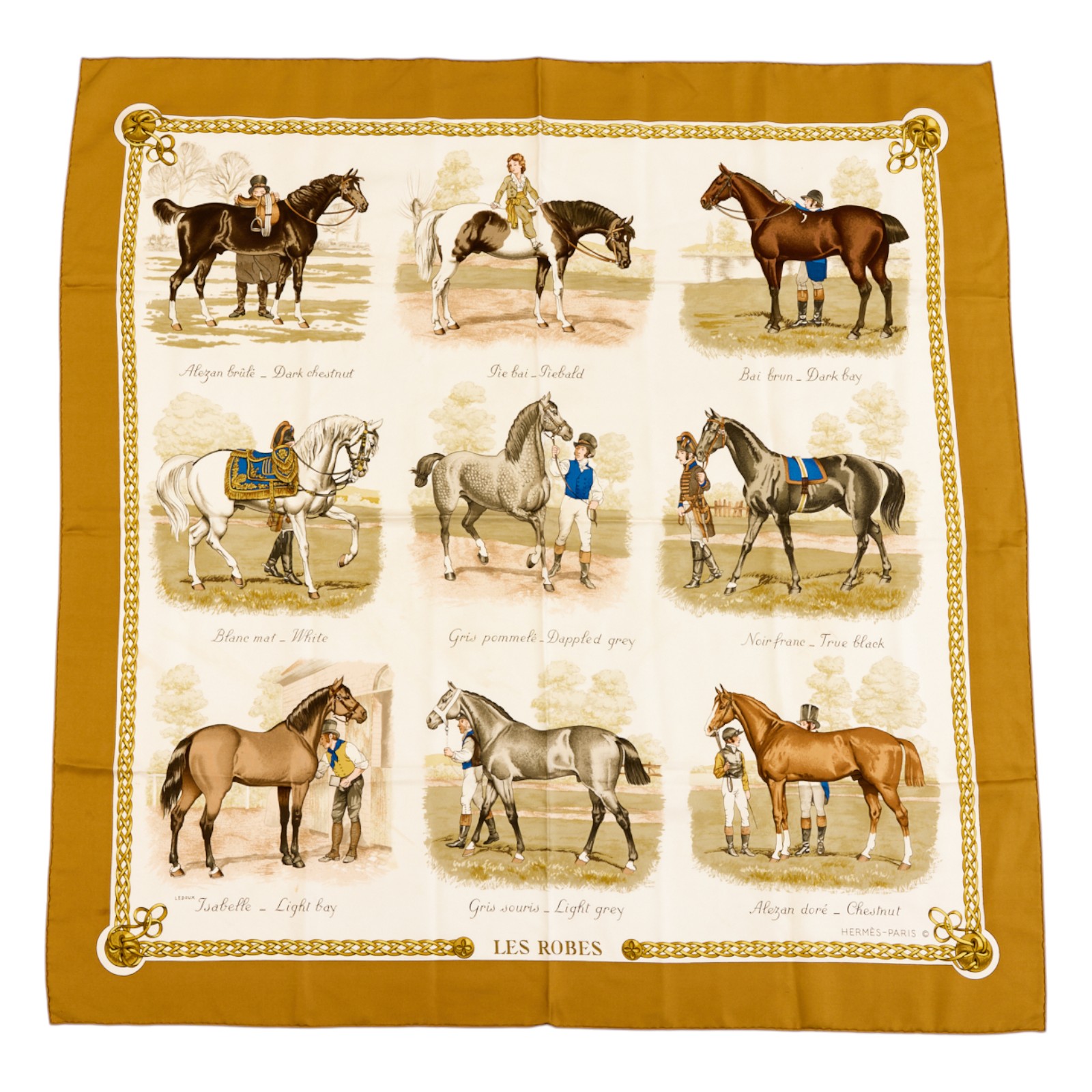 Hermes Silk Scarf Carre 90 “LES ROBES” Brown Silk Scarf Brand : HERMESDesign by Philipe LEDOUX Issued 1968Item : ScarfSize : 88.5cm * 88.5cmMaterial : 100% SilkCondition Score: B*For reference. The condition shown in the image takes precedence.*Please see the last two photos to see if the tag is still attached