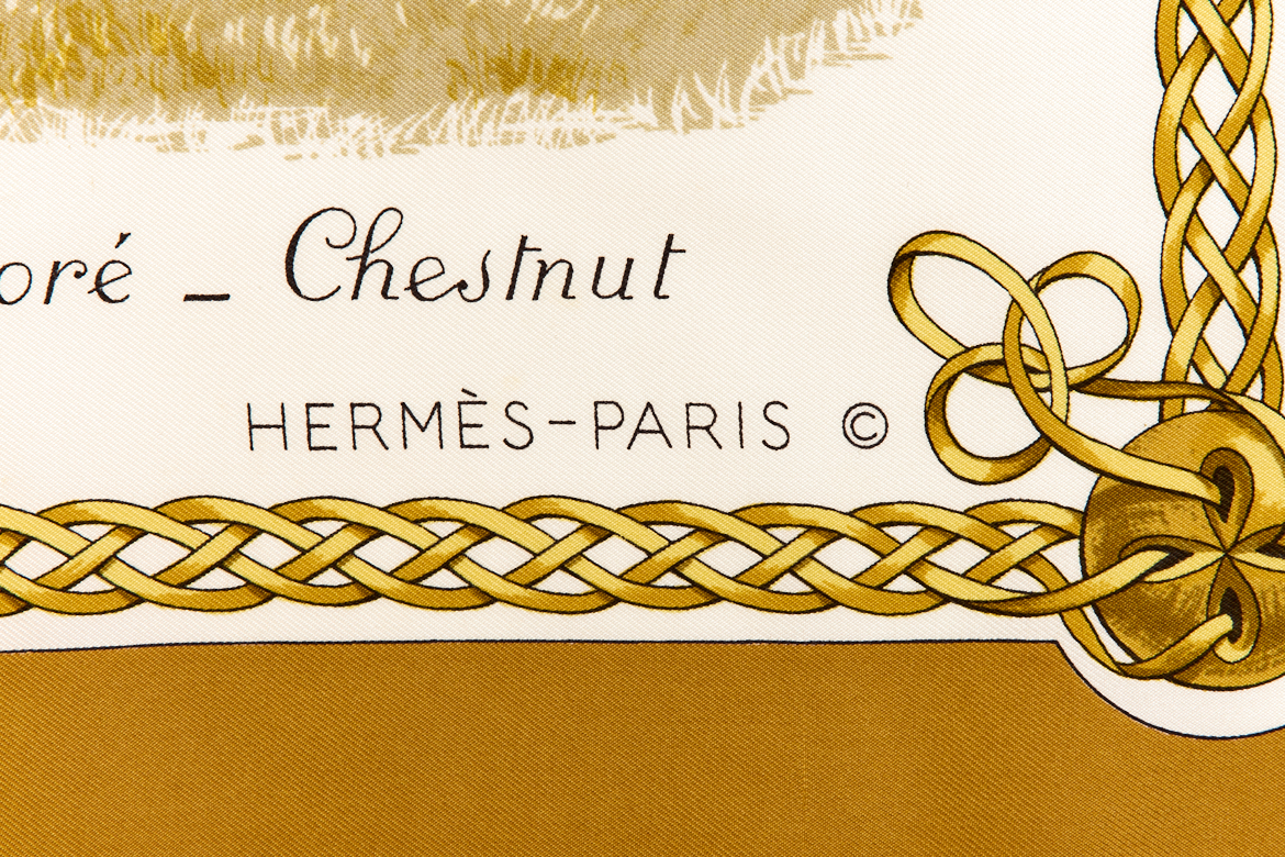 Hermes Silk Scarf Carre 90 “LES ROBES” Brown Silk Scarf