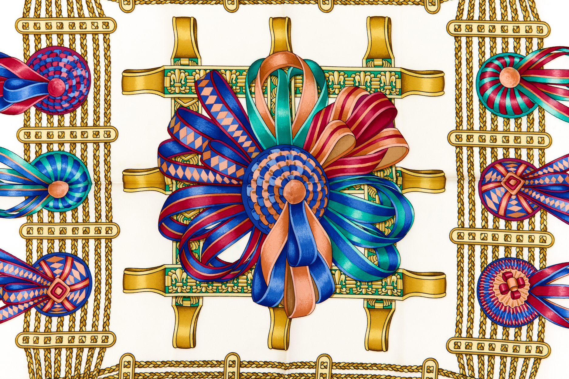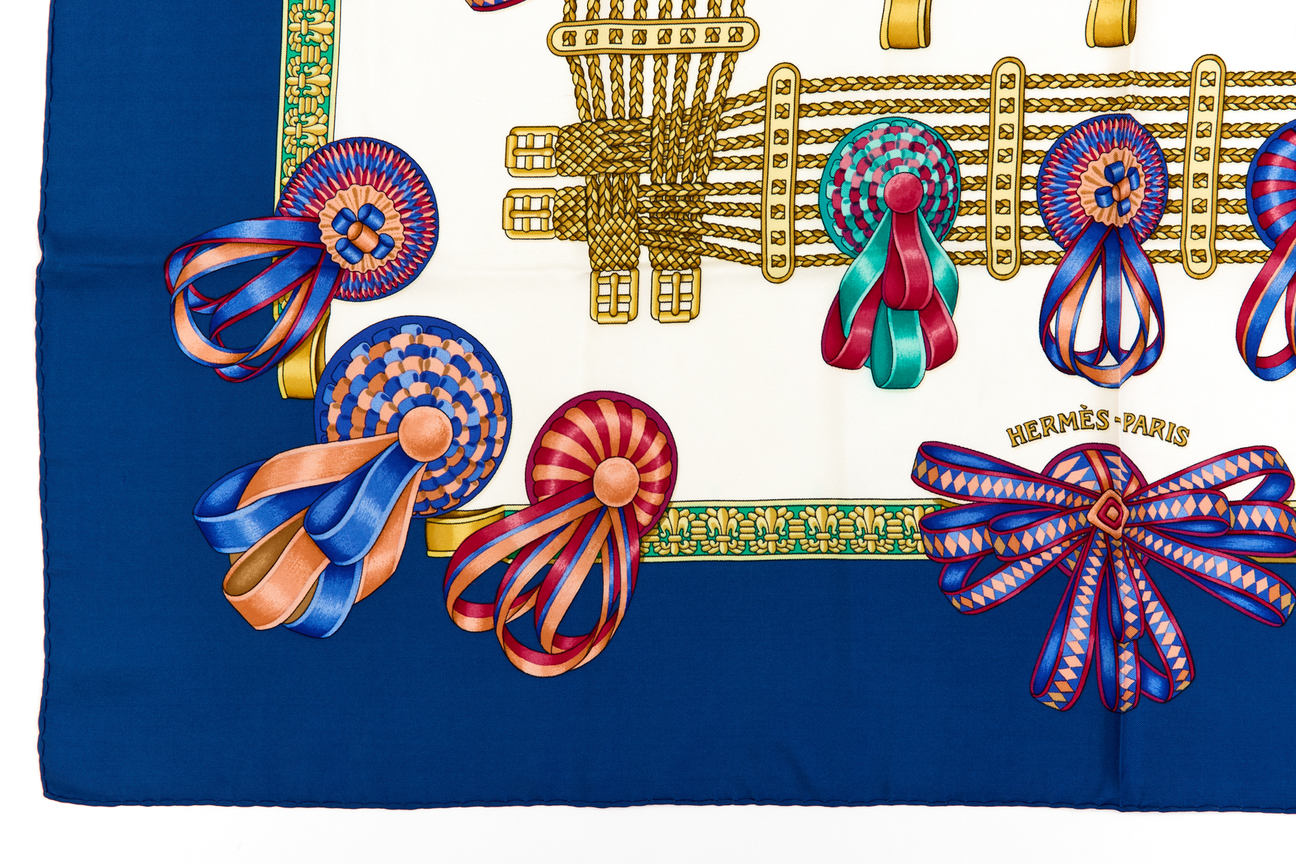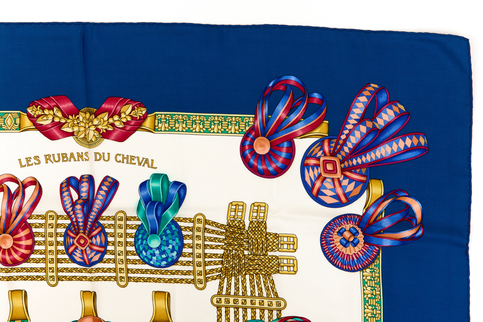 Hermes Silk Scarf Carre 90 “Les Rubans du Cheval” Blue Silk Scarf