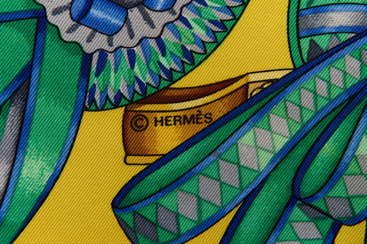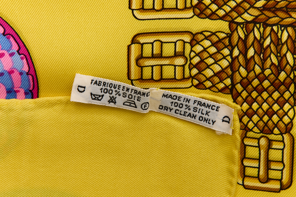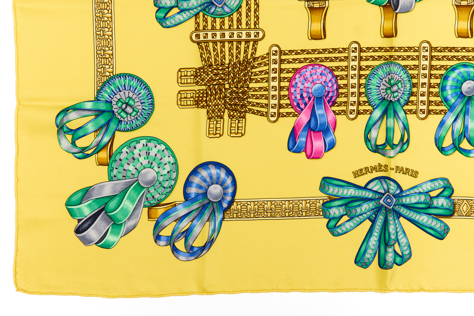 Hermes Silk Scarf Carre 90 “Les Rubans du Cheval” Yellow Silk Scarf