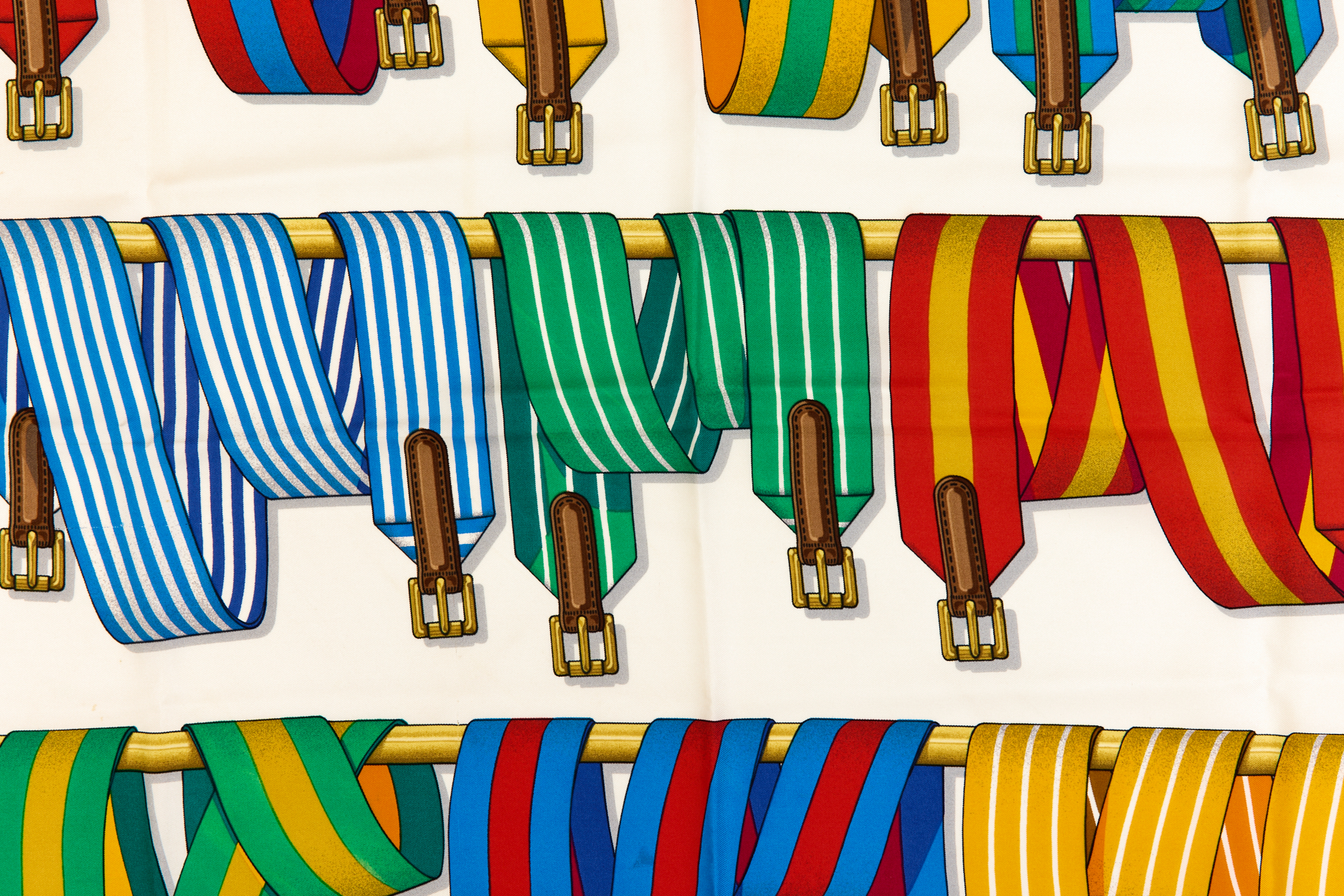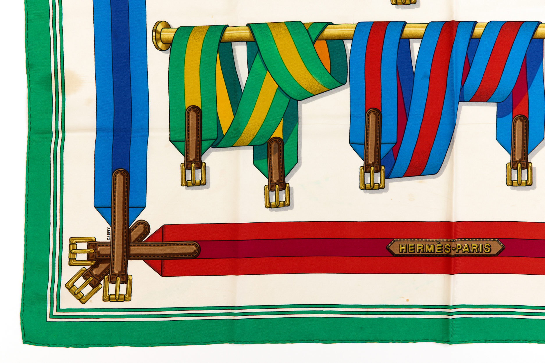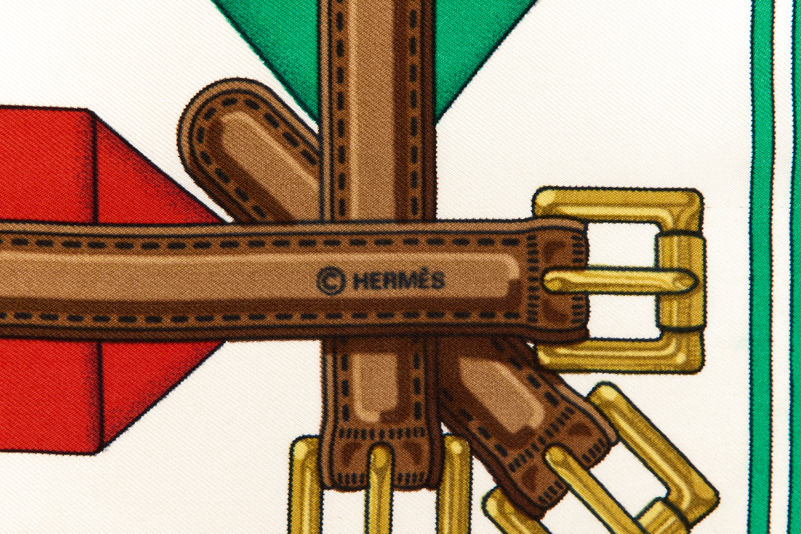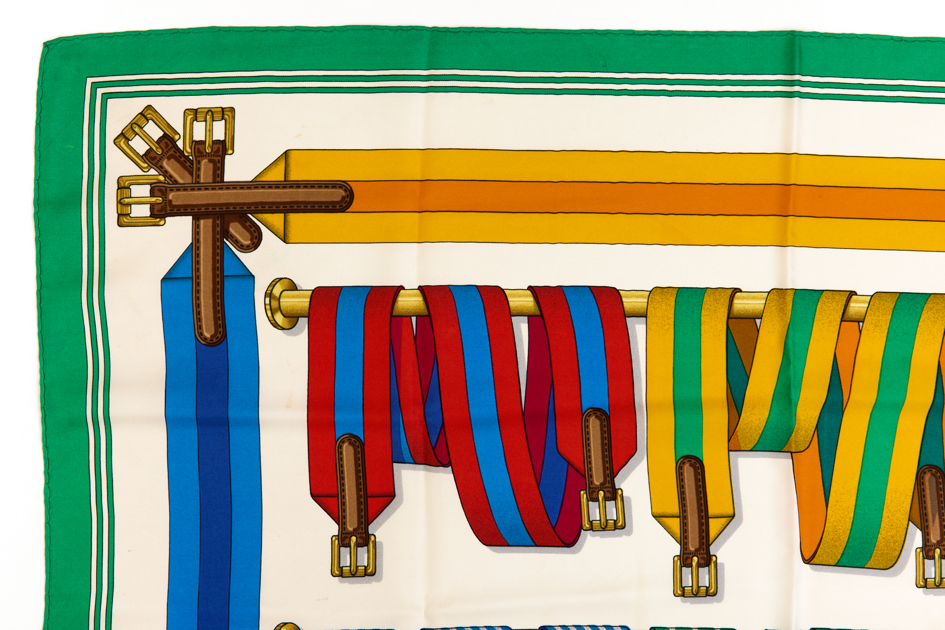 Hermes Silk Scarf Carre 90 “Les Sangles” Green Silk Scarf