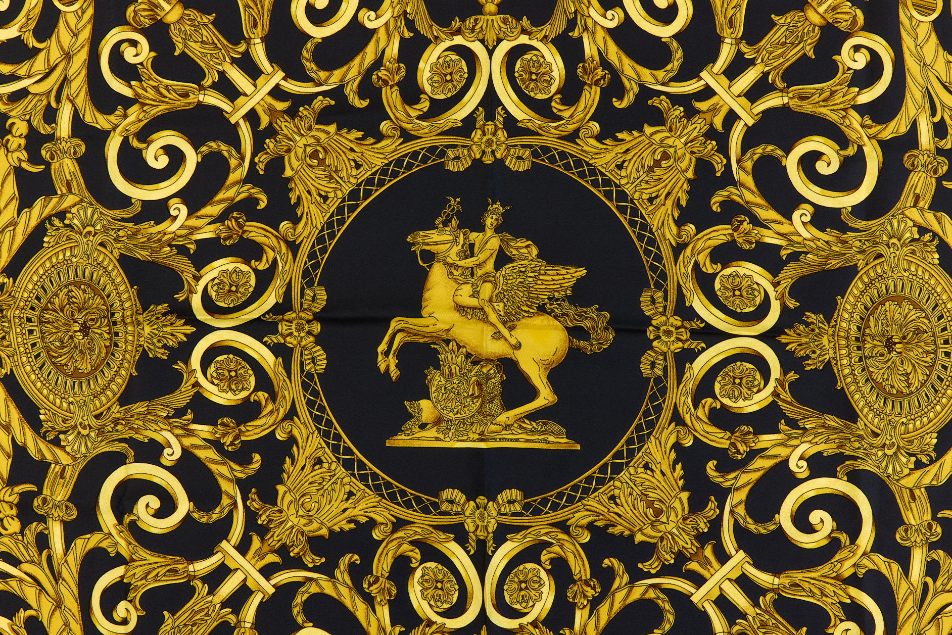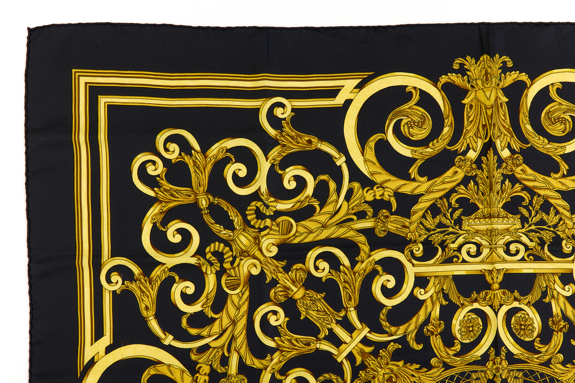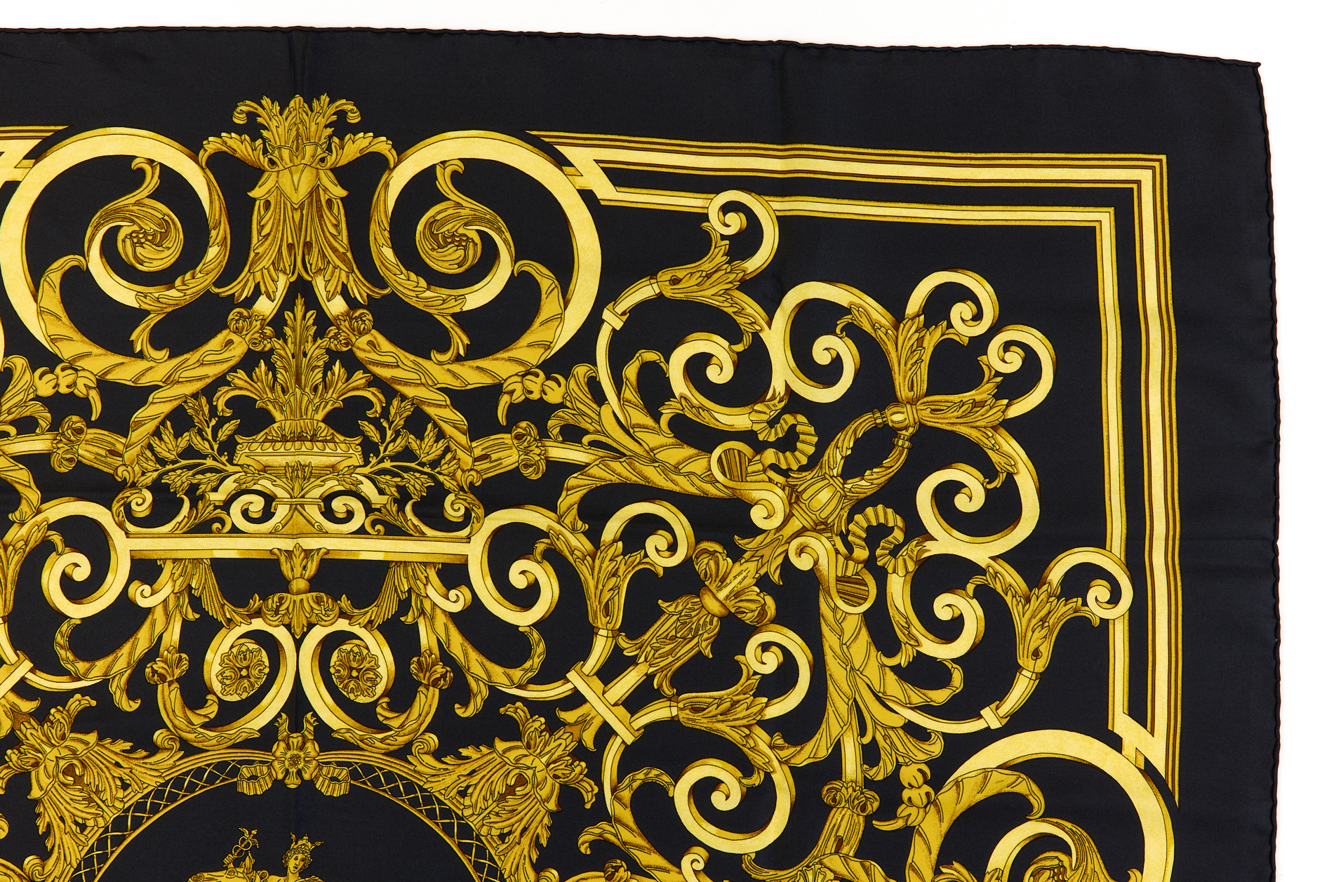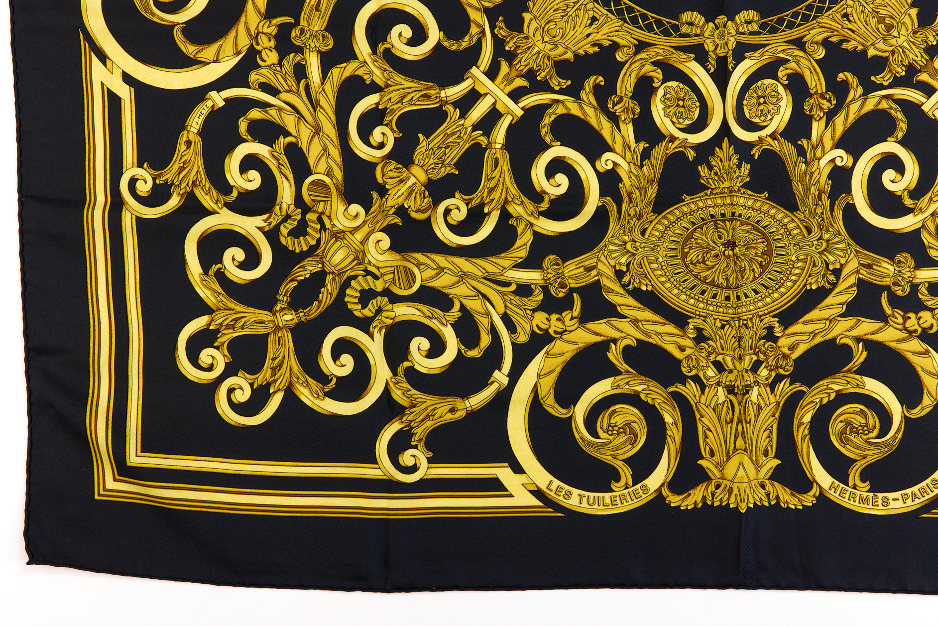 Hermes Silk Scarf Carre 90 “LES TUILERIES” Black Silk Scarf