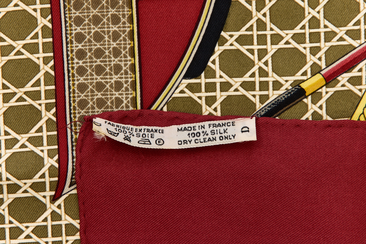 Hermes Silk Scarf Carre 90 “Les Voitures a Transformation” Red Silk Scarf Brand : HERMESDesign by Franoise de la Perriere Issued 1965Item : ScarfSize : 88.5cm * 88.5cmMaterial : 100% SilkCondition Score: B*For reference. The condition shown in the image takes precedence.*Please see the last two photos to see if the tag is still attached