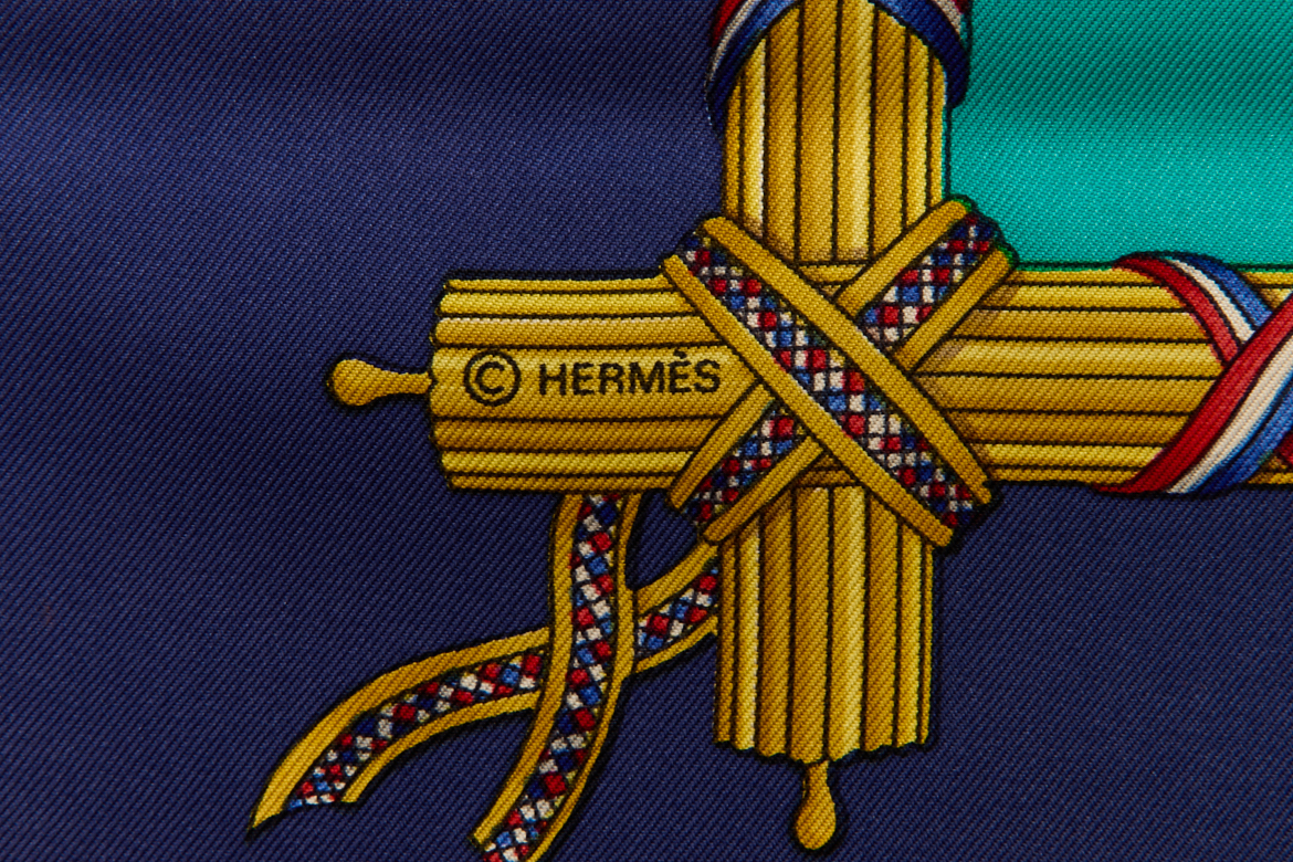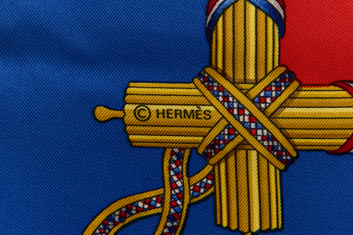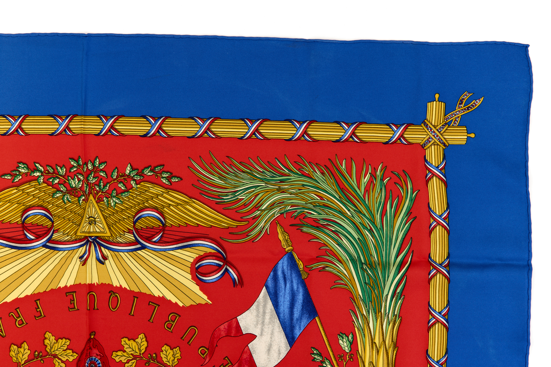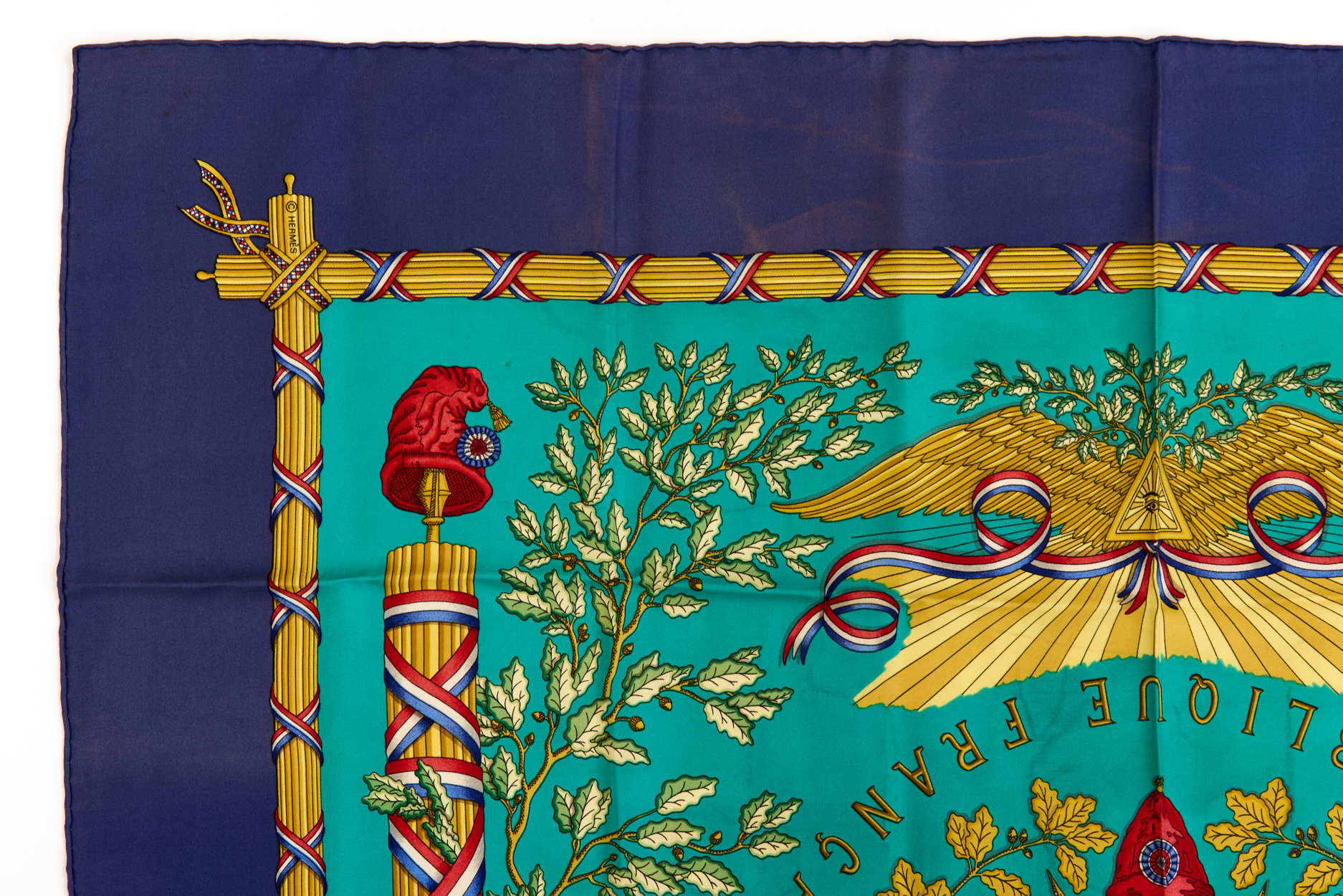 Hermes Silk Scarf Carre 90 “LIBERTE EGALITE FRATERNITE REPUBLIQUE FRANCAISE” Blue Silk Scarf