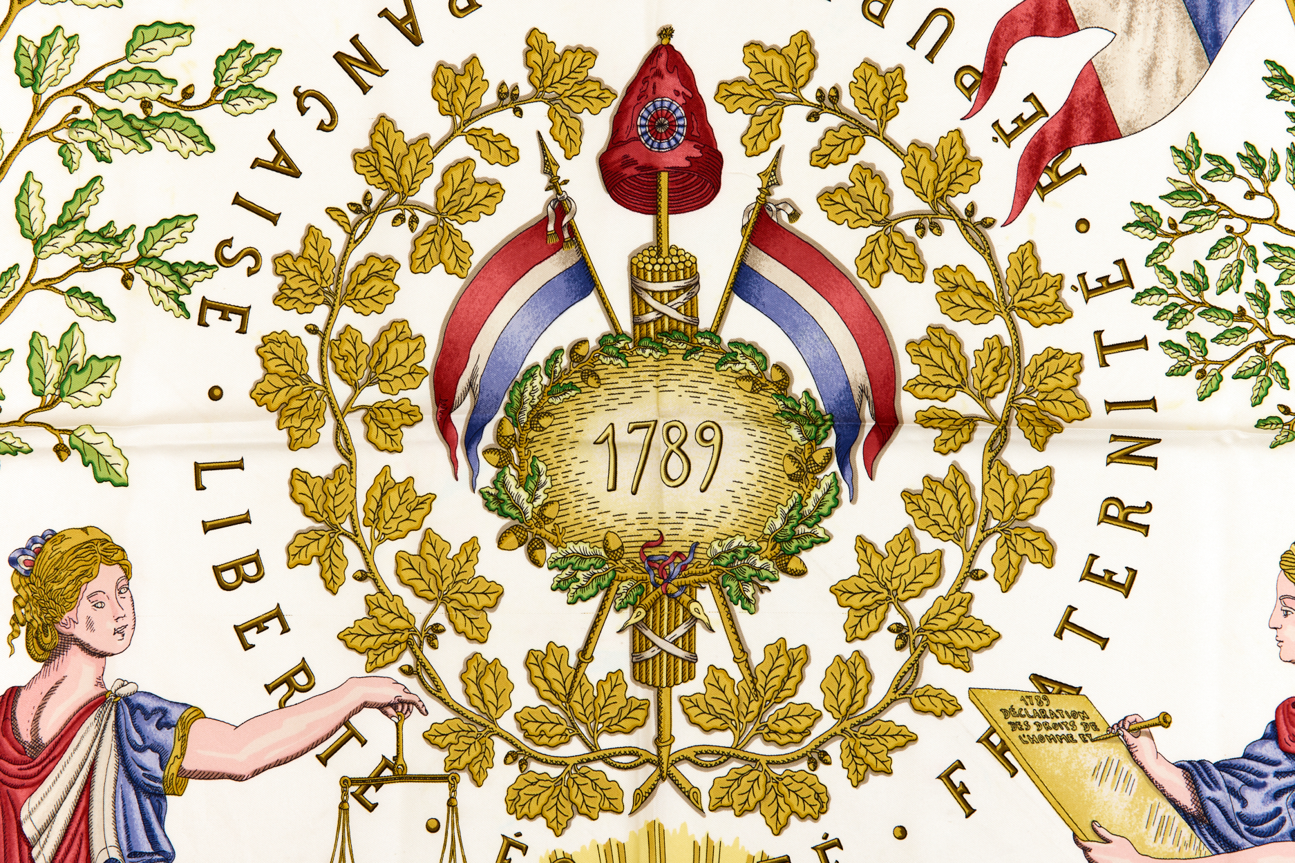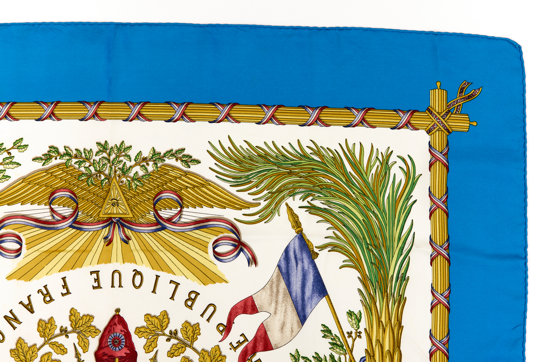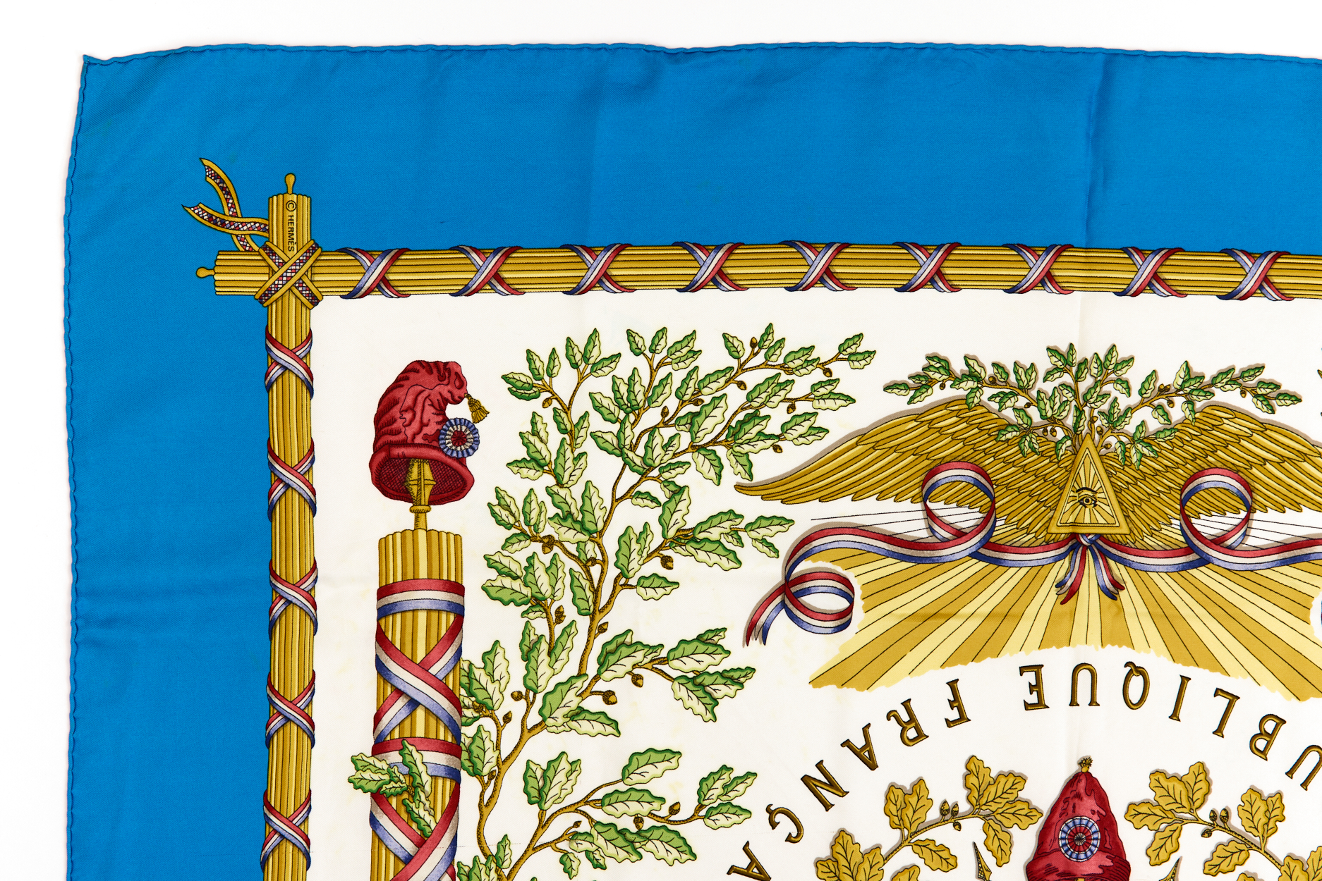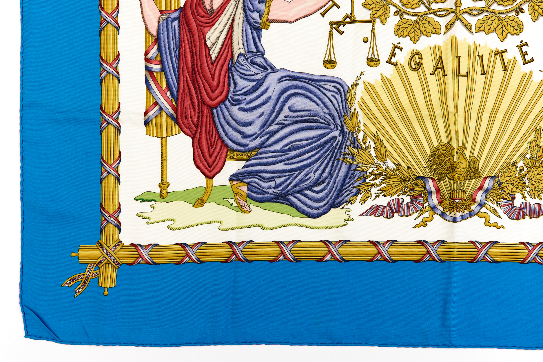 Hermes Silk Scarf Carre 90 “LIBERTE EGALITE FRATERNITE REPUBLIQUE FRANCAISE” Blue Silk Scarf