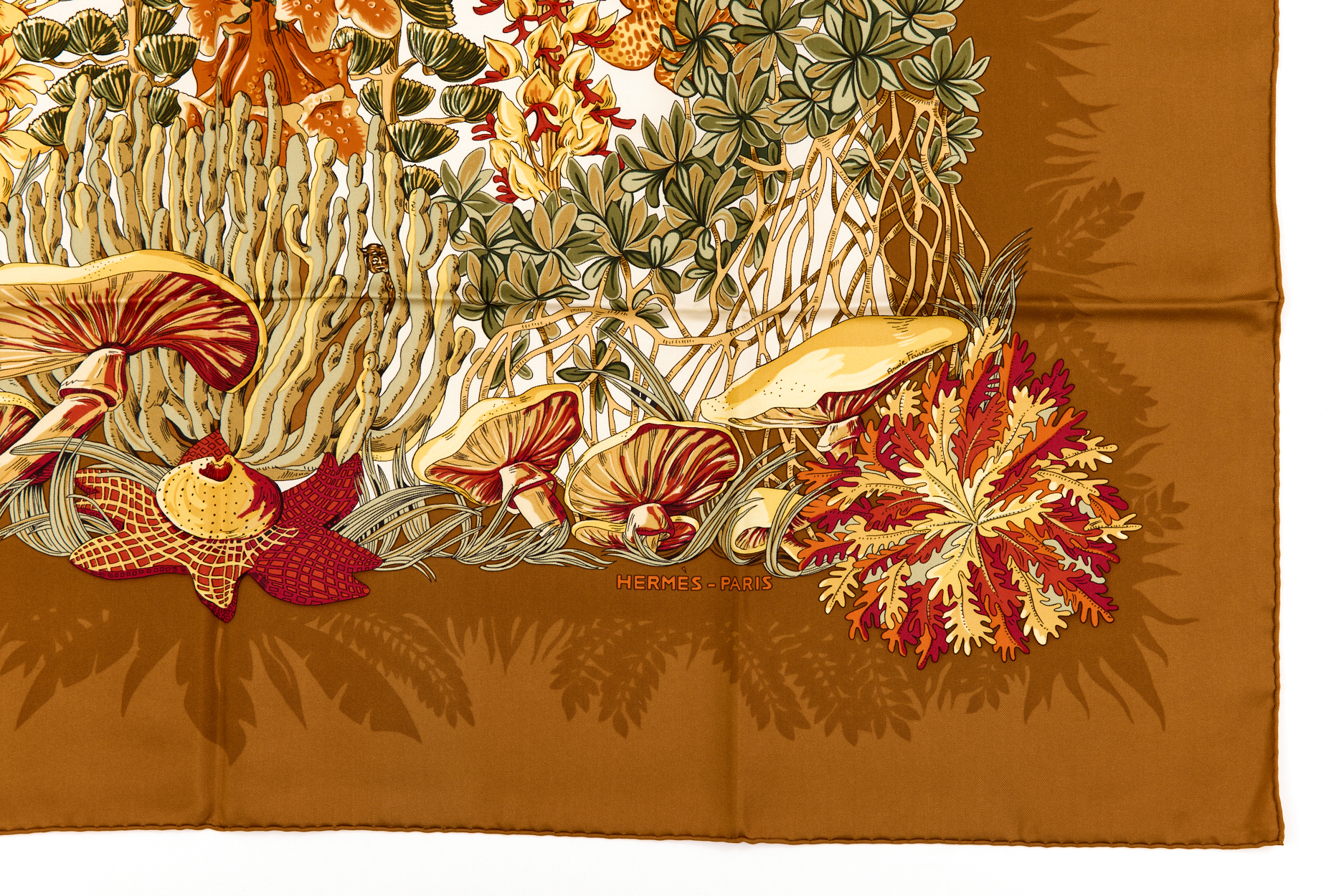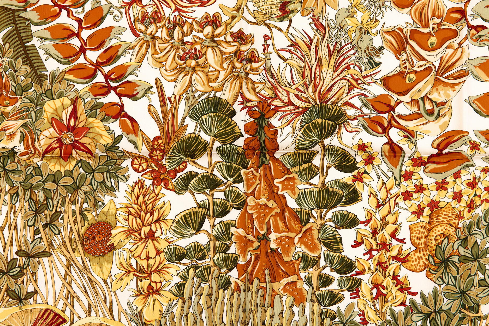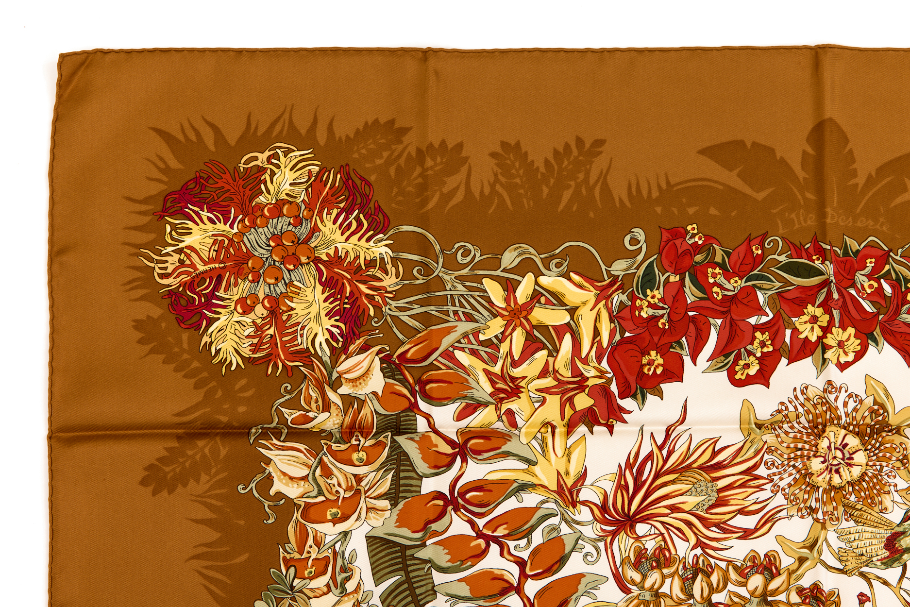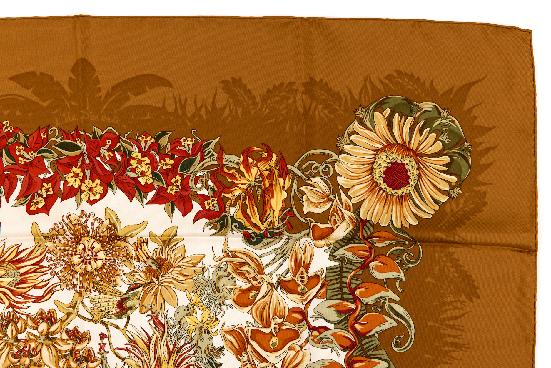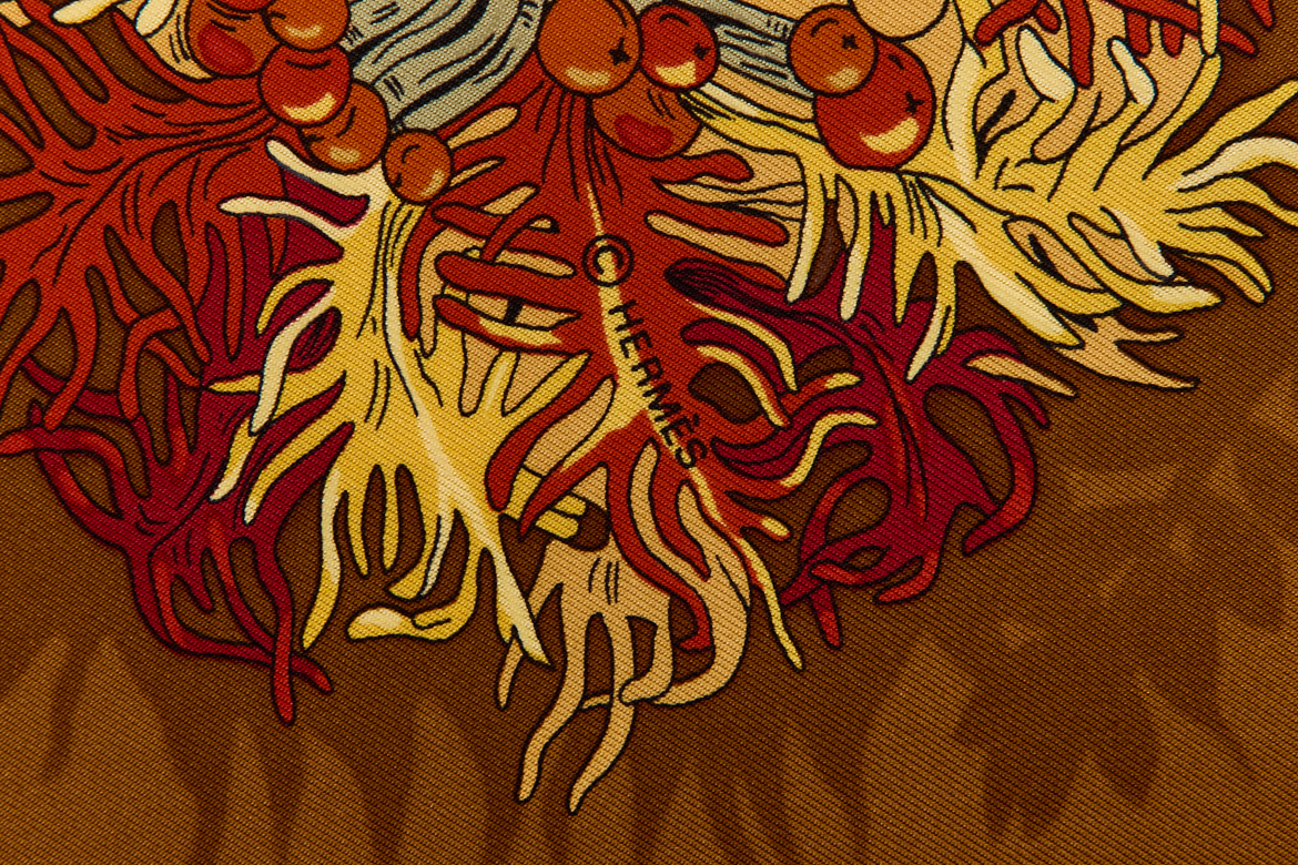 Hermes Silk Scarf Carre 90 “LÕIle Deserte” Beige Silk Scarf