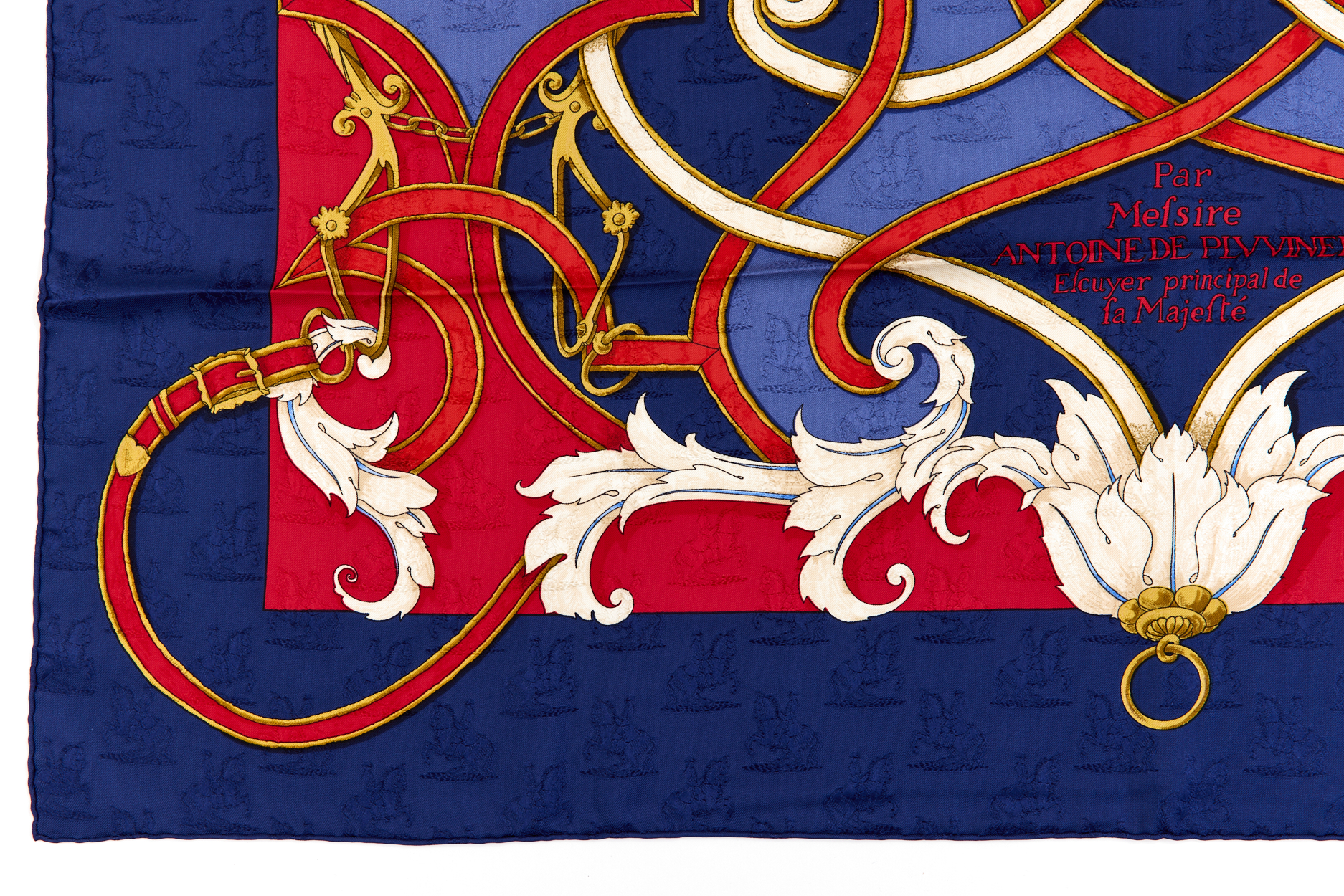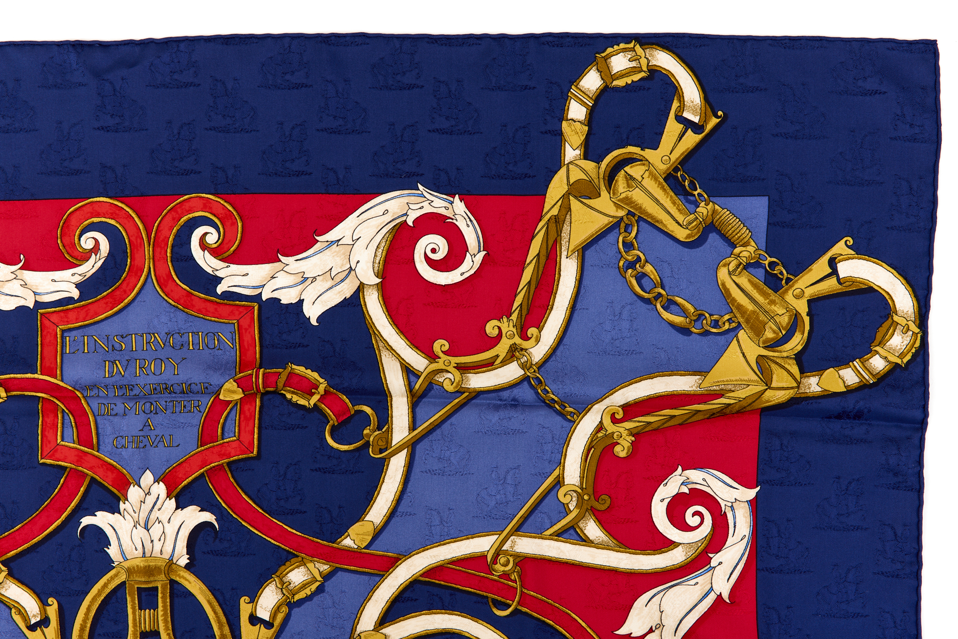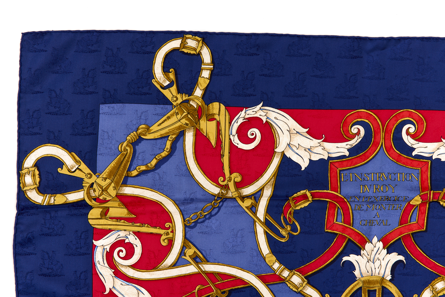 Hermes Silk Scarf Carre 90 “L’INSTRUCTION DU ROY” Blue Silk Scarf