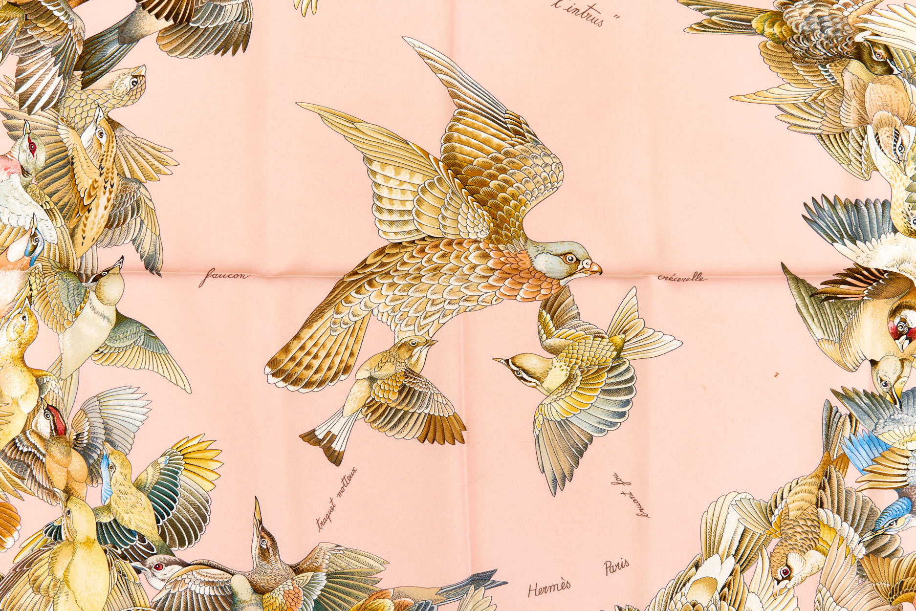 Hermes Silk Scarf Carre 90 “L’INTRUS” PInk Silk Scarf