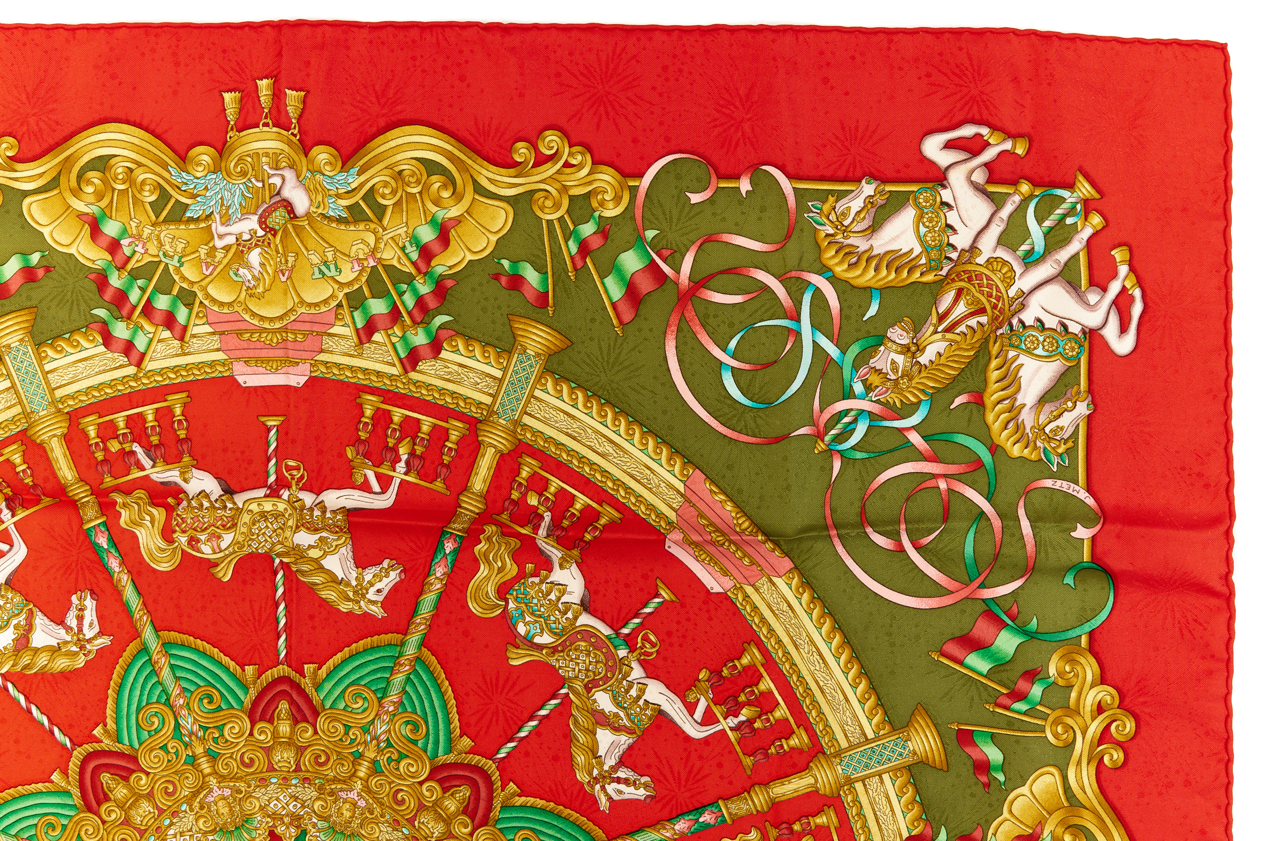 Hermes Silk Scarf Carre 90 “LUNA PARK” Red Silk Scarf Brand : HERMESDesign by Joachim Metz Issued 1993Item : ScarfSize : 90cm * 90cmMaterial : 100% SilkCondition Score: A-B+