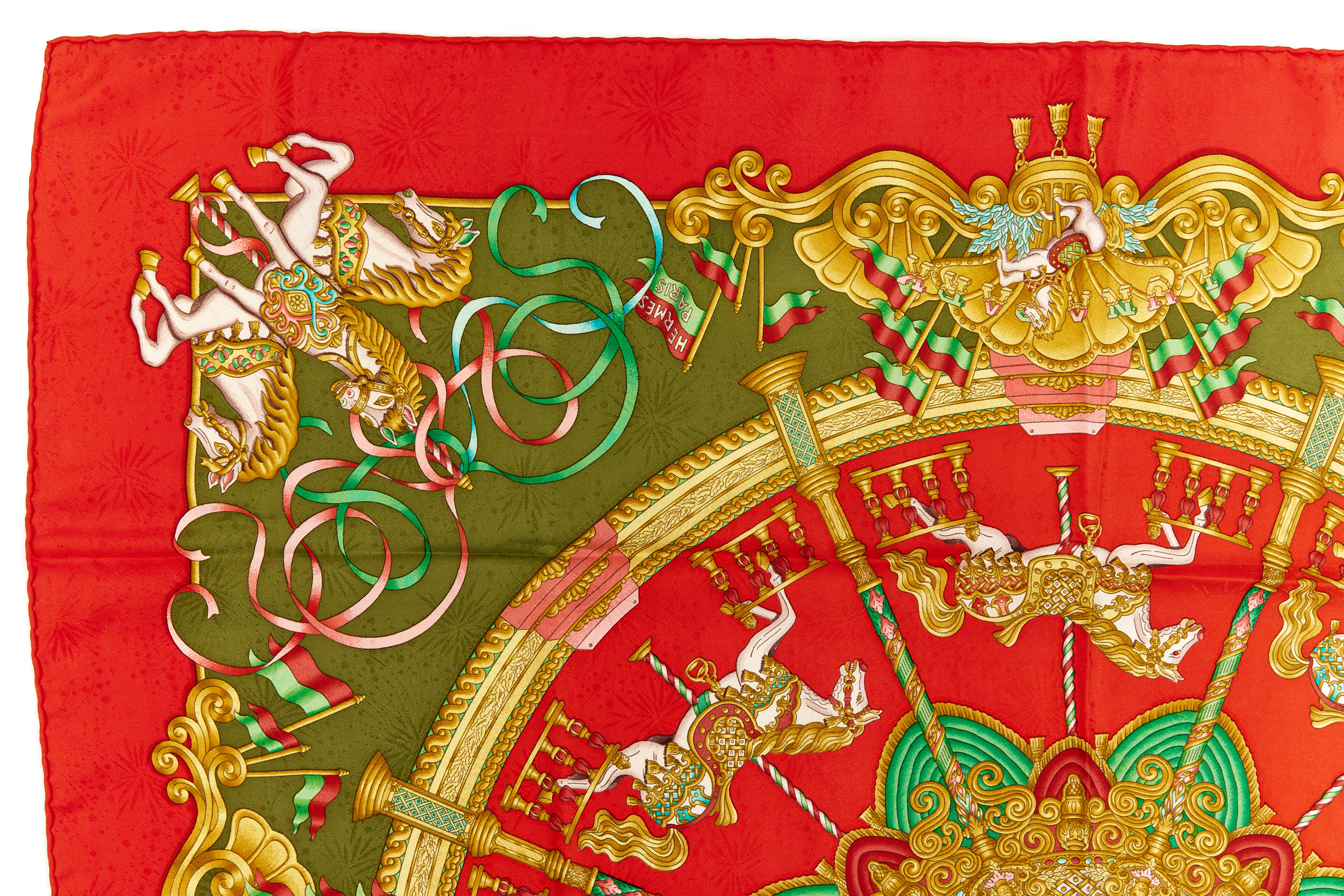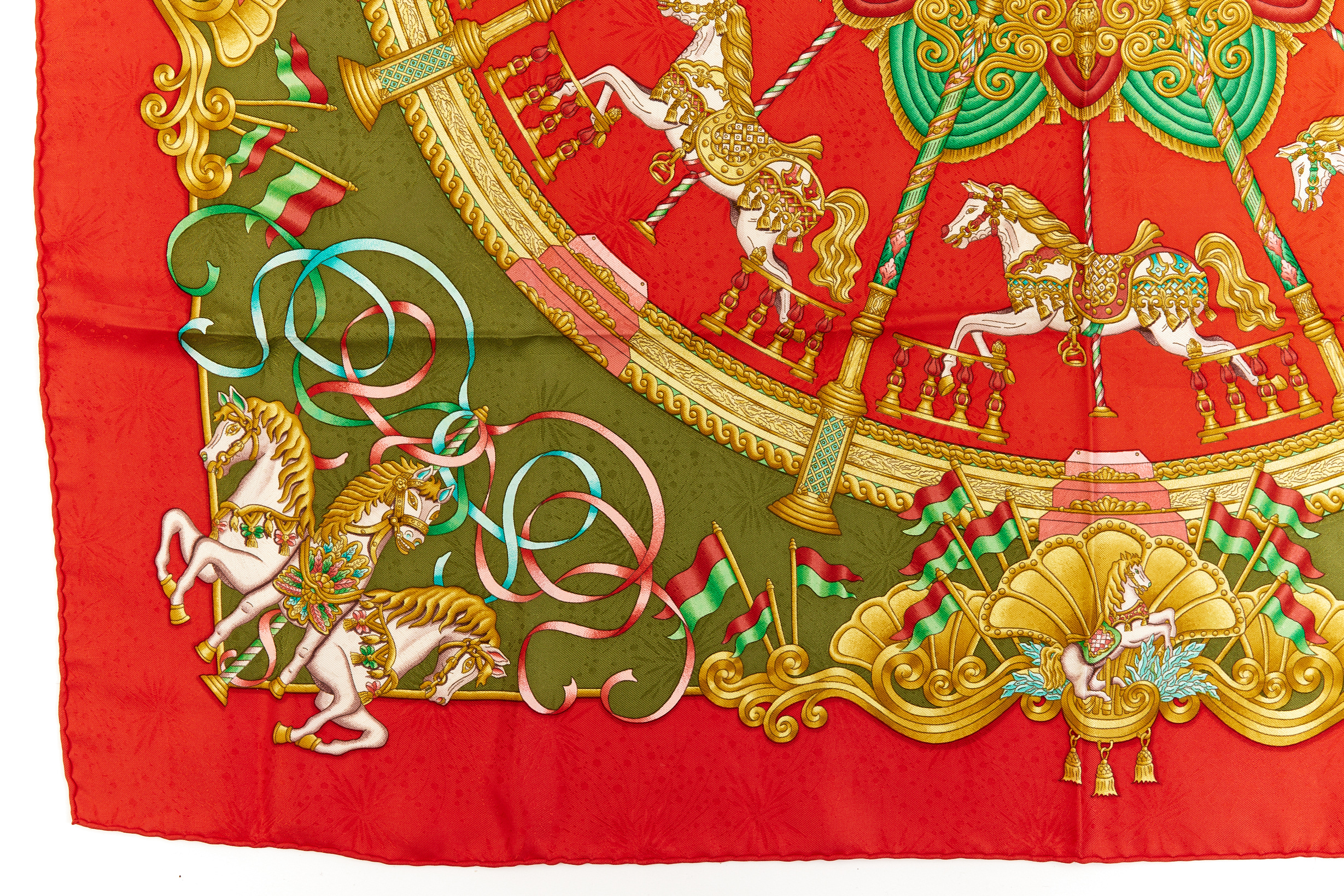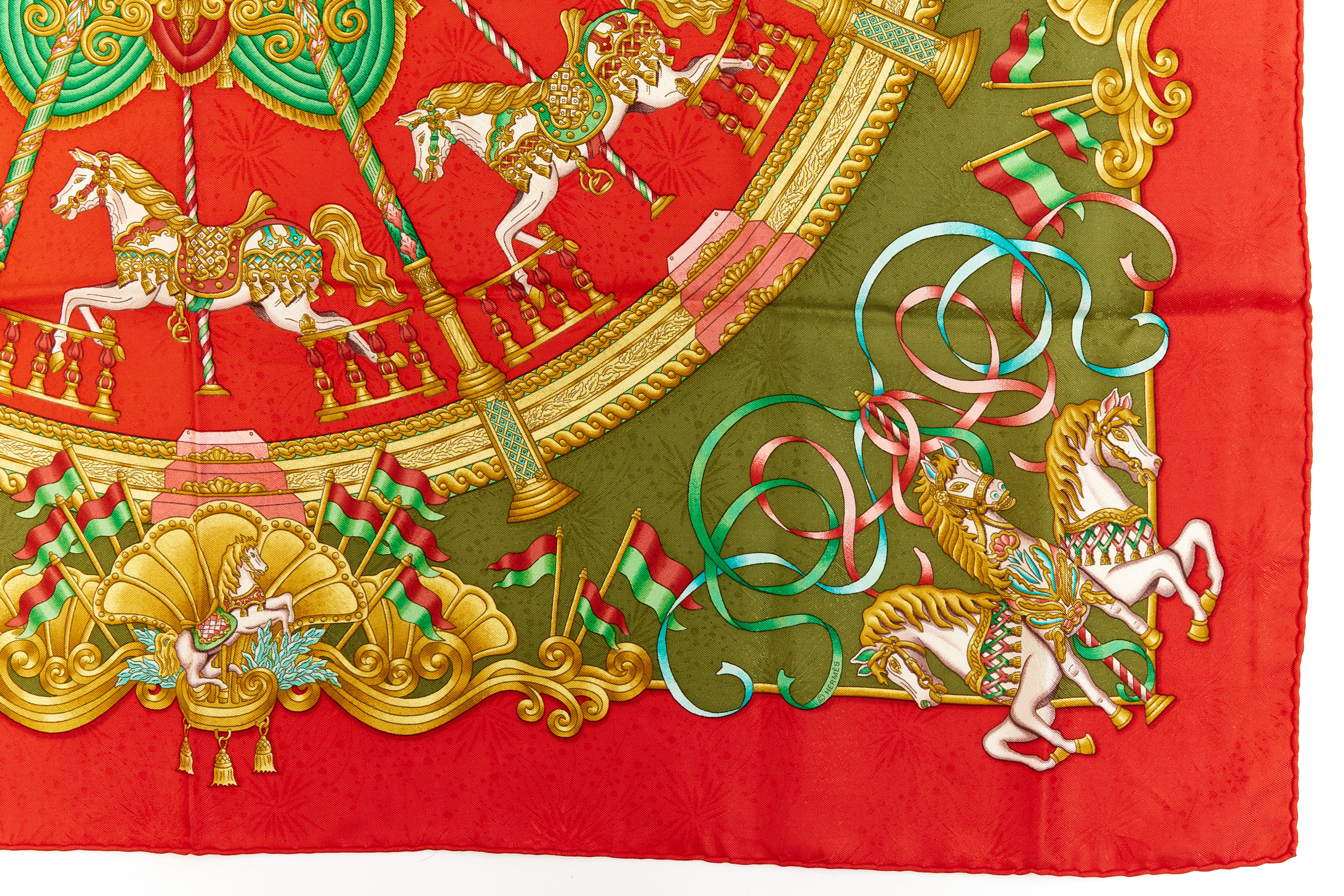 Hermes Silk Scarf Carre 90 “LUNA PARK” Red Silk Scarf