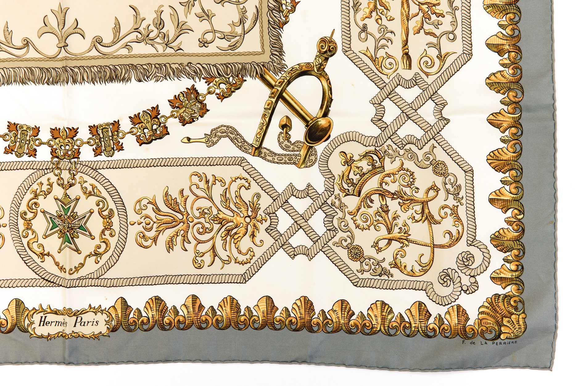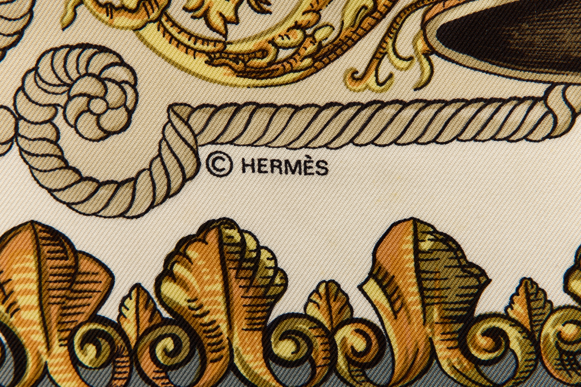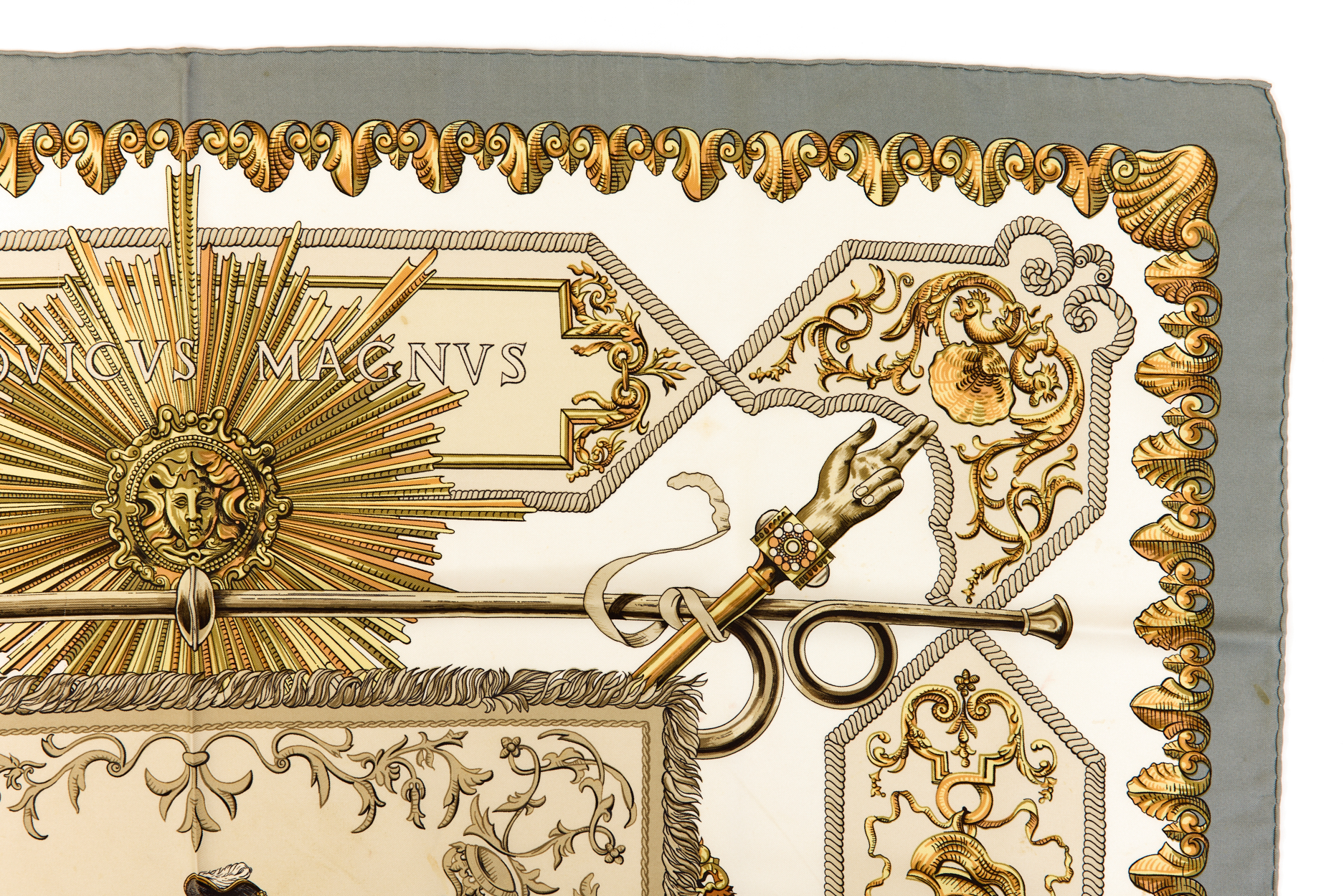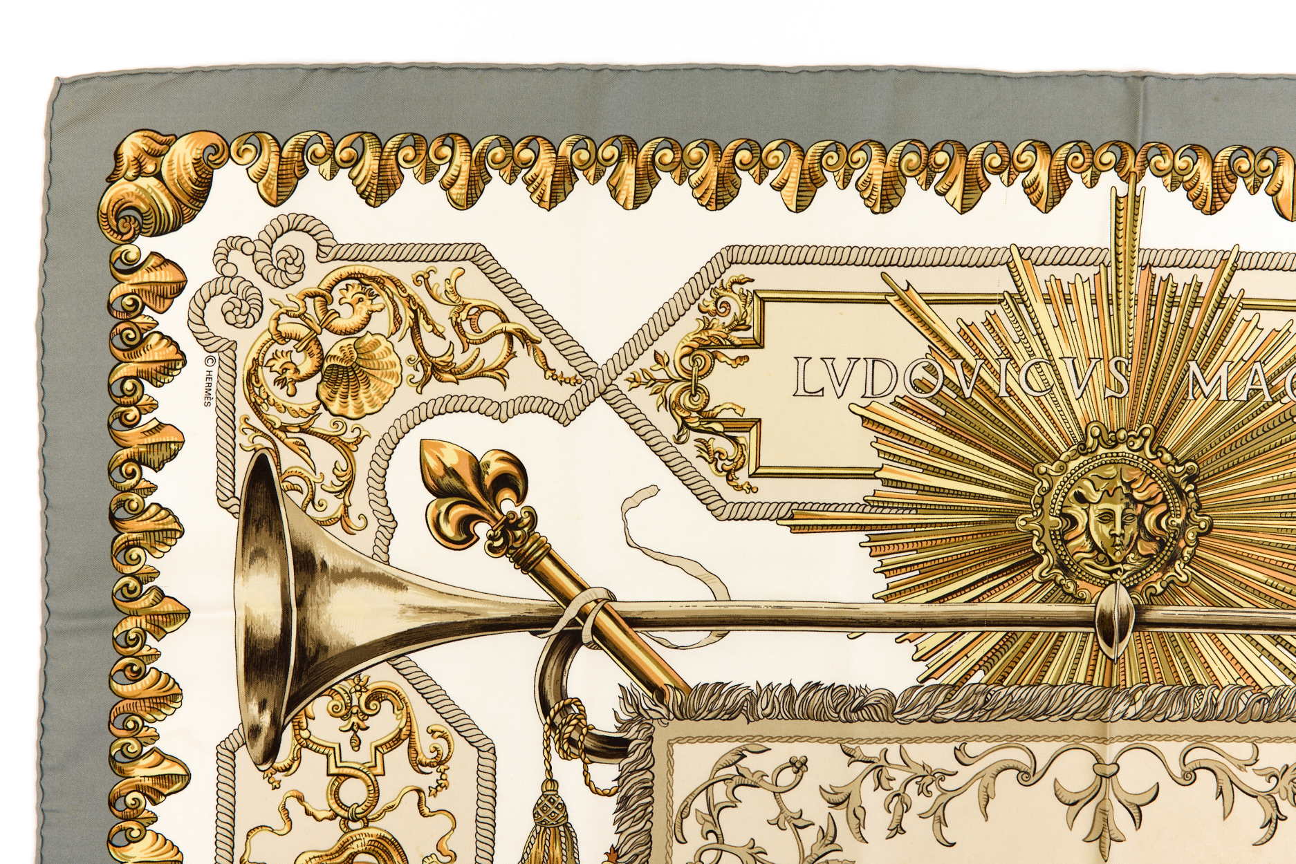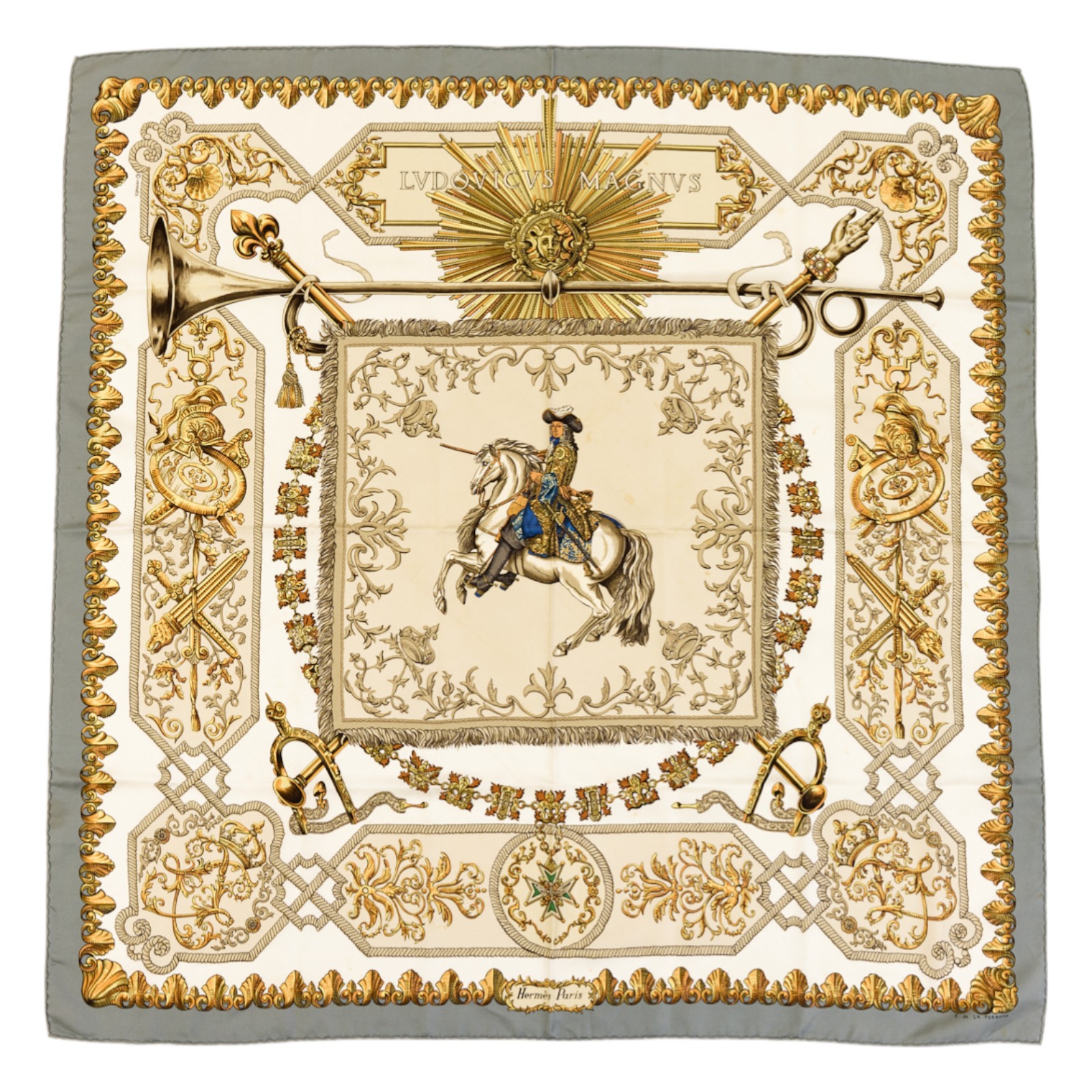 Hermes Silk Scarf Carre 90 “LVDOVICVS MAGNVS” Grey Silk Scarf