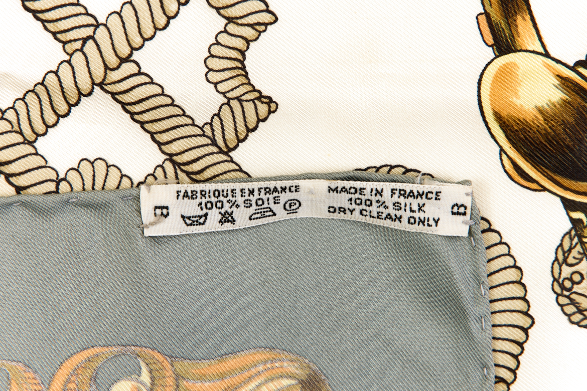 Hermes Silk Scarf Carre 90 “LVDOVICVS MAGNVS” Grey Silk Scarf Brand : HERMESDesign by Francoise de la Perriere Issued 1963Item : ScarfSize : 88.5cm * 88.5cmMaterial : 100% SilkCondition Score: B-*For reference. The condition shown in the image takes precedence.*Please see the last two photos to see if the tag is still attached