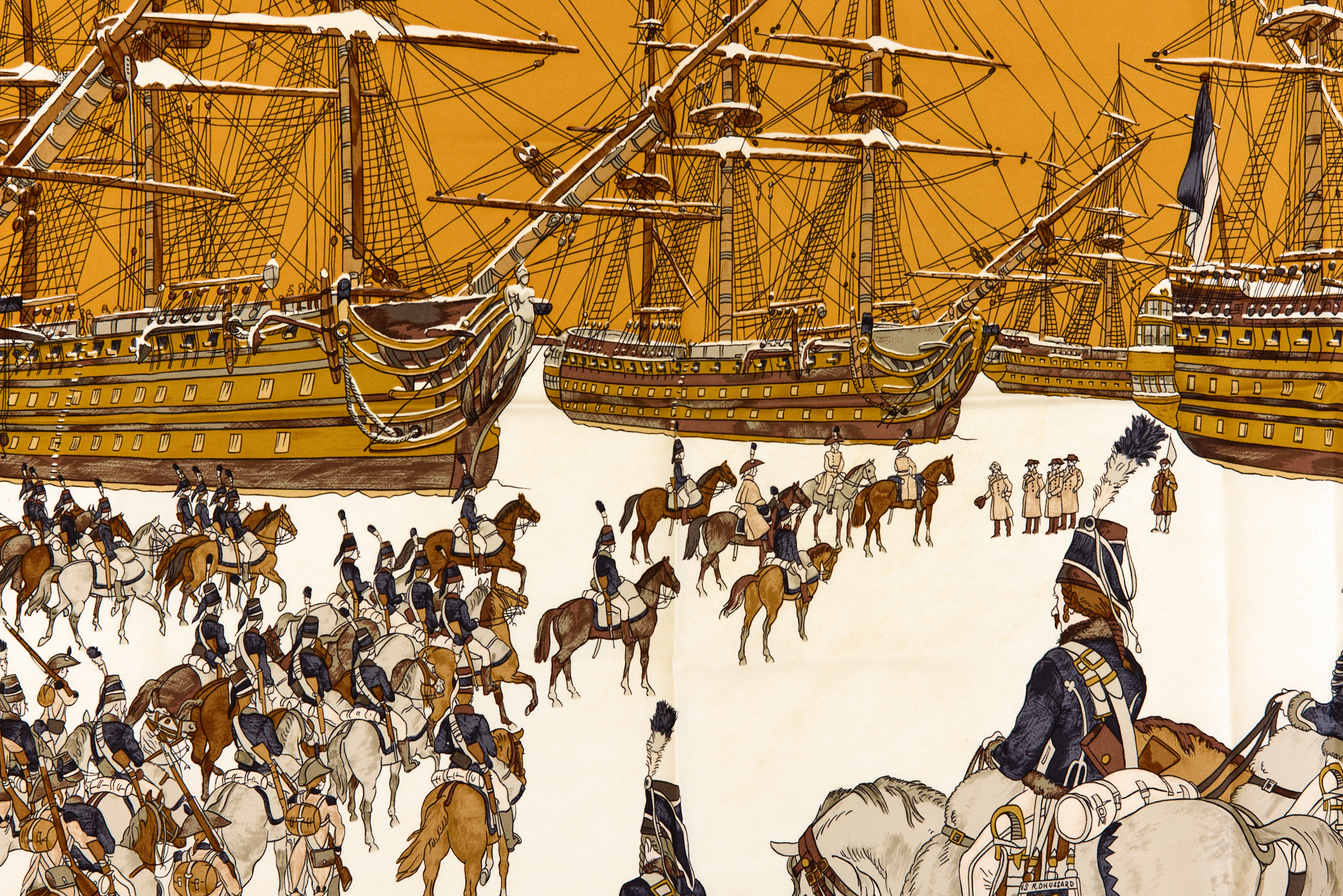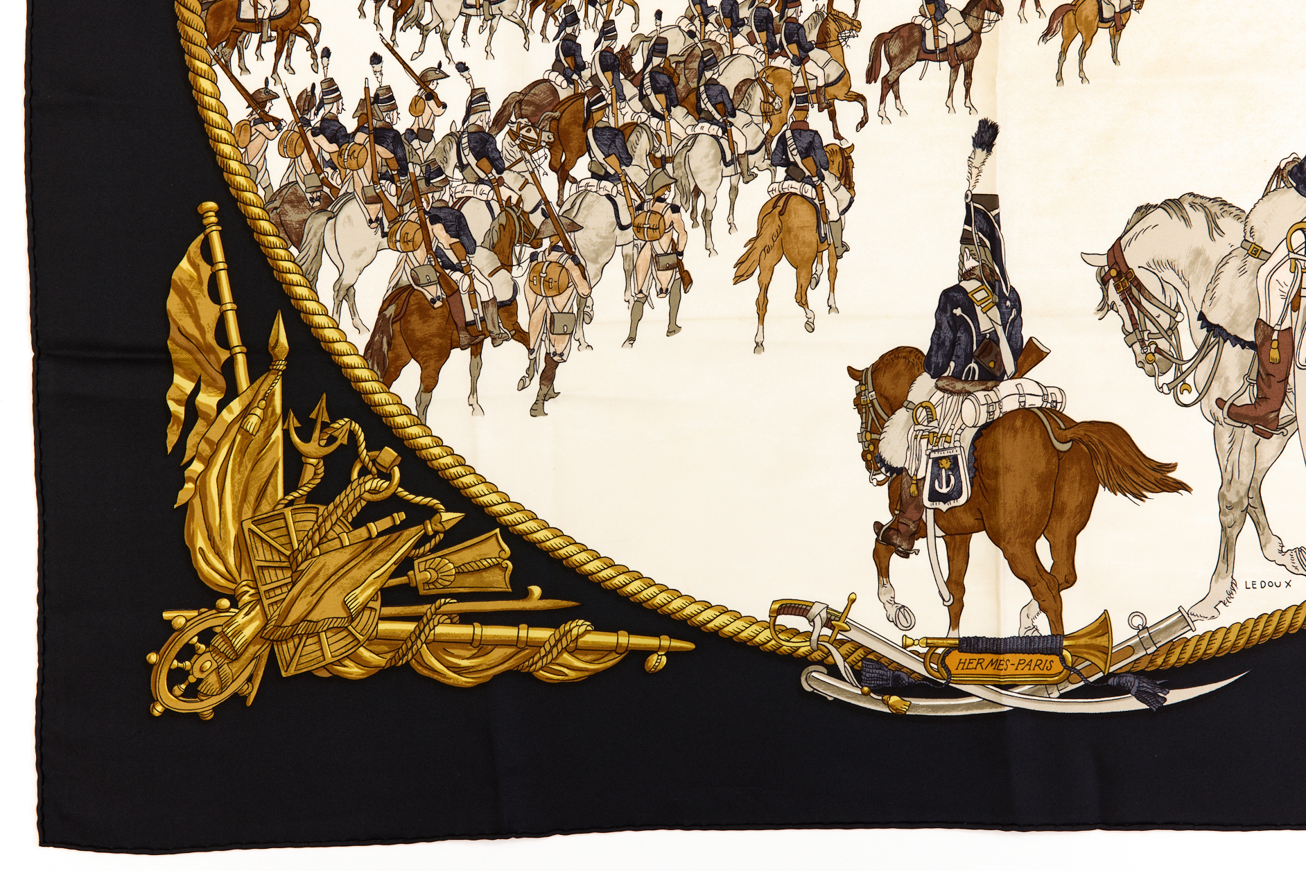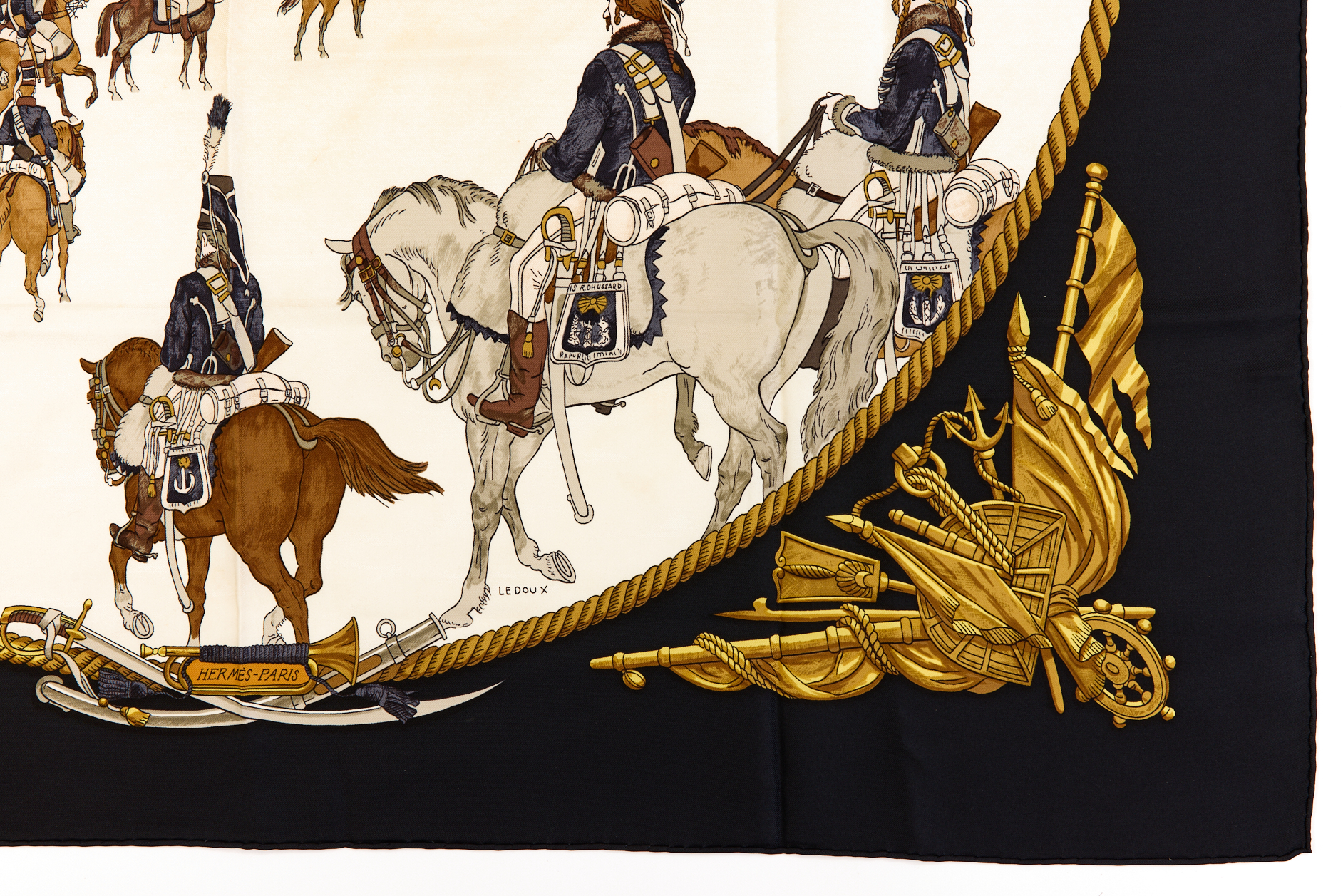 Hermes Silk Scarf Carre 90 “Marine et Cavalerie” Black Silk Scarf