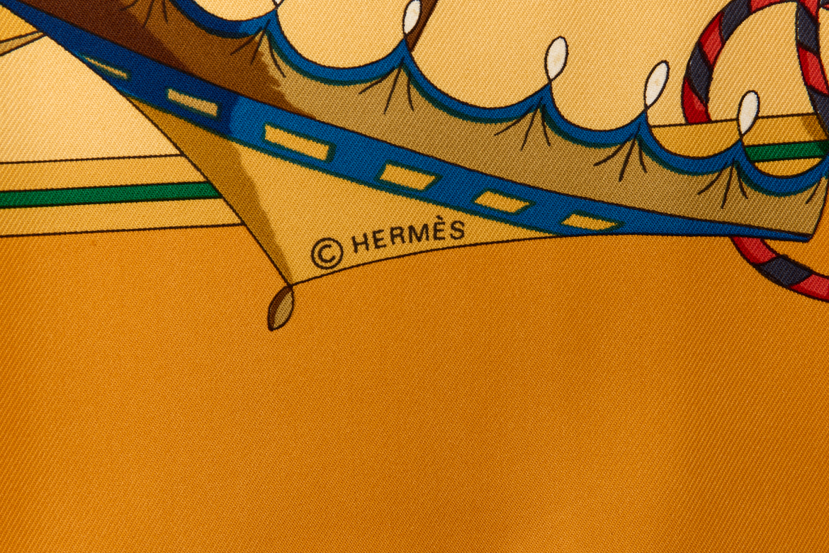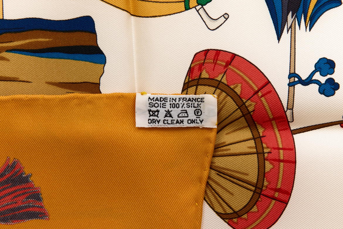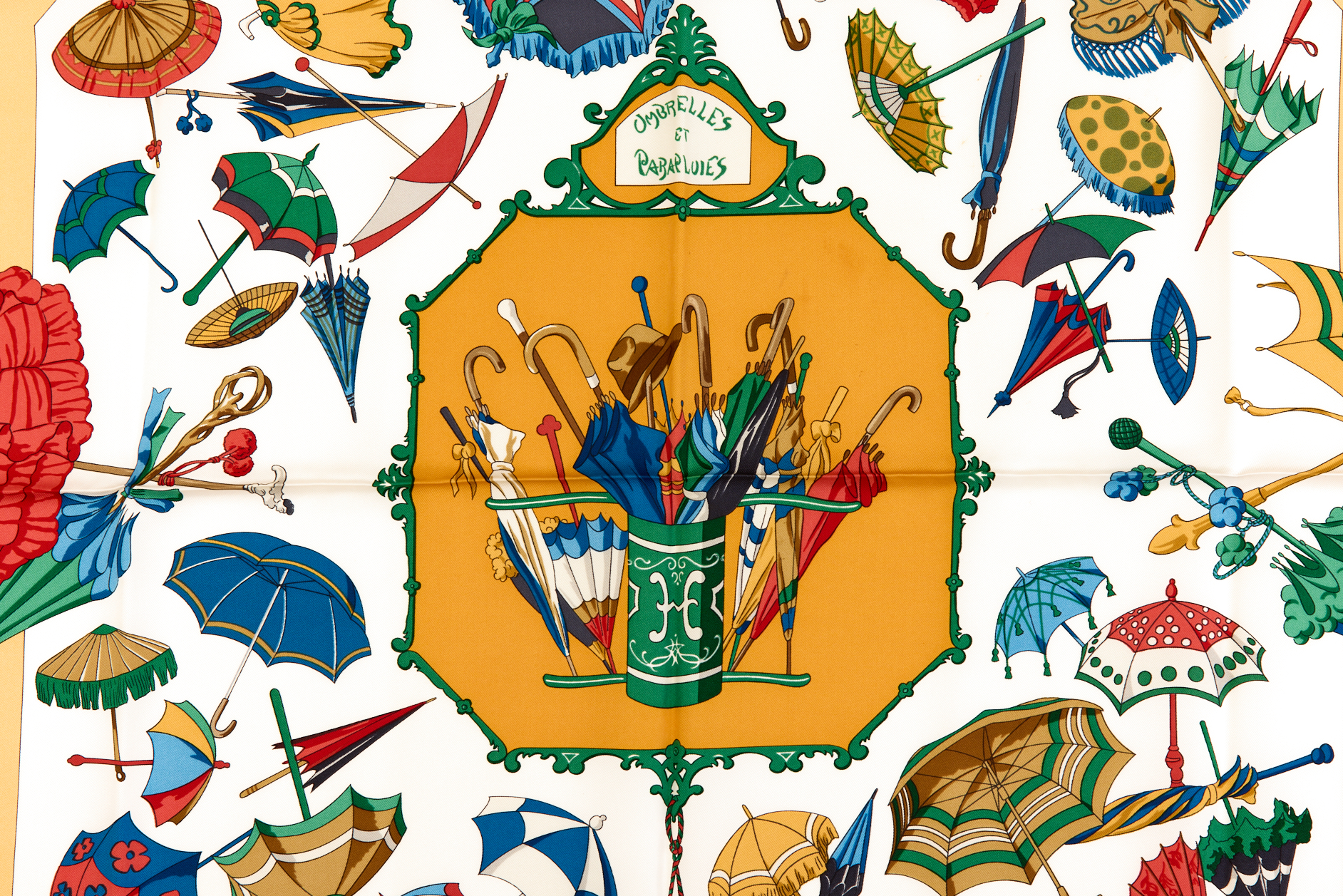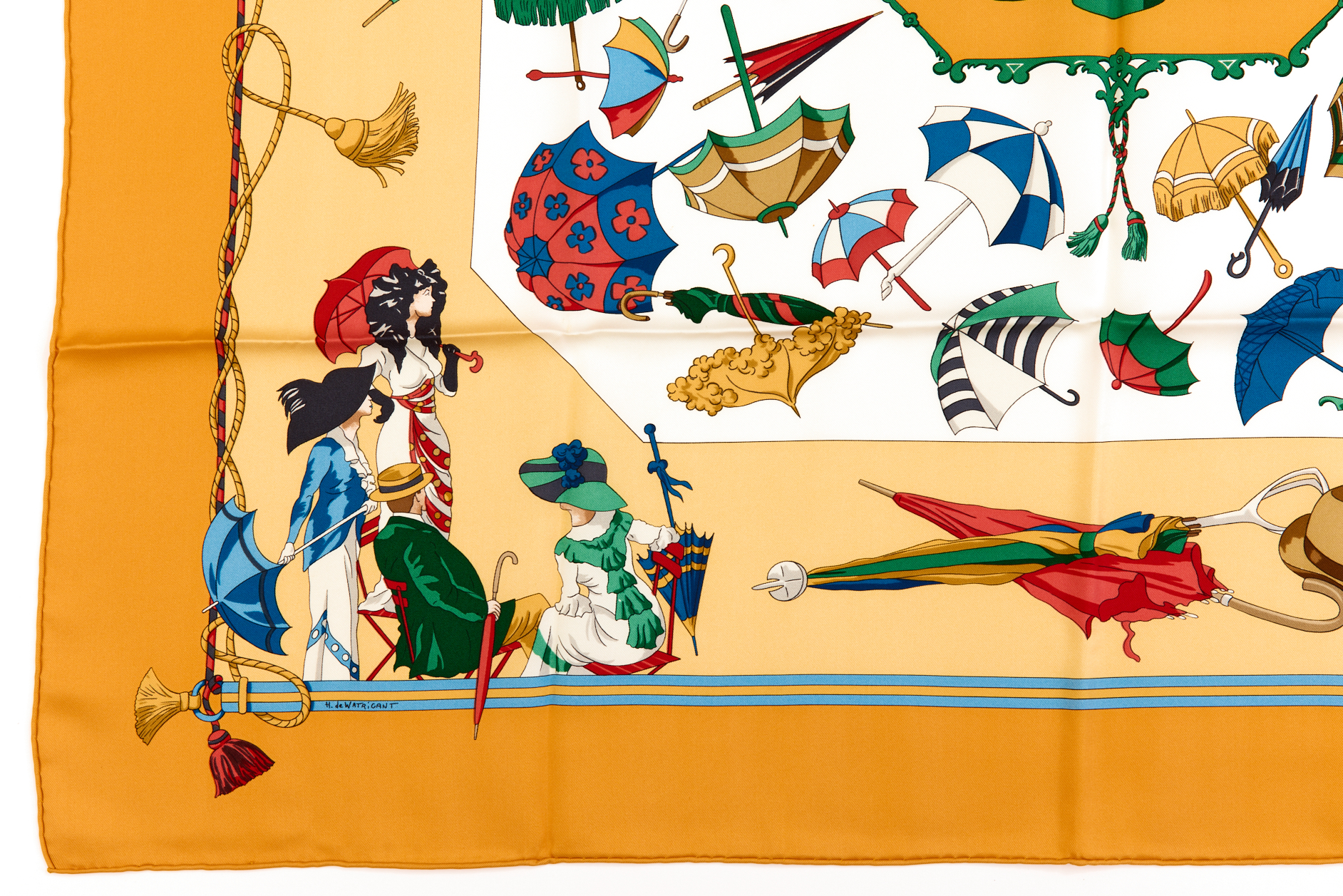 Hermes Silk Scarf Carre 90 “Ombrelles et Parapluies” Orange Silk Scarf