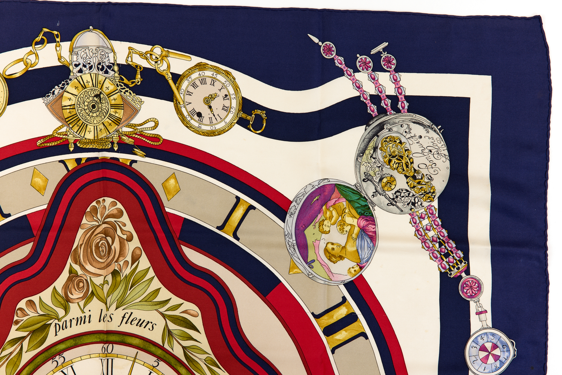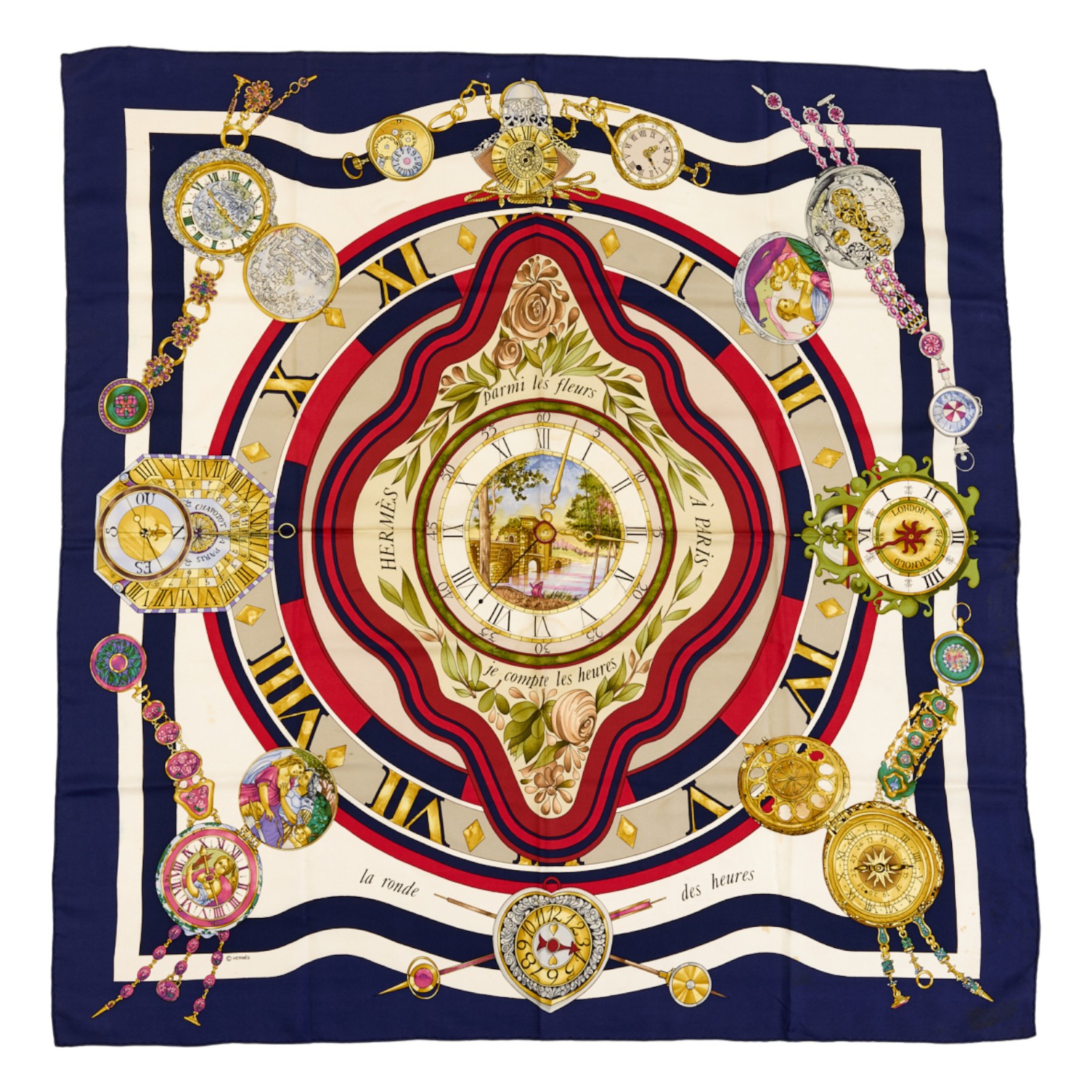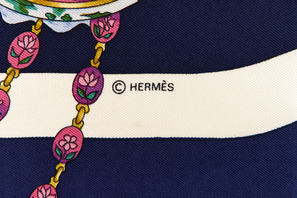 Hermes Silk Scarf Carre 90 “parmi les fleurs je compte les heures” Blue Silk Scarf