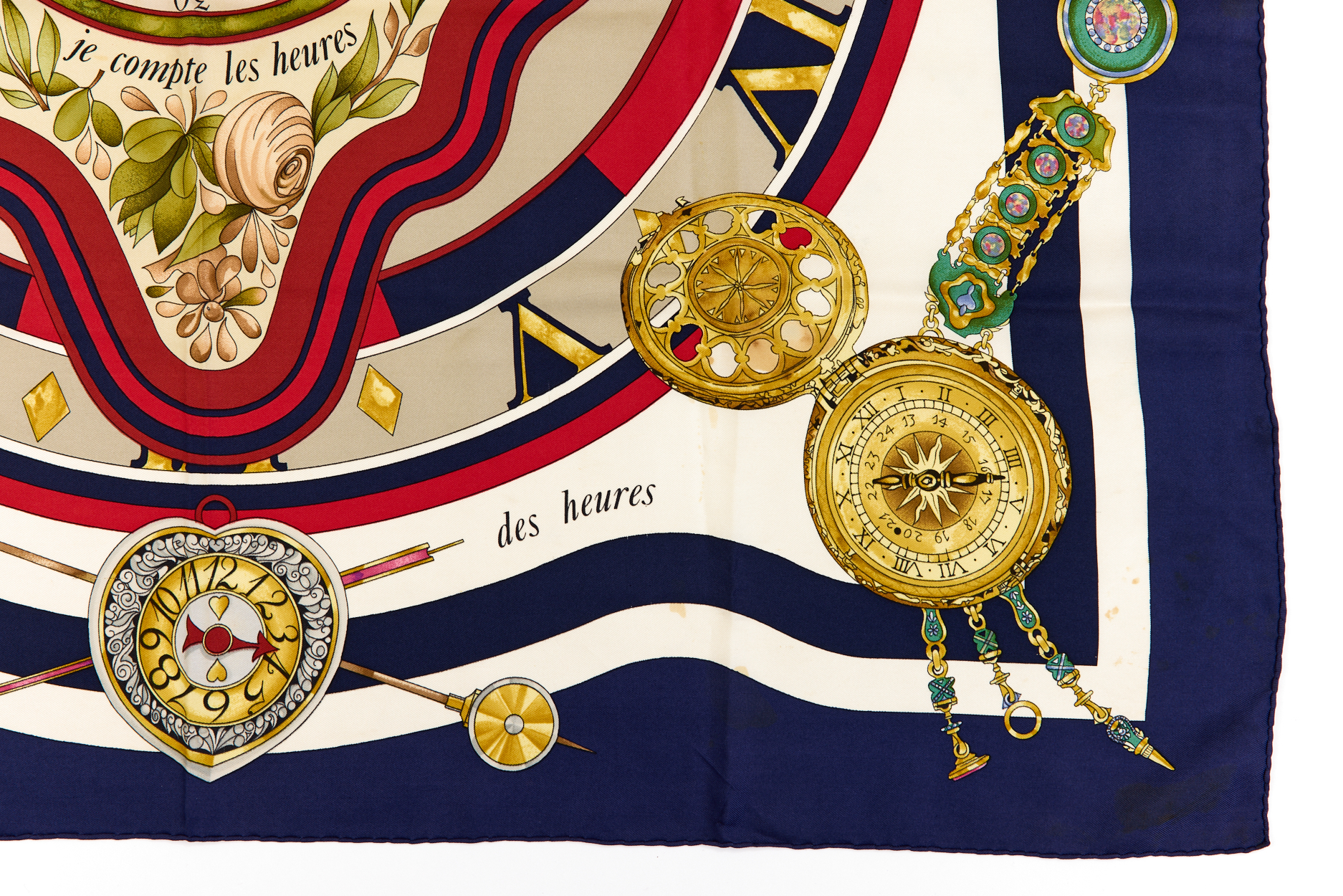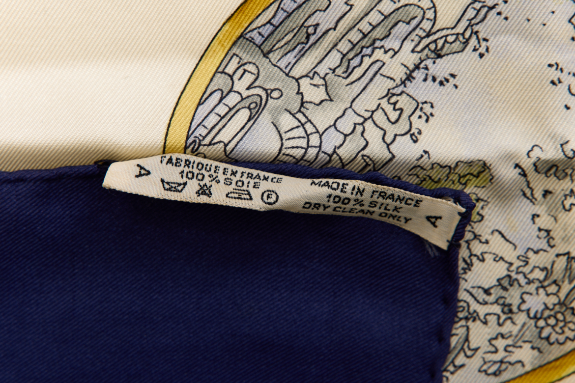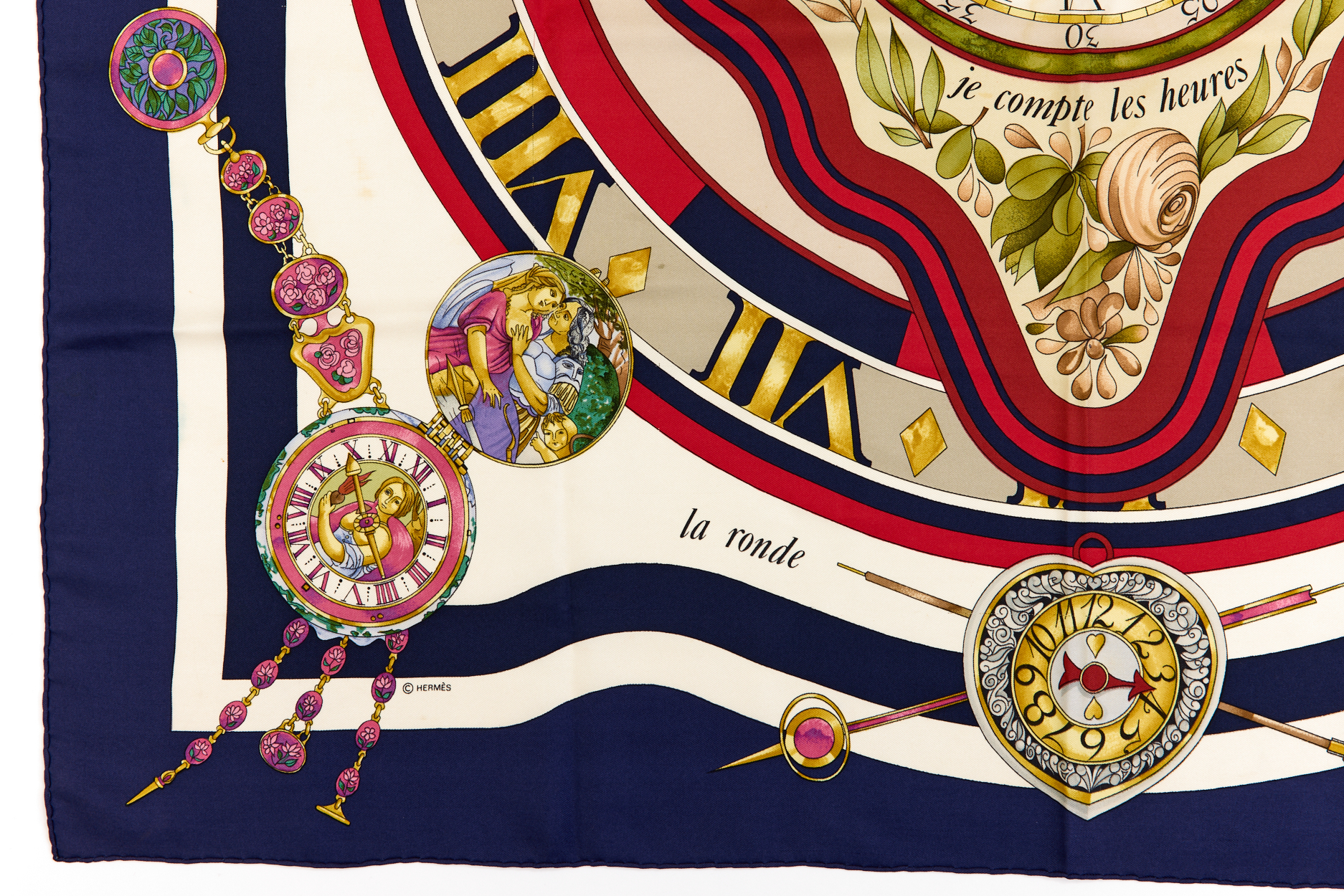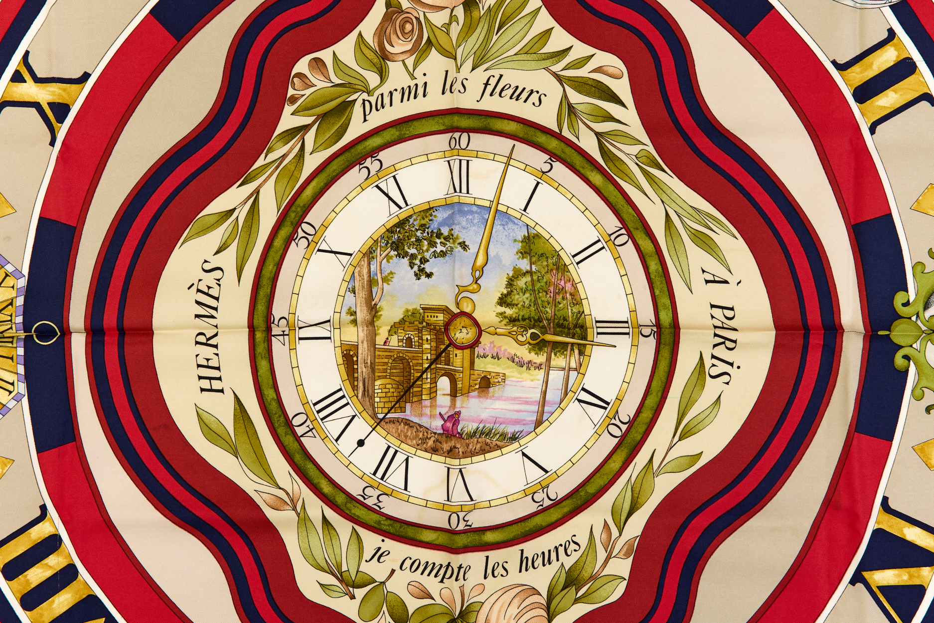 Hermes Silk Scarf Carre 90 “parmi les fleurs je compte les heures” Blue Silk Scarf