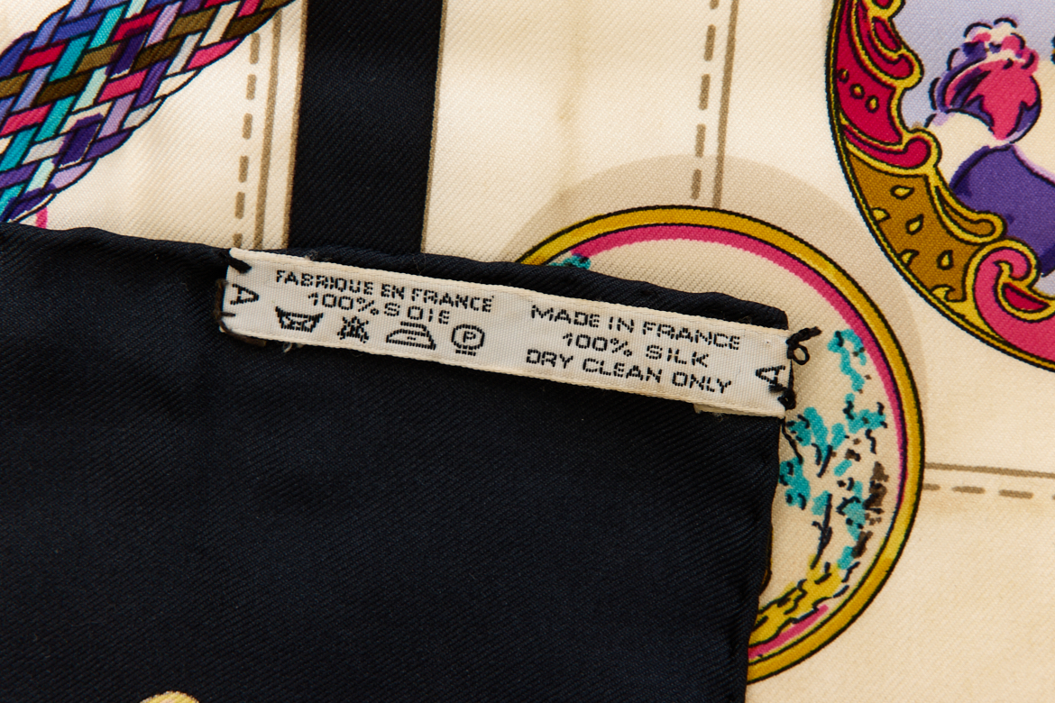 Hermes Silk Scarf Carre 90 “Petite Main” White Silk Scarf Brand : HERMESDesign by Cathy Latham Issued 1987Item : ScarfSize : 88.5cm * 88.5cmMaterial : 100% SilkCondition Score: B*For reference. The condition shown in the image takes precedence.*Please see the last two photos to see if the tag is still attached