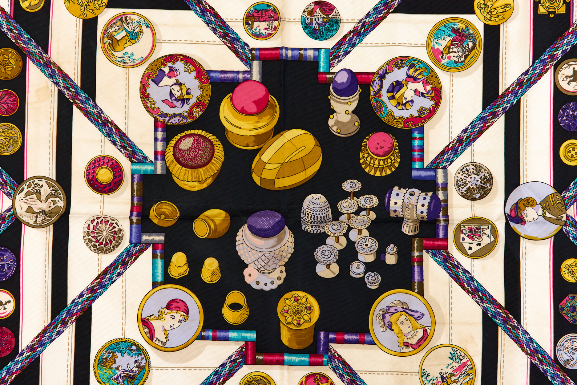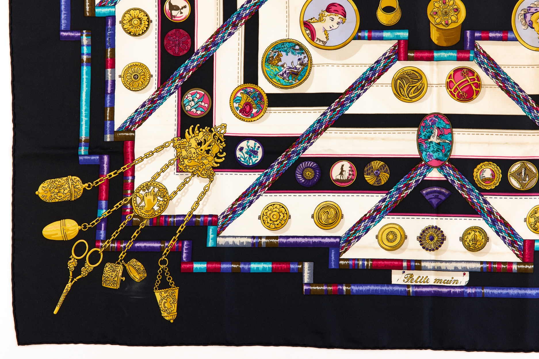 Hermes Silk Scarf Carre 90 “Petite Main” White Silk Scarf