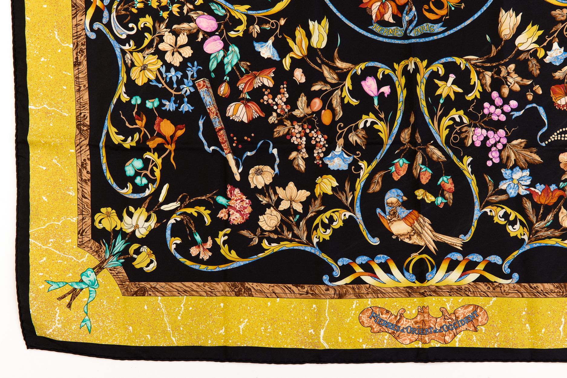 Hermes Silk Scarf Carre 90 “Pierres d’Orient et d’Occident” Blue Silk Scarf