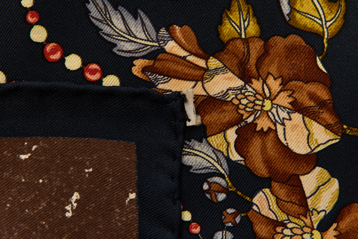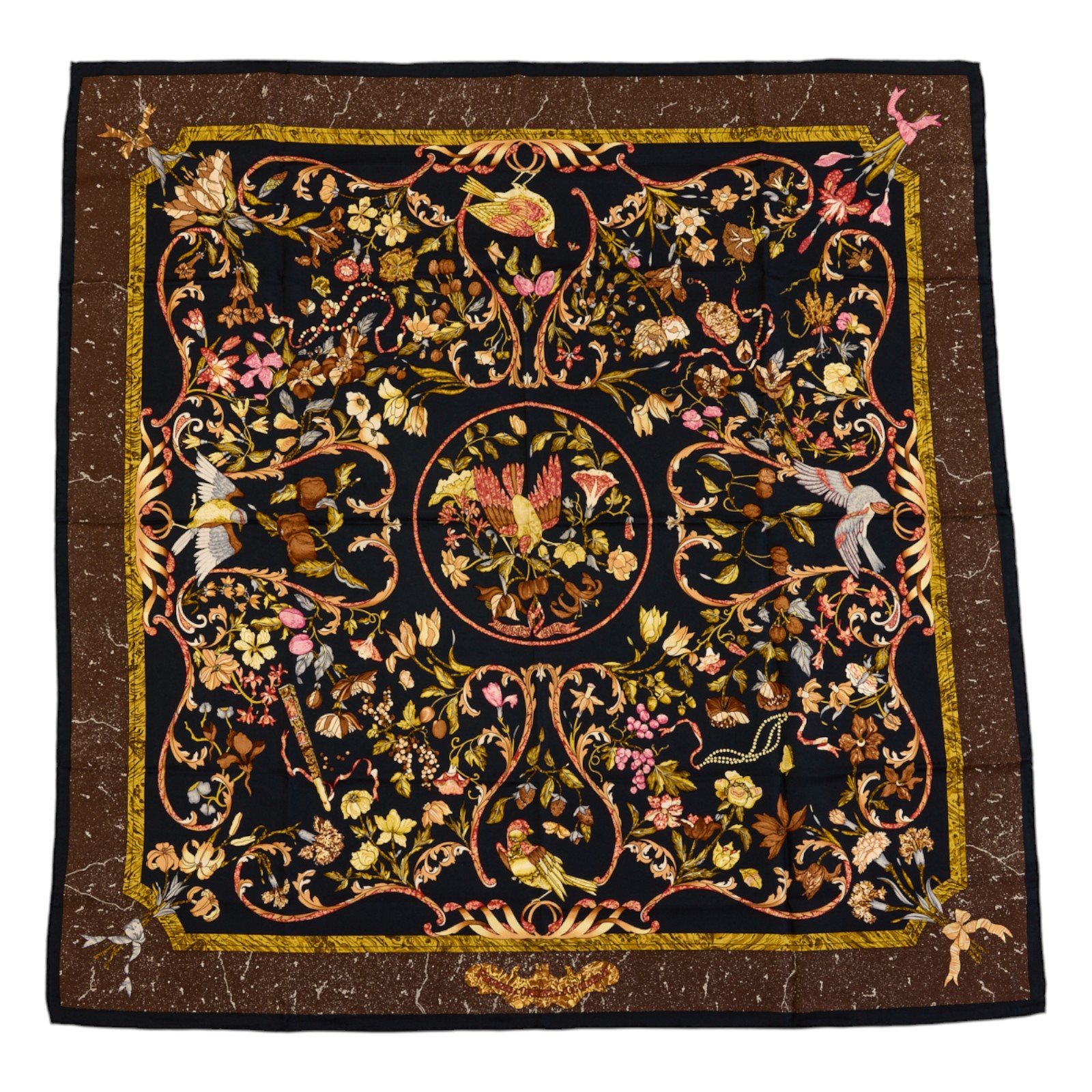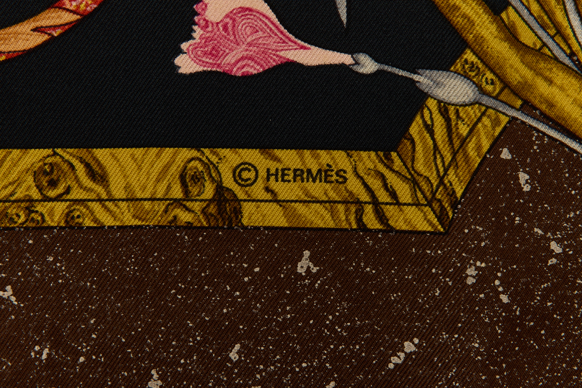Hermes Silk Scarf Carre 90 “Pierres d’Orient et d’Occident” Brown Silk Pleats Scarf