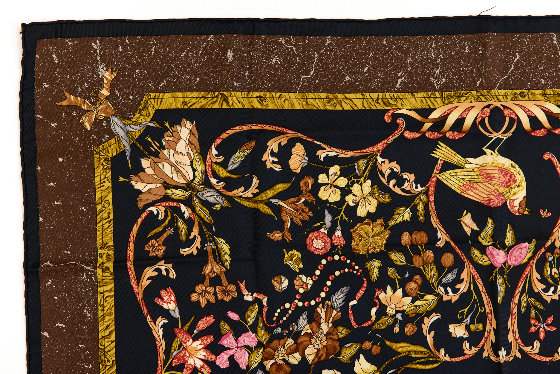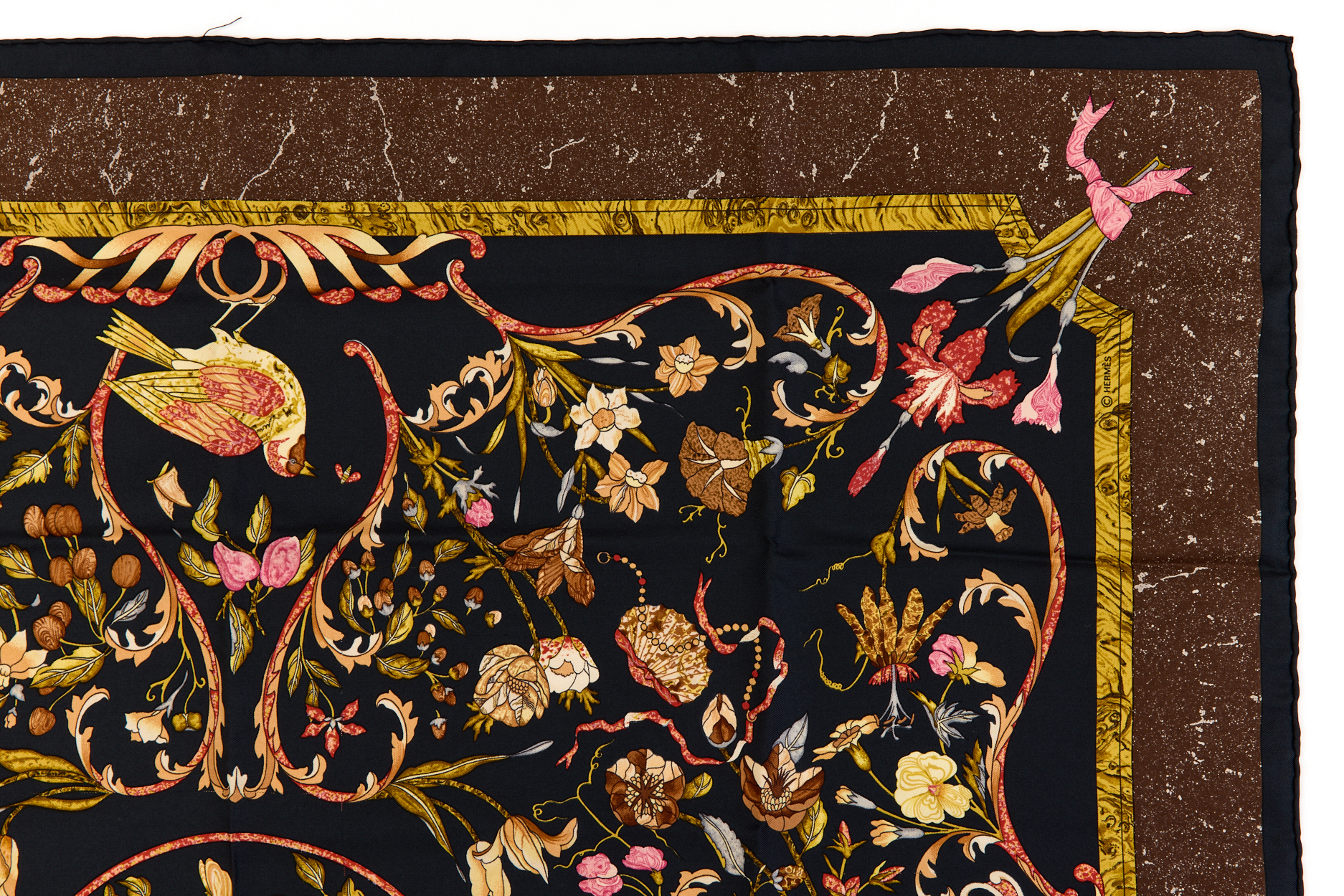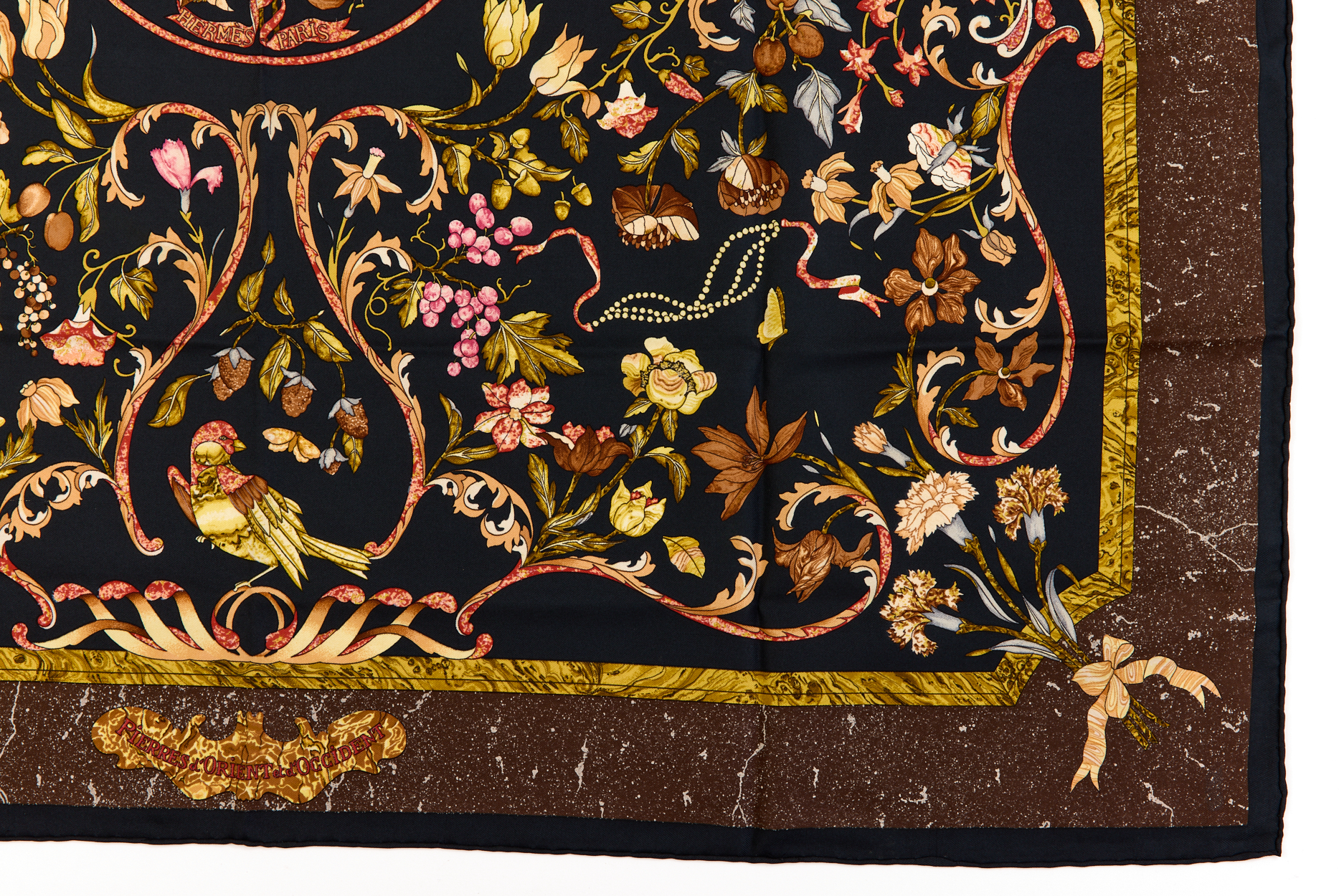 Hermes Silk Scarf Carre 90 “Pierres d’Orient et d’Occident” Brown Silk Pleats Scarf