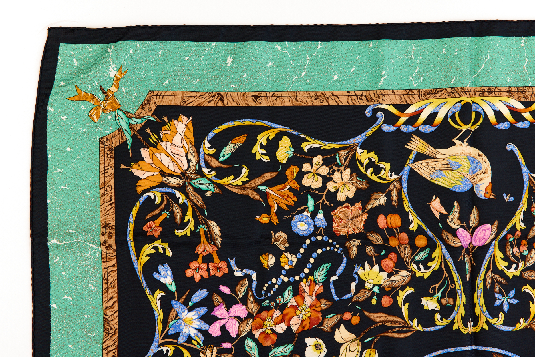 Hermes Silk Scarf Carre 90 “Pierres d’Orient et d’Occident” Green Silk Scarf